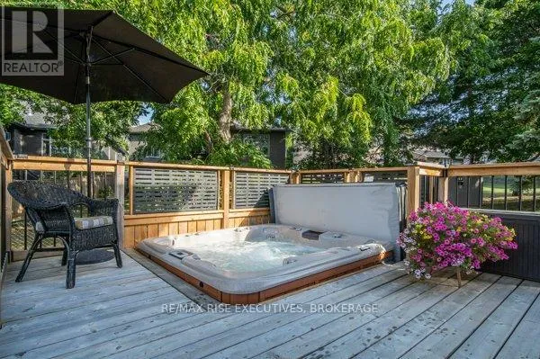 Cross Streets: Humberside Drive. ** Directions: Collins Bay Road to Humberside Drive to Ryan Court. Welcome to 1039 Ryan Court, a beautifully maintained home tucked away on a premium cul-de-sac in the sought-after Westwoods neighbourhood. Freshly painted throughout, this two-storey residence blends timeless style with thoughtful upgrades in a peaceful, treed setting. The main floor features gleaming hardwood and tile flooring, elegant crown moulding, and a warm family room with custom-built-in bookshelves and a cozy gas fireplace. The rich cherrywood kitchen is a standout, offering granite countertops, a gas stove, abundant cabinetry, and a full pantry wall. Upstairs, you'll find three generously sized bedrooms and a convenient second-floor laundry integrated into the main bath. The spacious primary retreat easily accommodates a king bed and includes a walk-in closet, a stunning ensuite with a glass-enclosed tiled shower, double sinks, and ample storage. The fully finished basement provides exceptional versatility with a large rec room, an additional bedroom, a two-piece bath, and a bonus room ideal for an office, games room, or extra bedroom. Step outside to your private backyard oasis with an expansive deck, retractable awning, relaxing hot tub, and tranquil tree-lined views. Located within walking distance of top-rated schools, parks, shopping, and more, this home offers a rare combination of character, comfort, and convenience. Schedule your viewing today! (id:27476)