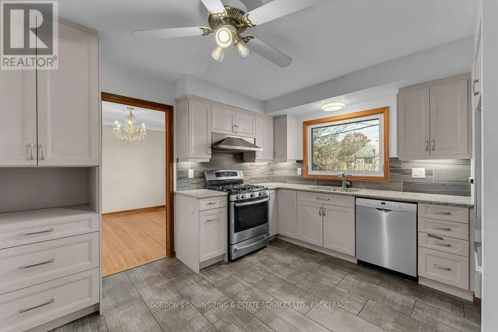 Cross Streets: Bayridge Drive / Hudson Dr. ** Directions: Hudson Drive to Mayfair. Welcome Home to 987 Mayfair Crescent! Located in Kingston's sought-after West End Bayridge neighbourhood, this well-maintained side-split offers 5 bedrooms and 2 bathrooms, blending style, comfort, and convenience in one inviting package. From the moment you walk in, you'll be greeted by bright, open spaces. The spacious living room features a large bay window, elegant cove moulding, and hardwood floors throughout, filling the home with natural light and warmth. The upgraded kitchen showcases crisp white cabinetry, granite countertops, a tiled backsplash, and stainless-steel appliances - perfect for everyday living and entertaining. The family room provides a cozy retreat with a gas fireplace, built-in bookcases, and walkout access to the backyard with a deck and retractable awning. Upstairs, you'll find three generous bedrooms and a 4-piece bathroom. The fully finished lower level adds even more versatility with two additional bedrooms (or office/hobby spaces), a 3-piece bathroom, and a dedicated laundry and utility room offering storage solutions. Step outside to enjoy your private, fenced backyard oasis, ideal for relaxing or hosting family gatherings. An attached single-car garage adds convenience. Perfectly situated close to schools, parks, shopping, restaurants, and public transit, this charming home offers everything you need for comfortable family living. Whether you're a first-time buyer or growing family, don't miss your chance to make this beautiful home your own! Home inspection available. (id:27476)