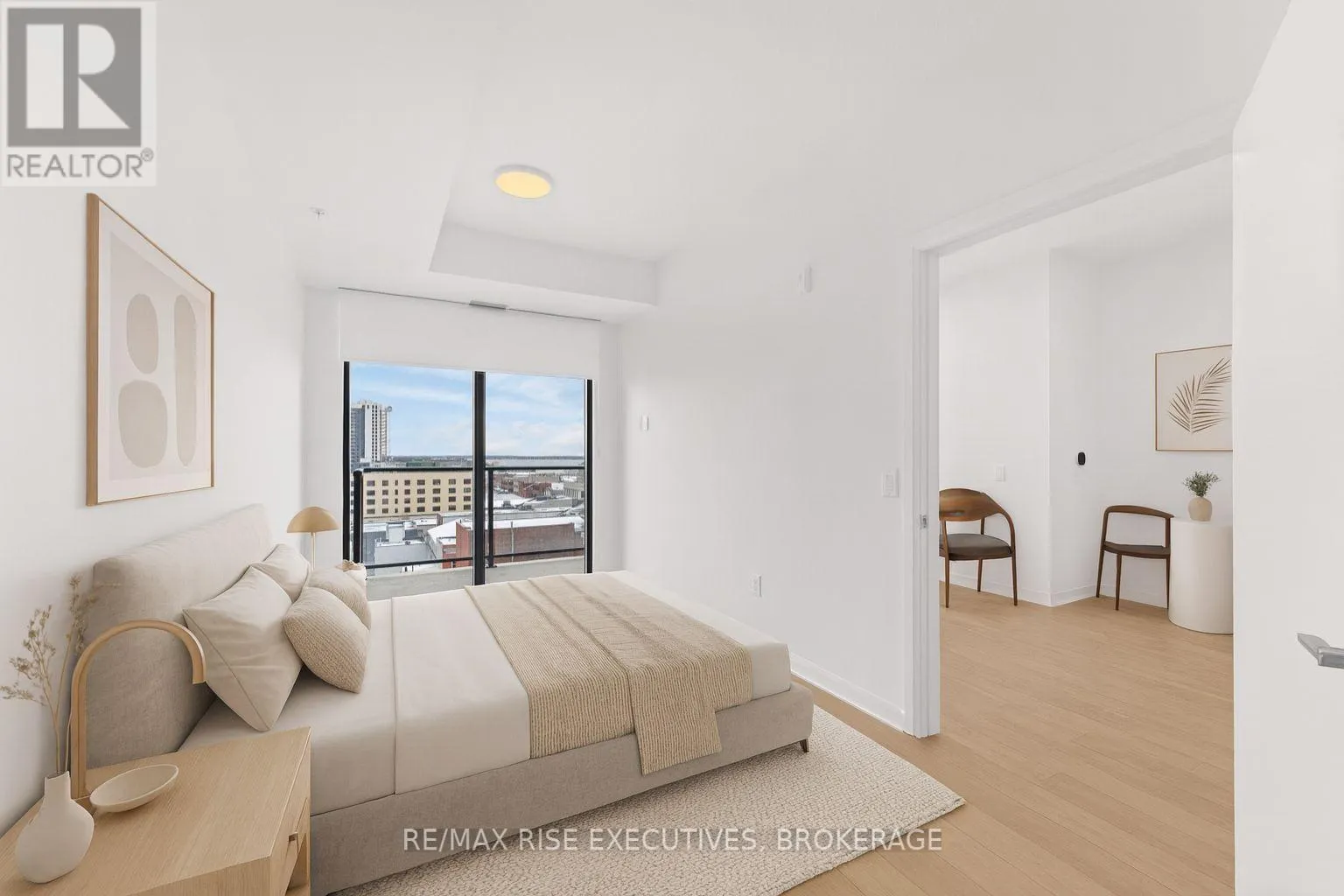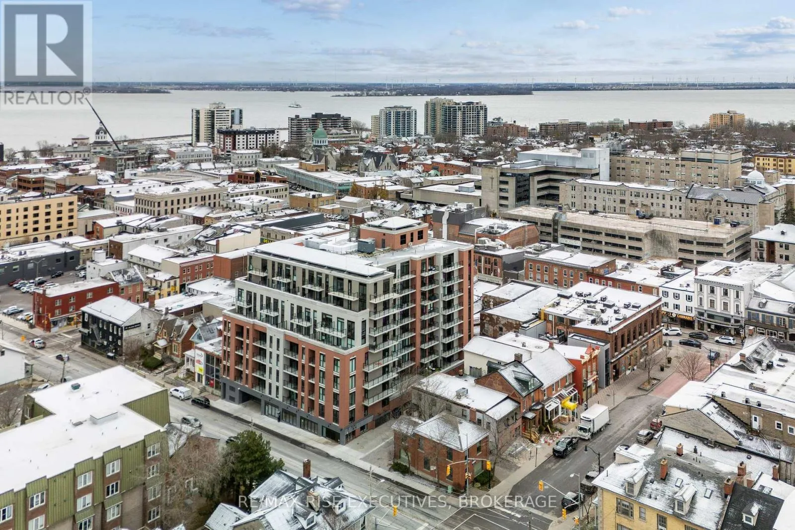 Cross Streets: Sydenham St and Princess St. ** Directions: Princess St between Sydenham St and Montreal St. Welcome to Kingston's newest state of the art condominium residence, The Crown. Perfectly positioned in the heart of downtown and steps from the waterfront, restaurants, shops, and entertainment. This brand new 3 bedroom suite offers a rare blend of luxury, space, and convenience-ideal for professionals, downsizers, or anyone seeking premium urban living. Inside, you'll find a bright and contemporary layout featuring high ceilings, and large windows that fill the home with natural light. Step out onto your private balcony and enjoy beautiful water views, the perfect place to unwind from the cozy living space. Functional kitchen with high end appliances and lots of cupboard space. The spacious primary bedroom provides a true retreat with its walk in closet and 4 piece ensuite bathroom. Two additional bedrooms offer flexibility for guests, a home office, dining room or family living. This premier building is equipped with exceptional amenities, including an oversized parking space located right next to the elevator, a fully equipped fitness center, a professional boardroom, and a stunning rooftop patio for residents to enjoy. A great opportunity to own a high end 3-bedroom condo in Kingston's most desirable downtown location. Move in and experience elevated city living at its finest. Pictures are digitally staged. Condo is vacant and move in ready. (id:27476)