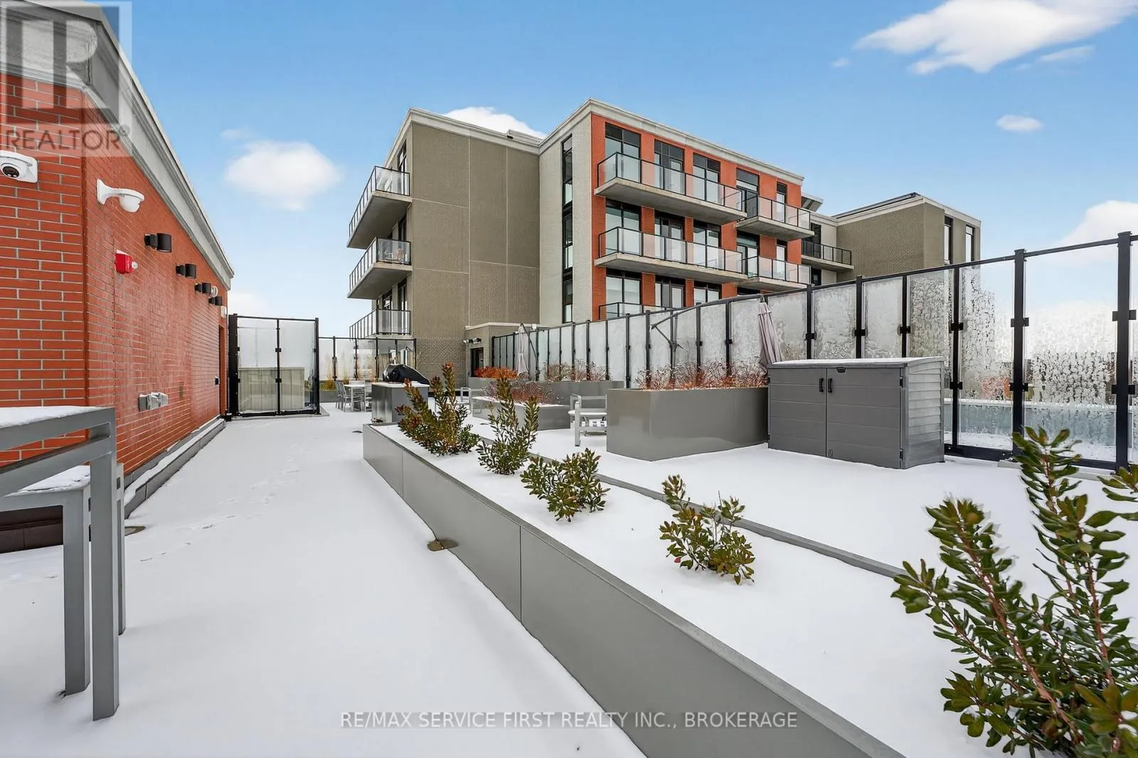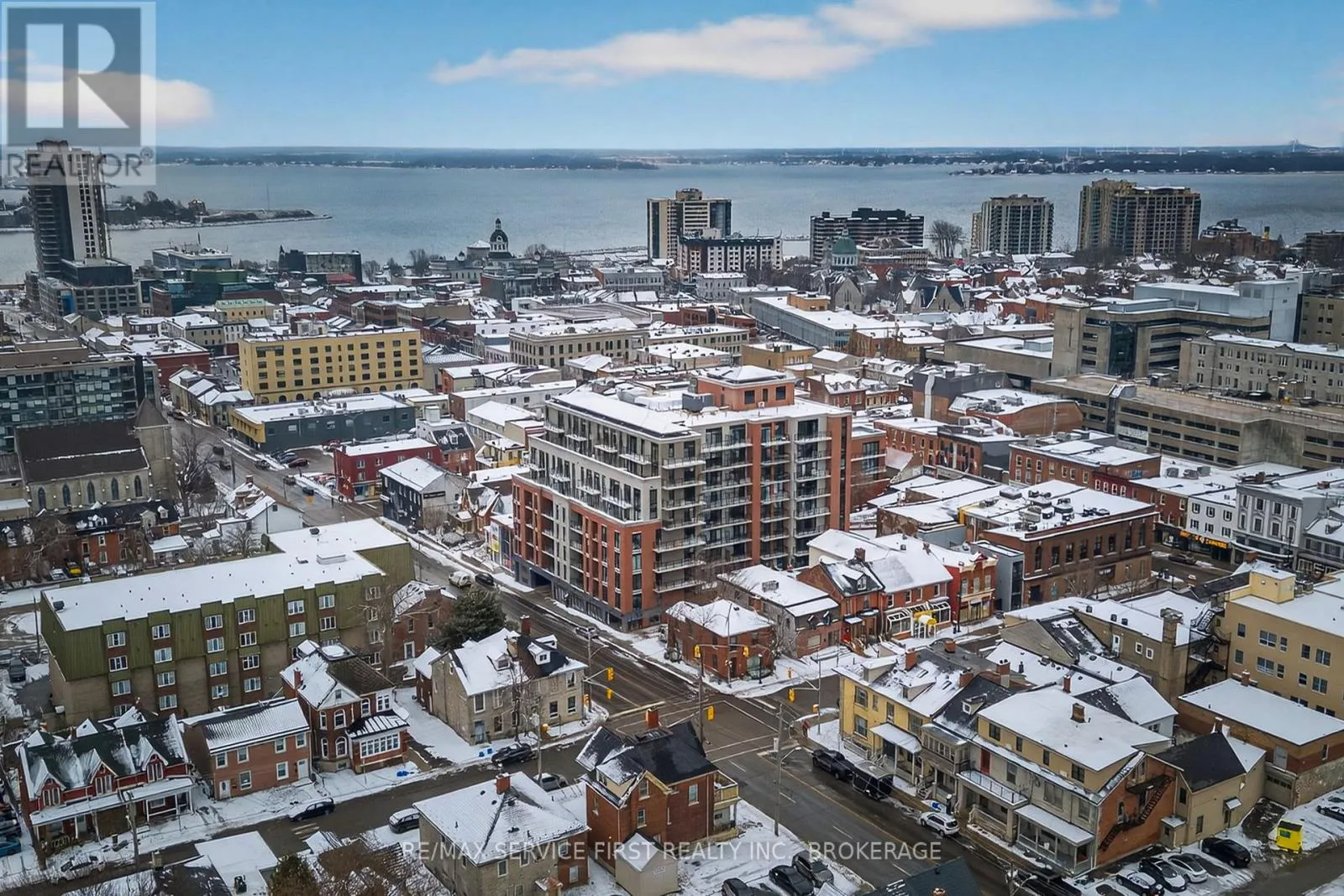 Cross Streets: Sydenham St and Princess St. ** Directions: Princess St between Sydenham St and Montreal St. Welcome to The Crown Condominiums, a premier residential and commercial hub in the heart of Downtown Kingston. This bright and efficiently designed 1-bedroom + den, 1-bathroom unit offers 495 sq ft of modern living space, featuring an open-concept layout, in-suite laundry, a 3-piece bathroom, and a private terrace perfect for outdoor relaxation. Residents enjoy an exceptional array of amenities, including a stunning rooftop terrace with BBQs and lounge areas, a fitness centre, yoga studio, concierge service, a party room with full kitchen, and beautifully landscaped outdoor spaces. Perfectly located just steps from the St. Lawrence Waterfront Trail, this vibrant nine-storey community seamlessly blends convenience with lifestyle-ideal for scenic walks, cycling, events, and all that Downtown Kingston has to offer. With residential units and thoughtfully integrated commercial spaces, The Crown fosters a dynamic environment where businesses and residents thrive together. High foot traffic between Princess Street and Queen Street ensures excellent visibility, while the diverse downtown demographic-tourists, students, and long-term residents-creates a strong built-in customer base. The Crown Condominiums is more than a place to live or work; it's a connected, community-focused destination in one of Kingston's most desirable locations. (id:27476)