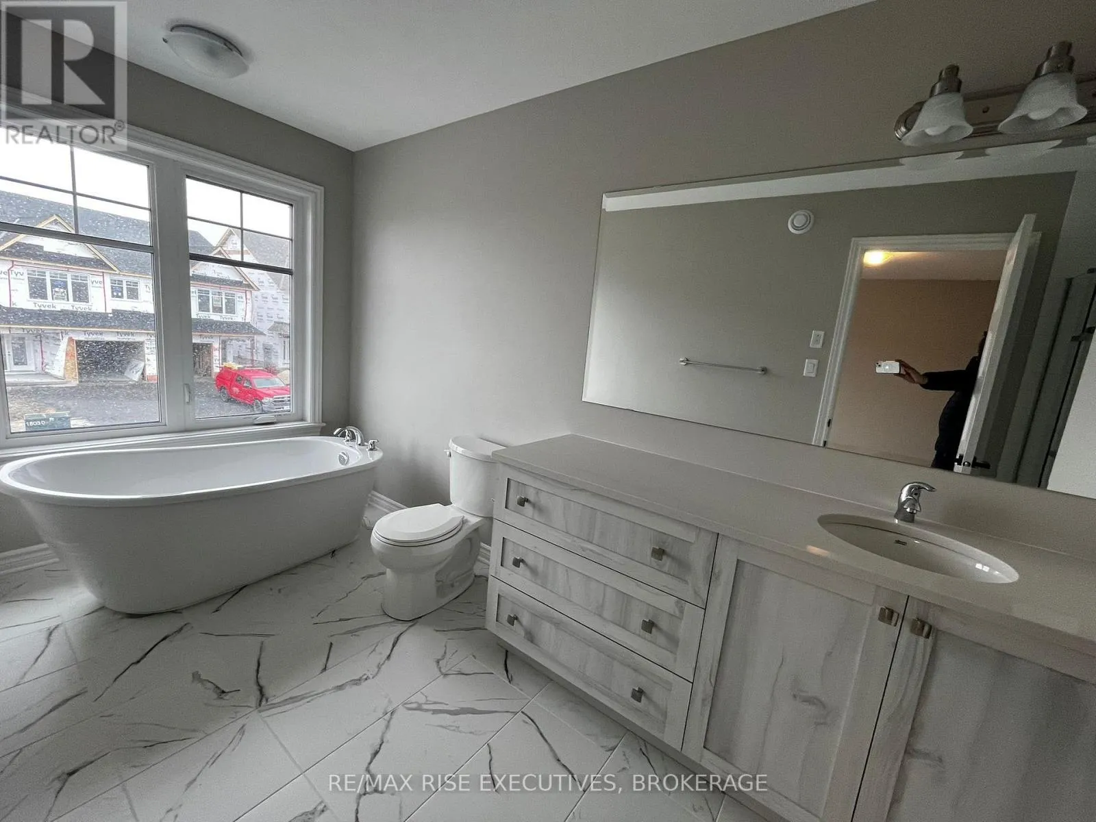 Cross Streets: Taylor Kidd & Gardiners. ** Directions: Taylor Kidd to Demers. Welcome to this beautiful home in Kingston's sought-after West Village community - a beautifully finished, modern rental home with thoughtful upgrades throughout. The main floor features maple hardwood flooring, a sleek kitchen with quartz counters, white cabinetry, and a generous walk-in pantry, all centered around a cozy gas fireplace in the living area. Upstairs, the primary suite offers a luxurious 4-piece ensuite complete with a freestanding tub and a walk-in tile-and-glass shower. The finished walkout basement adds even more versatile living space and includes a rough-in for a future bathroom. Built for efficiency and comfort, this home is ideally located close to RioCan, Cataraqui Centre, new schools, parks, and everyday conveniences. (id:27476)