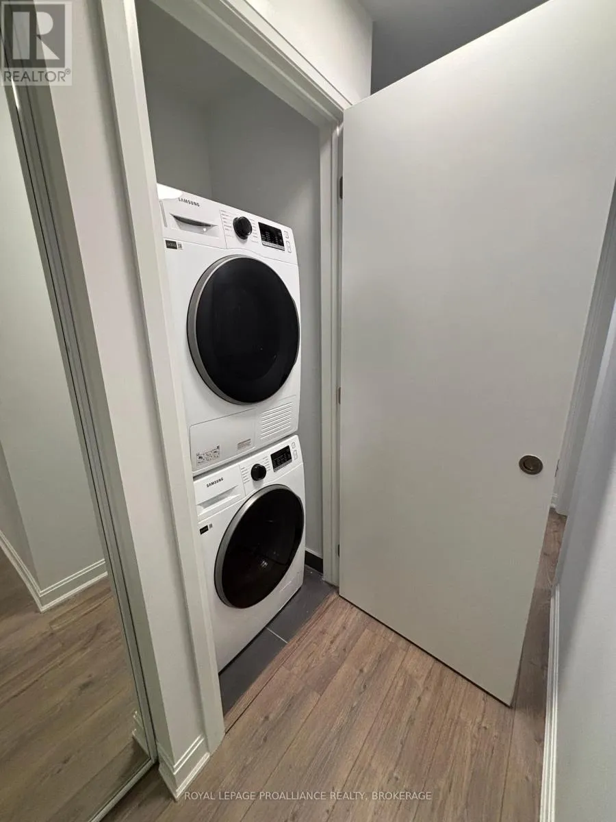 Cross Streets: Princess Street & Montreal Street. ** Directions: East on Princess street, between Sydenham Street & Montreal Street. Welcome to The Crown Condominiums in the heart of Downtown Kingston! This cozy third-floor unit features soaring ceilings, 1 bedroom, 1 bathroom, an open-concept living/dining area, a bonus den/home office, in-suite laundry, & a 4-piece bathroom. The unit offers approx. 570 sq ft of efficient living space. Enjoy premium amenities including a rooftop terrace with BBQs, lounge areas, greenery, yoga space, concierge service, a fitness center, yoga studio, & a party room with full kitchen. Crown Condos is located quite literally in the middle of the downtown core, just minutes from Queens University, St. Lawrence College, KGH/Hotel Dieu & a wide variety of restaurants, shops & amenities, this location offers unbeatable convenience. Whether you're a student,professional, or looking for an upscale urban lifestyle, this condo is a perfect place to call home. (id:27476)