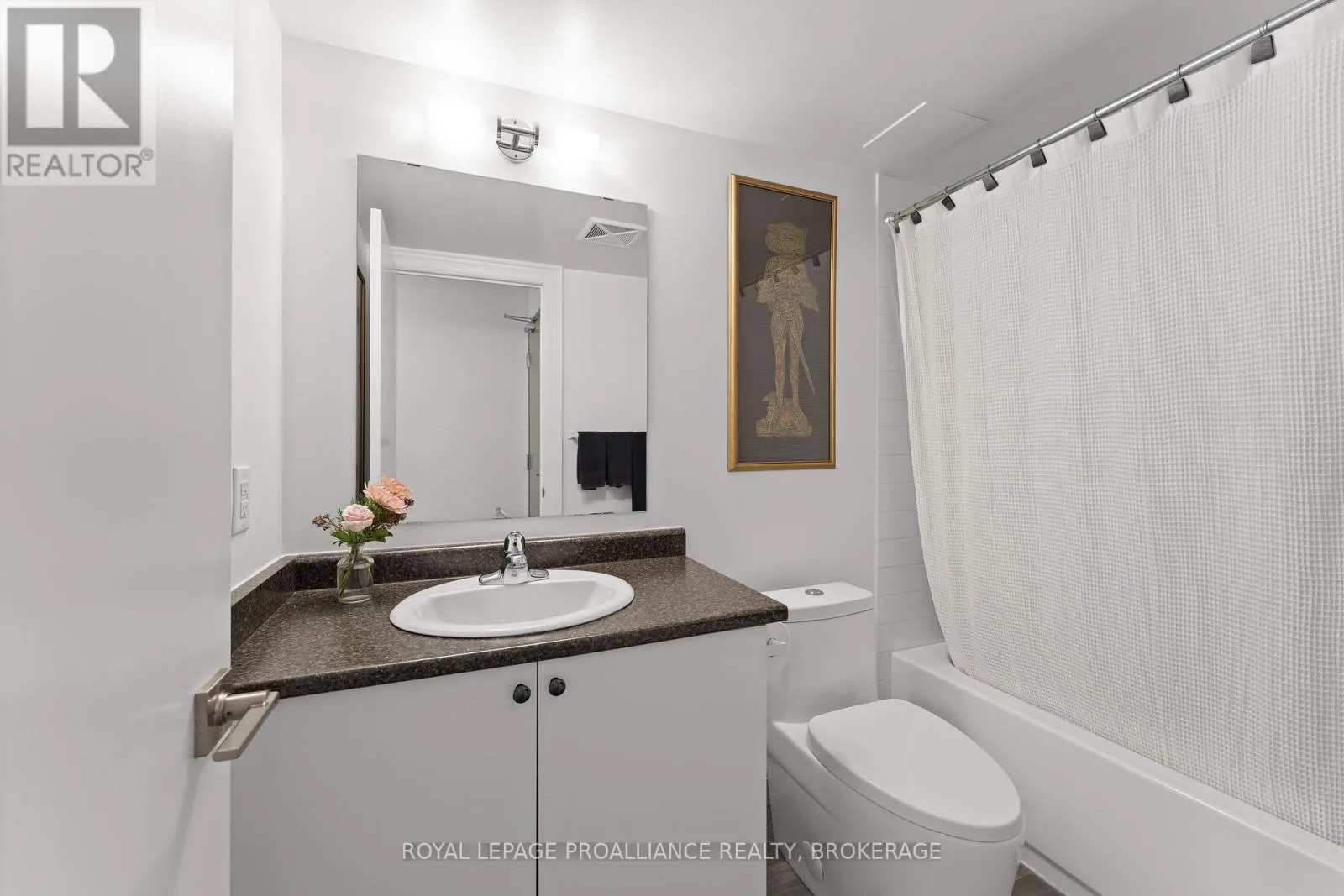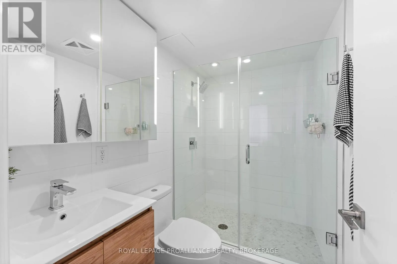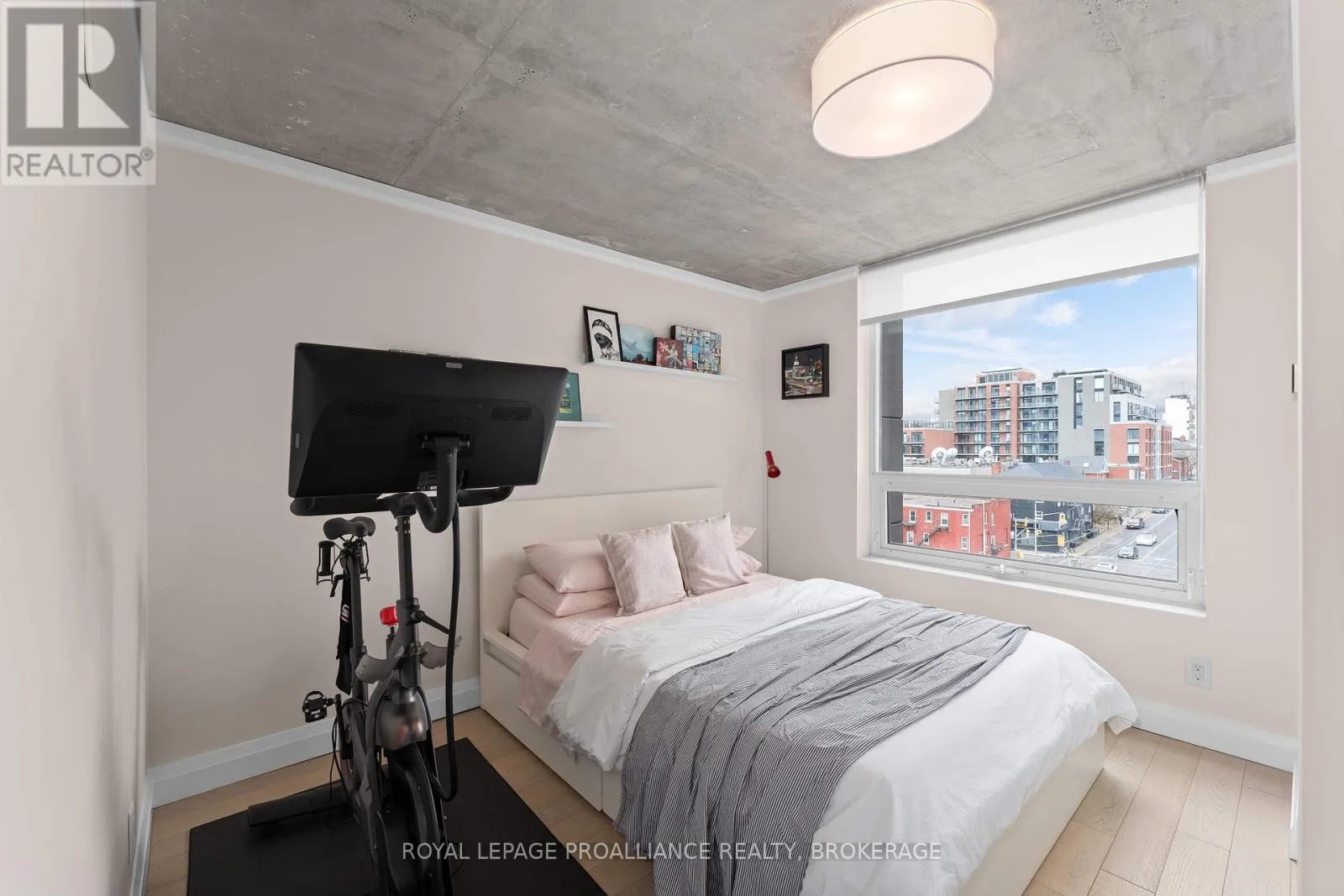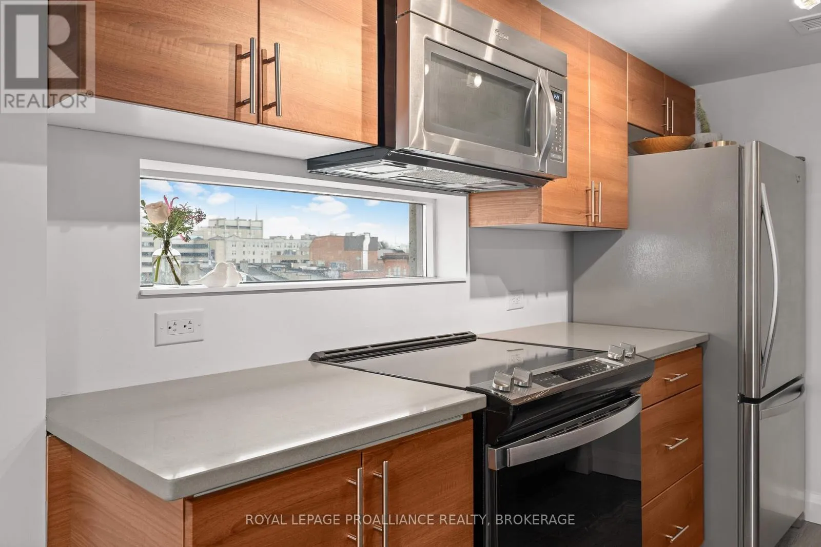 Cross Streets: Queen and Bagot. ** Directions: Queen Street to Bagot Street. Rare, double corner unit, with windows facing East, South and West; this 2 bedroom, 2 bathroom condo could not be brighter; offering panoramic views of downtown Kingston, including city hall, RMC, and the windmills on Wolfe Island! This unit is full of updates, floors are ceramic tile in main areas, and engineered hardwood in the bedrooms. The entryway includes a custom bookcase, and there is a large entry closet. The kitchen has quartz counters, an extra long island and a unique backsplash window. The layout has both bedrooms and baths on opposite sides of the unit, adding privacy. There is upgraded trim throughout and all window coverings are Hunter Douglas. Recent updates include the ensuite bath (2025)and exposing the concrete ceiling in the second bedroom. This condo has more than just great style on offer, there is also a deeded storage unit on the main level, as well as a deeded oversize parking space next to the elevator. Looking for the perfect downtown condo for a May move in? Look no further! (id:27476)