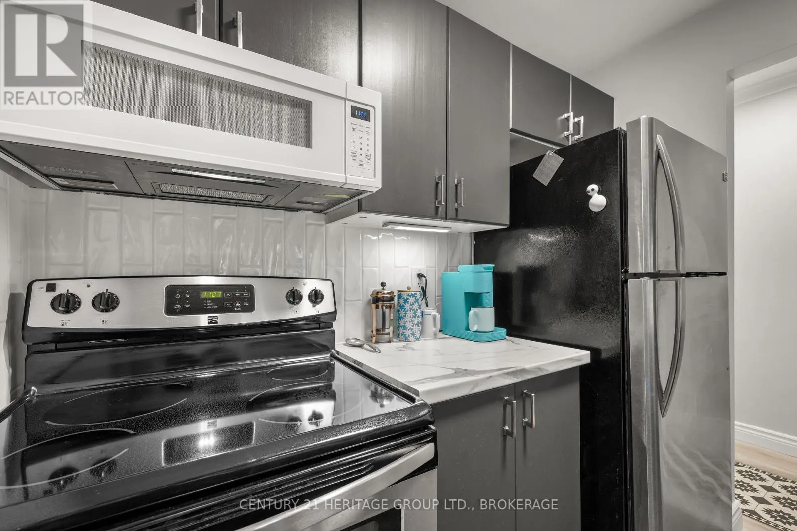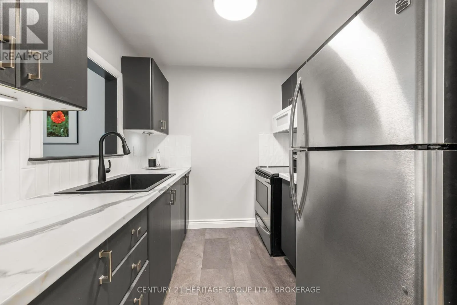 Cross Streets: Armstrong Rd and Kingsdale Rd. ** Directions: East on Kingsdale Rd, South on Armstrong Rd. Fully Renovated | Turn-Key Living at 114-573 Armstrong Road Step into modern elegance with this completely renovated 2-bedroom, 1-bathroom condo in the desirable Meadowbrooke Condominium Community. Every inch of this ground-floor unit has been thoughtfully updated to create a fresh, stylish, and low-maintenance living experience. Enjoy the brand-new custom kitchen, featuring sleek countertops, stainless steel appliances, upgraded outlets and switches, and soft-close cabinetry with custom sliding organizers-perfect for maximizing space and function. The adjoining dining area with a passthrough window makes hosting effortless. The spacious living room is flooded with natural light and offers a seamless walk-out to your private terrace-ideal for morning coffee or relaxing summer evenings. Both bedrooms have been updated with new paint, trim, crown molding, and lighting, offering a serene and sophisticated atmosphere. The completely remodeled 4-piece bathroom showcases modern finishes and quality craftsmanship. New plumbing, updated electrical, designer light fixtures, and luxury flooring run throughout, while upgraded baseboards and crown molding add a polished touch. Additional features include a large in-unit storage room and one reserved parking space, plus ample visitor parking. Set in a quiet, well-managed building, you'll love the peace of mind and convenience this condo offers. Located minutes from transit, schools, parks, trails, dining, and shopping-this stunning unit is move-in ready. Don't miss your chance to own a brand-new home in a well-established community! (id:27476)