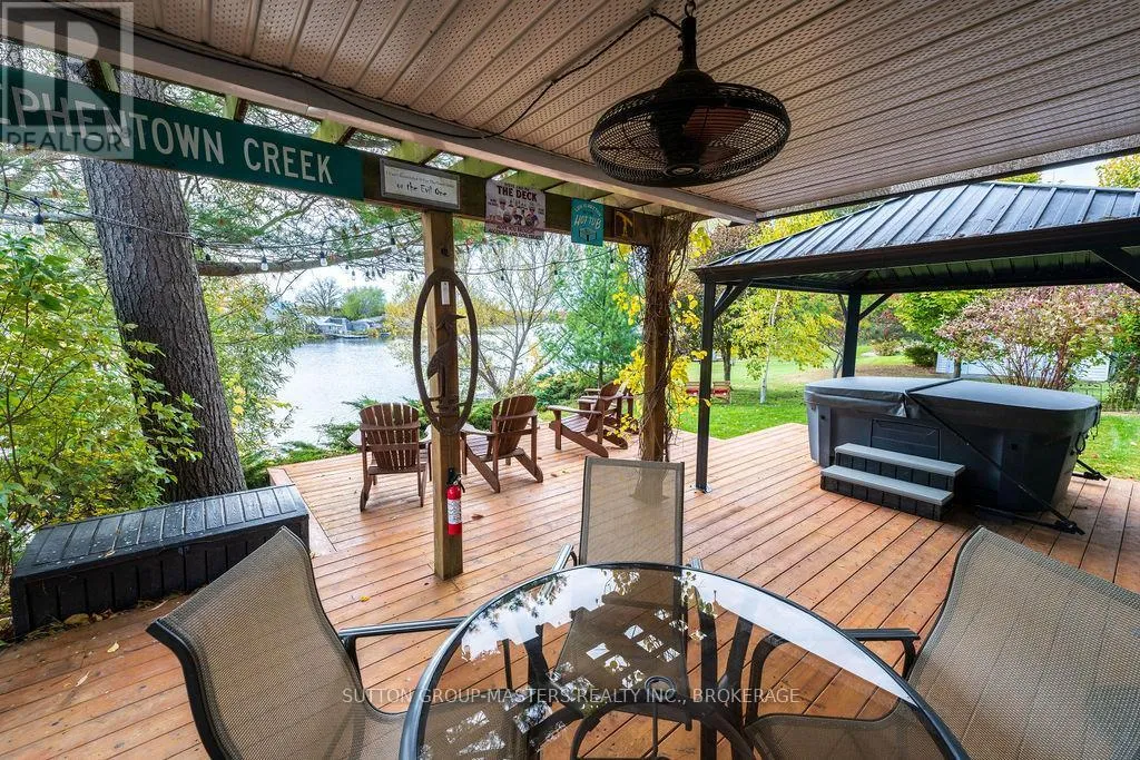 Cross Streets: Hy 15. ** Directions: Hy 15 to Stephentown Lane. Nestled along the peaceful shores of Colonel By Lake, this enchanting 2-bedroom + den, 2-bathroom home blends rustic charm with modern elegance. Set on approximately 0.43 acres with 123 feet of waterfrontage, this property offers a serene retreat just minutes from town amenities-only an 8-minute drive away. Step inside and be greeted by the warmth of wide-plank pine floors, a cozy propane fireplace, and an open-concept kitchen designed for entertaining, featuring a large island and stunning water views through expansive windows. The natural light and panoramic views of the bay create an inviting, relaxed atmosphere throughout. Upstairs, the spacious primary suite spans the entire half-storey, offering a private sanctuary with a walk-in closet, ensuite bathroom, a generous sitting area, and sliding glass doors onto your private balcony- perfect for quiet mornings or unwinding after a long day. Outside, enjoy the tranquil waterfront lifestyle with plenty of space to relax, entertain, or launch a kayak from your shoreline. The attached double garage adds convenience, while the property's rustic-meets-modern design provides timeless appeal. With only 24 homes in this exclusive lakeside enclave, opportunities like this are rare. Whether you're a couple seeking a peaceful retreat or a small family looking for a place that feels worlds away yet close to everything - this Colonel By Lake gem is ready to welcome you home. (id:27476)