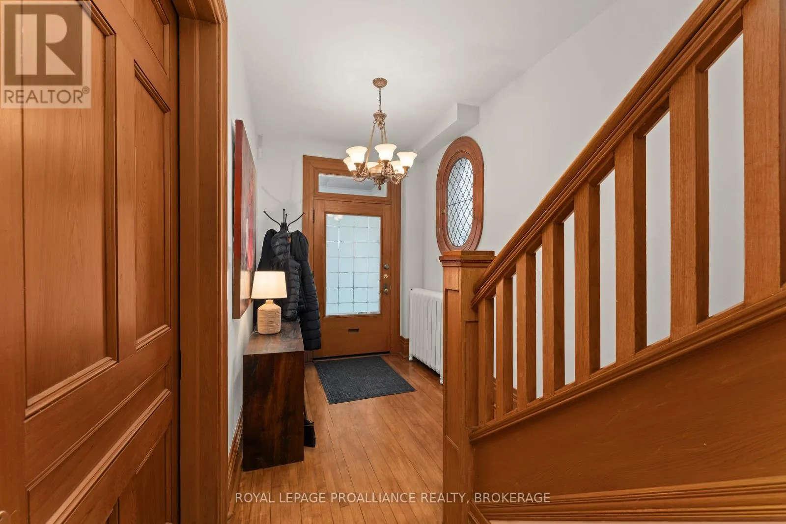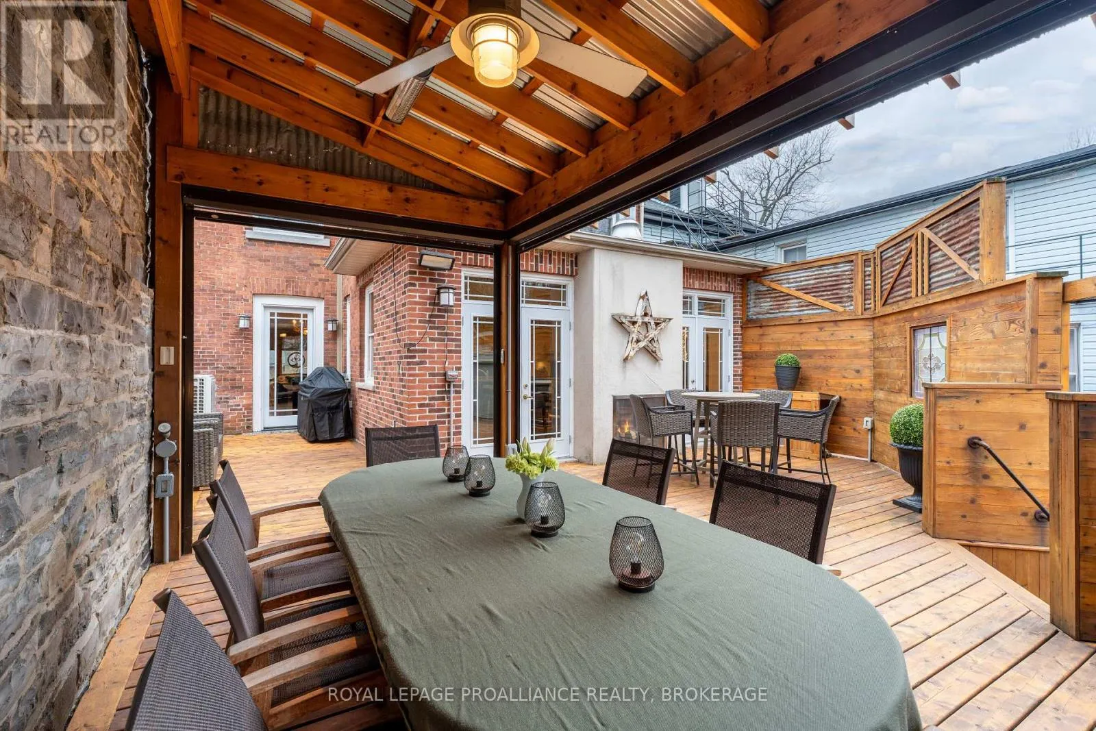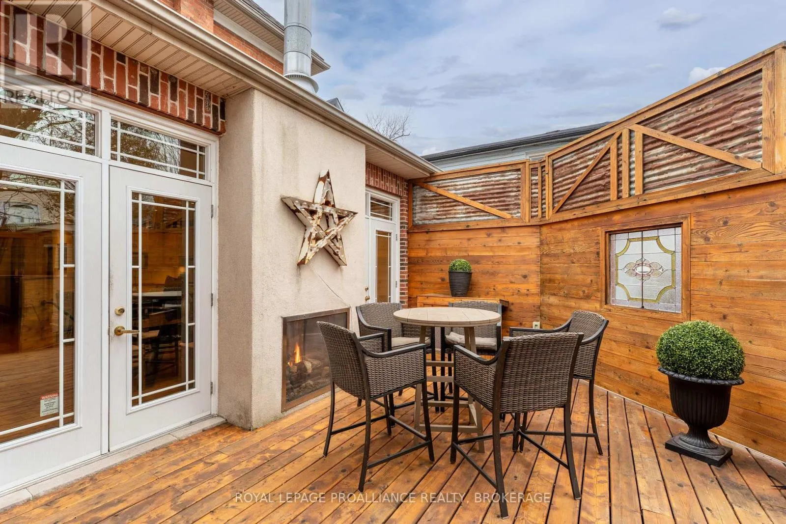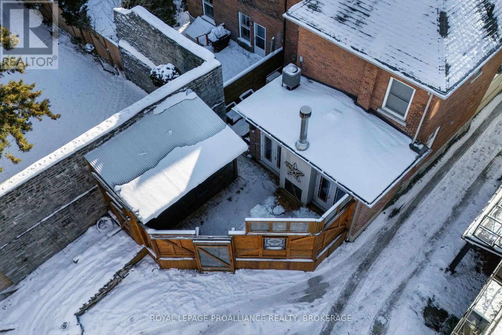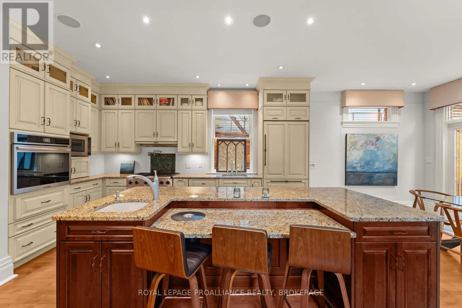 Cross Streets: West Street and Wellington Street. ** Directions: Between West Street and Wellington Street. A truly unique home offering the perfect balance of old-world character and modern comfort, ideally located just steps from downtown Kingston. Enjoy soaring ceilings, beautiful hardwood floors, and custom details throughout. The stunning kitchen is designed for entertaining, featuring a gas stove, three dishwashers, a separate beverage refrigerator, and warming drawers-perfect for hosting gatherings of any size. A dramatic two-sided fireplace adds warmth both indoors and out, opening to a private backyard retreat with outdoor screens that are remote controlled. The home features four bedrooms, four bathrooms, a detached garage, and a dry, unfinished basement offering excellent storage or future consideration. Recent updates include a new boiler and hot water tank (2026), an outdoor elevator, and many additional improvements that enhance comfort and convenience. This exceptional property is ideal for buyers seeking something truly special in a prime downtown location. (id:27476)