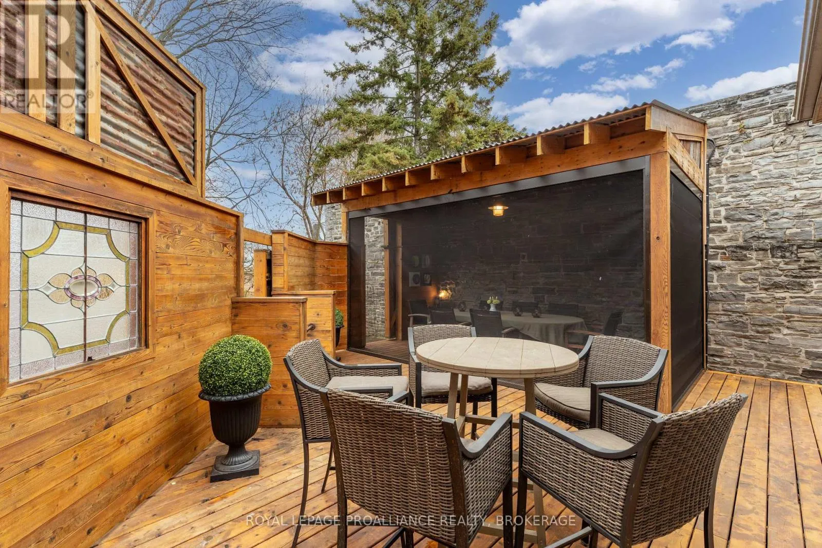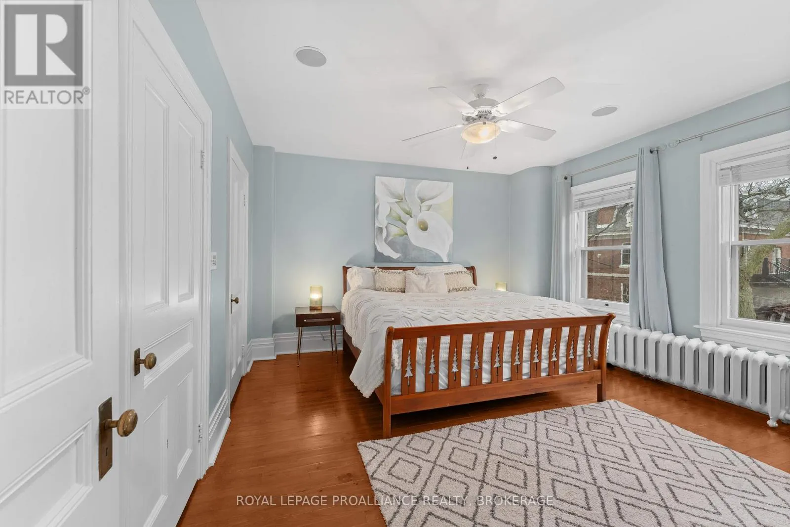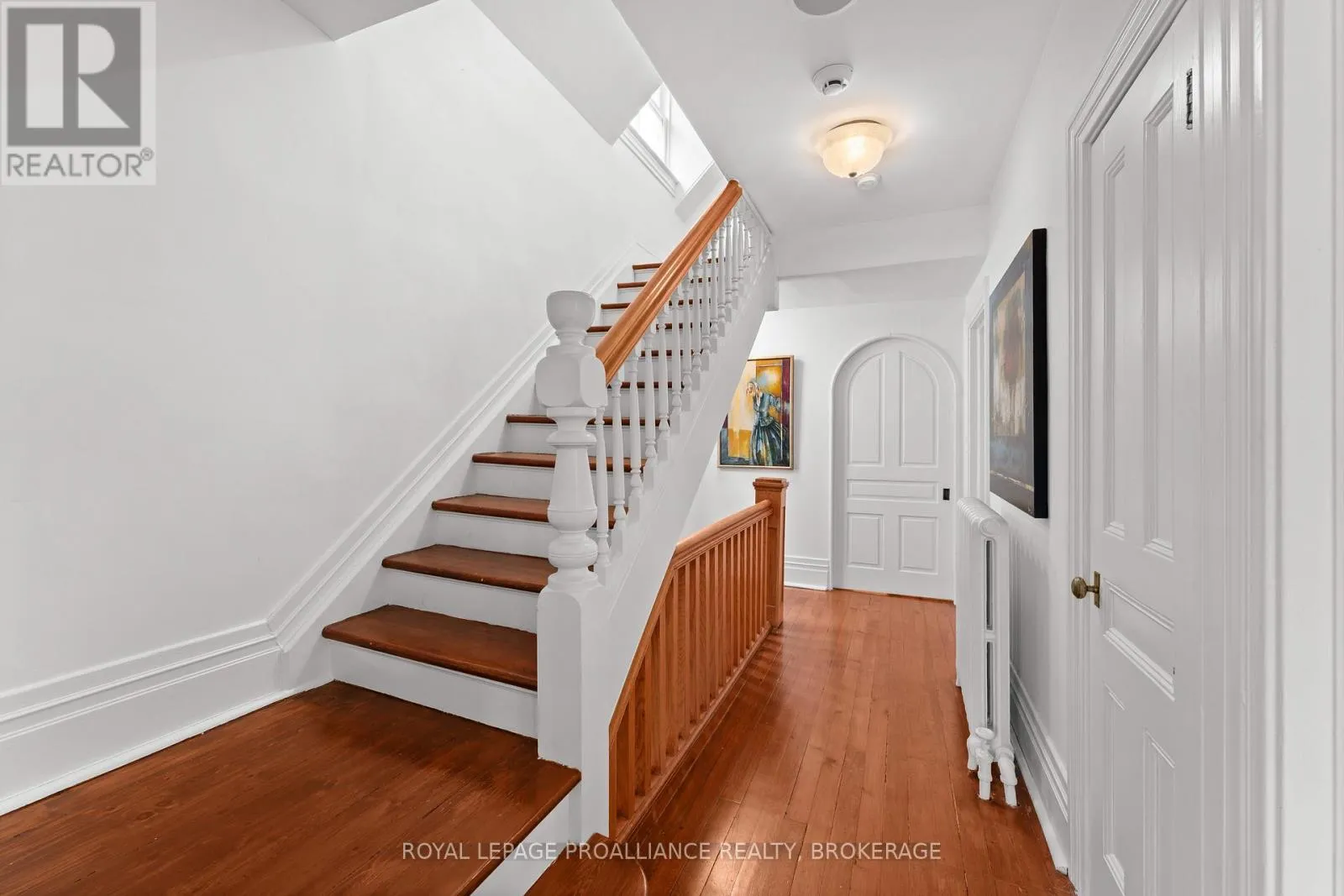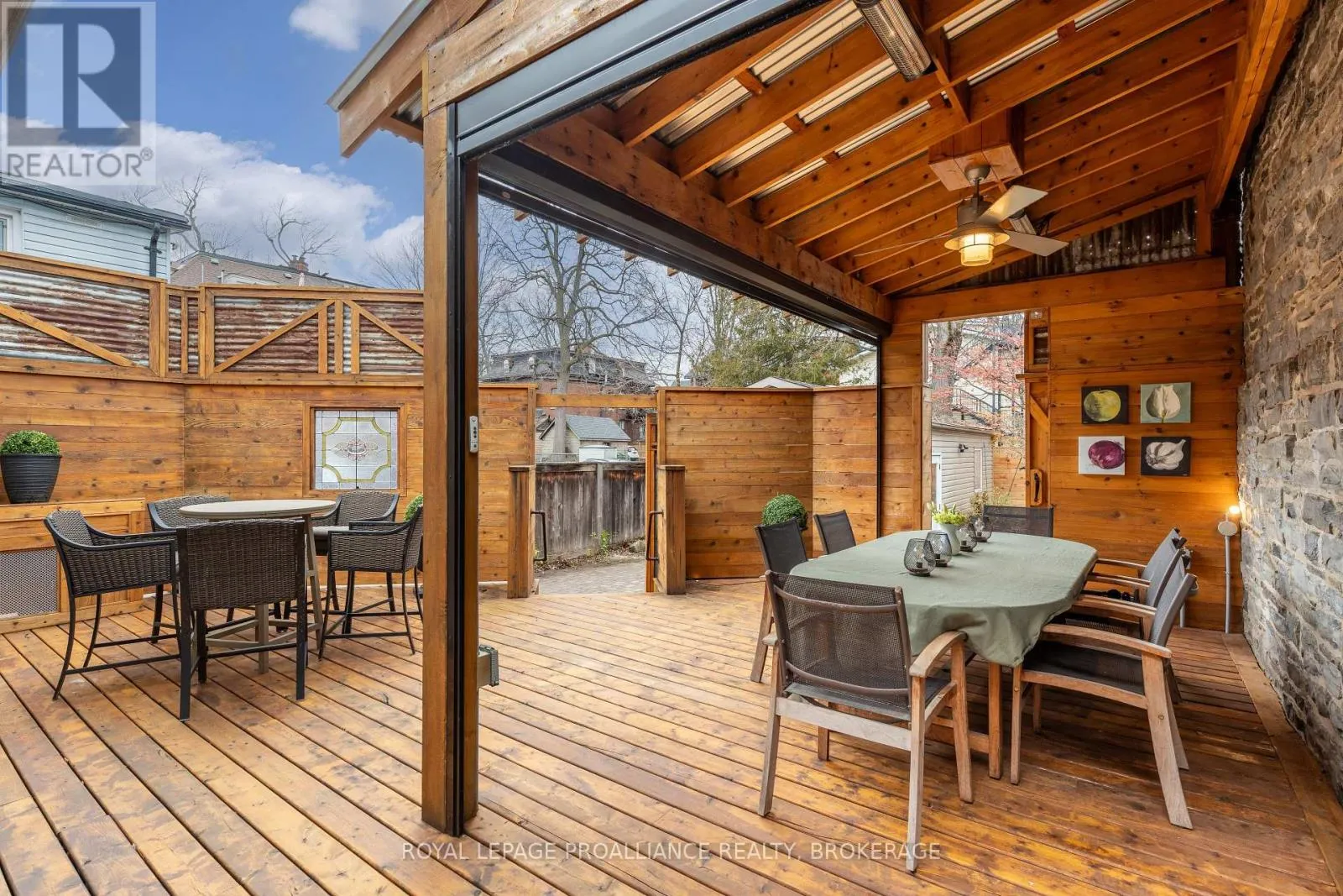 Cross Streets: West Street and Wellington Street. ** Directions: Between West Street and Wellington Street. A truly unique home offering the perfect balance of old-world character and modern comfort, ideally located just steps from downtown Kingston. Enjoy soaring ceilings, beautiful hardwood floors, and custom details throughout. The stunning kitchen is designed for entertaining, featuring a gas stove, three dishwashers, a separate beverage refrigerator, and warming drawers-perfect for hosting gatherings of any size. A dramatic two-sided fireplace adds warmth both indoors and out, opening to a private backyard retreat with outdoor screens that are remote controlled. The home features four bedrooms, four bathrooms, a detached garage, and a dry, unfinished basement offering excellent storage or future consideration. Recent updates include a new boiler and hot water tank (2026), an outdoor elevator, and many additional improvements that enhance comfort and convenience. This exceptional property is ideal for buyers seeking something truly special in a prime downtown location. (id:27476)