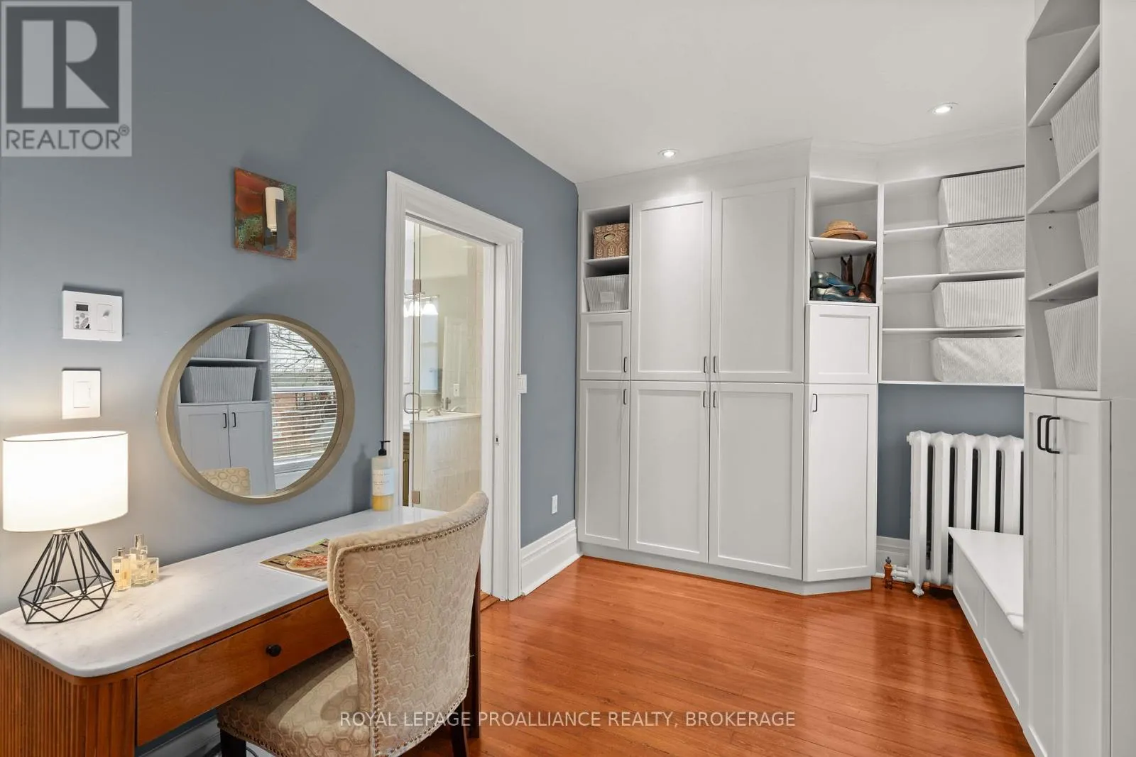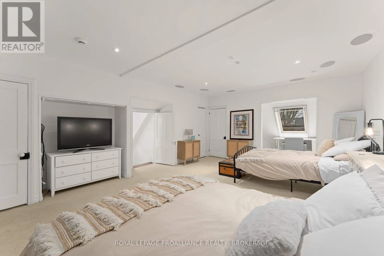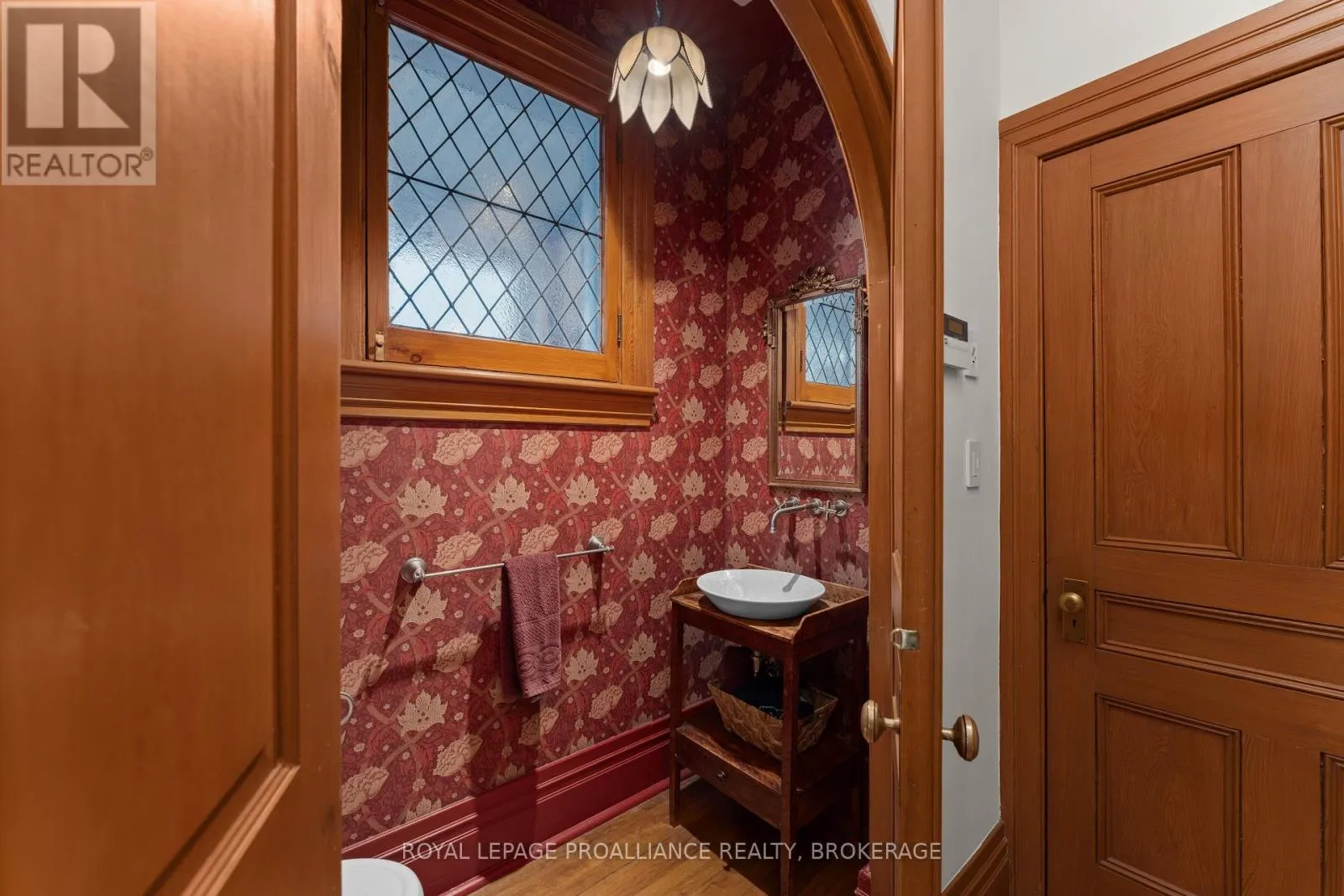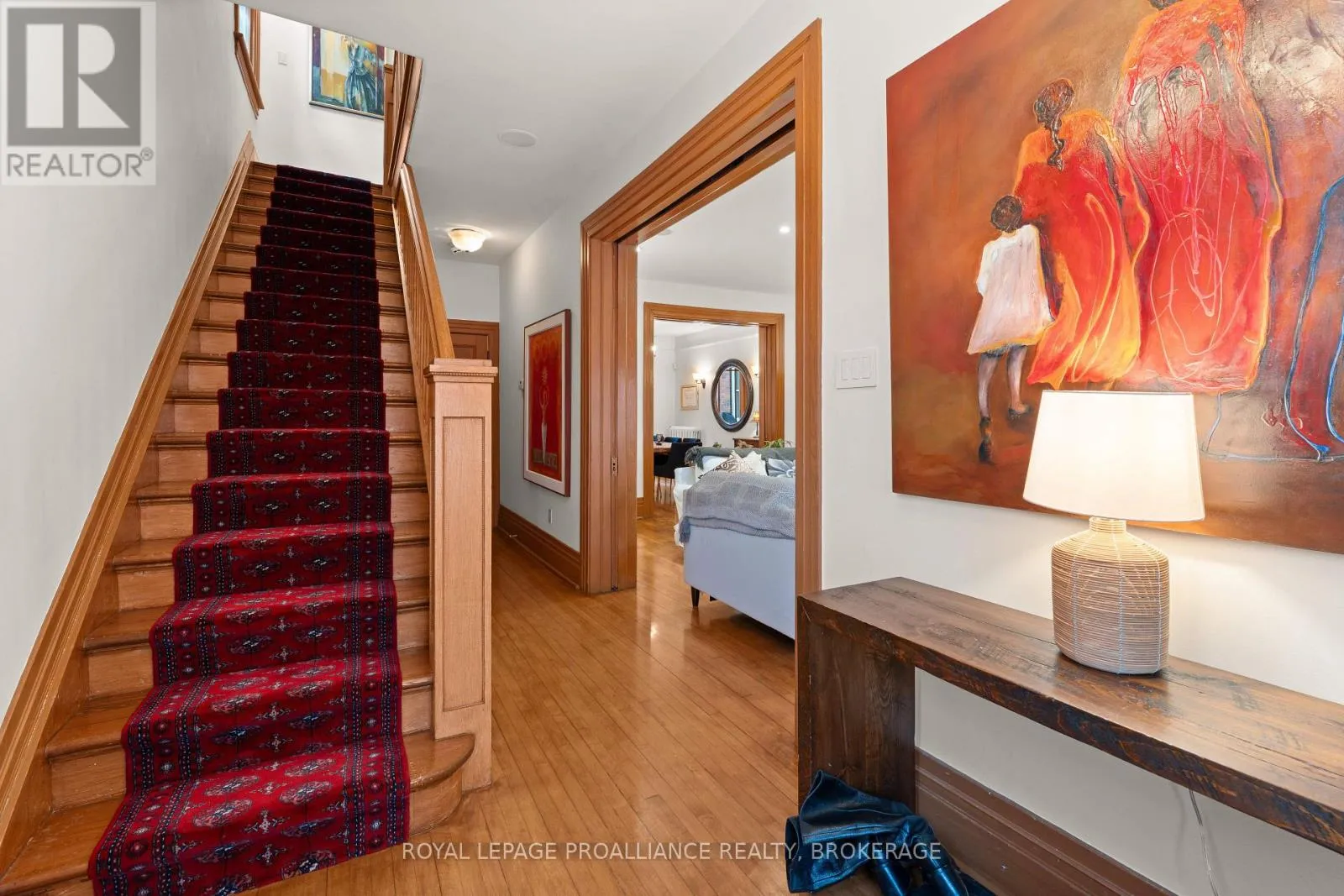 Cross Streets: West Street and Wellington Street. ** Directions: Between West Street and Wellington Street. A truly unique home offering the perfect balance of old-world character and modern comfort, ideally located just steps from downtown Kingston. Enjoy soaring ceilings, beautiful hardwood floors, and custom details throughout. The stunning kitchen is designed for entertaining, featuring a gas stove, three dishwashers, a separate beverage refrigerator, and warming drawers-perfect for hosting gatherings of any size. A dramatic two-sided fireplace adds warmth both indoors and out, opening to a private backyard retreat with outdoor screens that are remote controlled. The home features four bedrooms, four bathrooms, a detached garage, and a dry, unfinished basement offering excellent storage or future consideration. Recent updates include a new boiler and hot water tank (2026), an outdoor elevator, and many additional improvements that enhance comfort and convenience. This exceptional property is ideal for buyers seeking something truly special in a prime downtown location. (id:27476)
