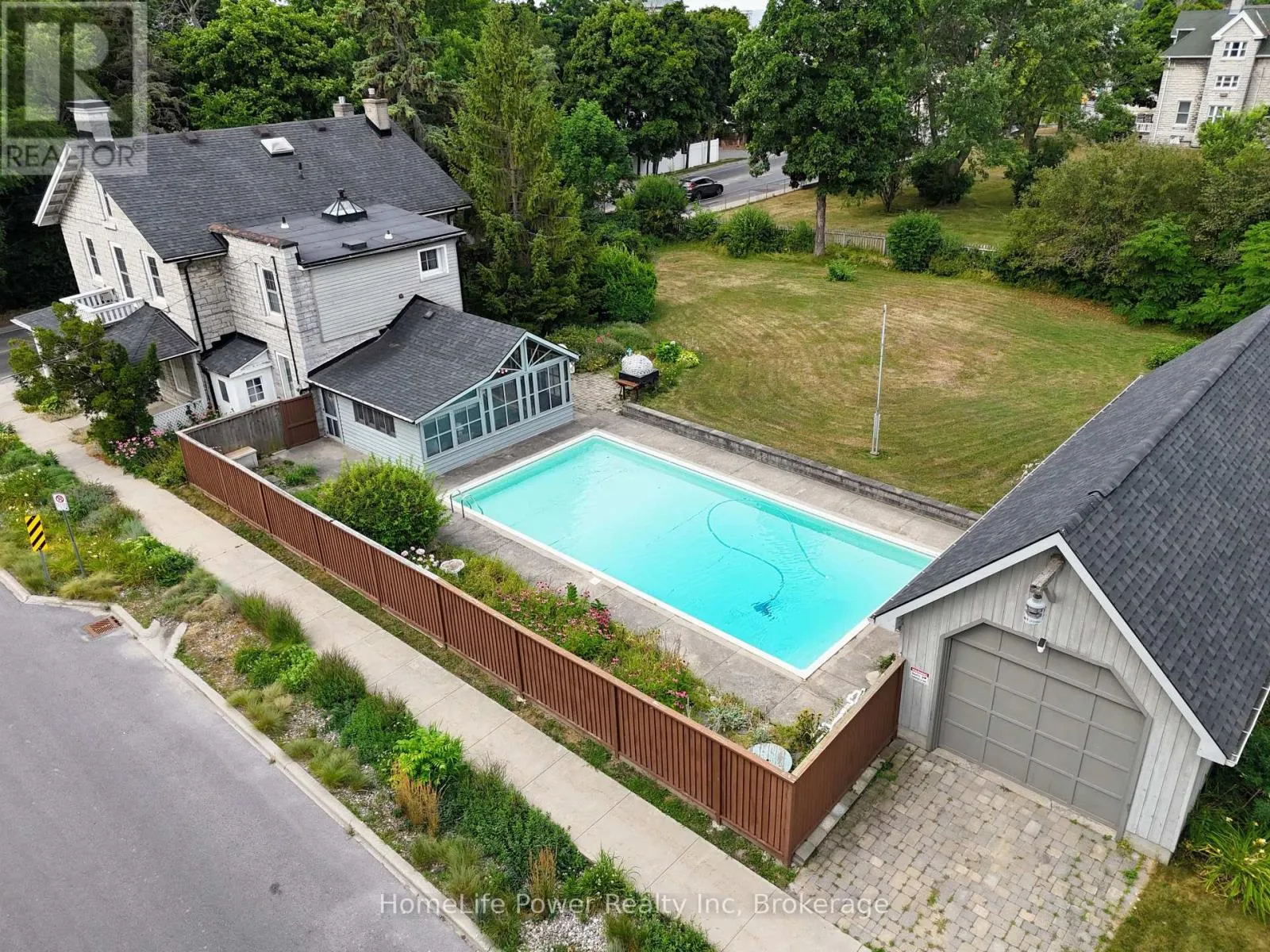 Cross Streets: King St. West. ** Directions: King St. West and Alwington Avenue. Few homes capture both history and possibility the way 2 Alwington Avenue does. Set on a fully fenced corner lot of ~0.36 acre (15,950 sq ft) in Kingstons most distinguished neighbourhood, this limestone residence is more than a home it is a private estate within the city. A property of this scale is exceptionally rare downtown, offering the space, privacy, and flexibility most can only dream of. Inside, light pours through oversized windows, animating gracious rooms designed for both everyday living and memorable gatherings. Every corner of the house feels designed for connection whether with family, guests, or the outdoors. With five bedrooms plus a study (6th Bedroom Potential) and Five (5) baths across 3 levels, the home easily accommodates a growing family or multigenerational living. Period details, wide-plank floors, abundant storage, and fine wood trim underscore its enduring character. Yet the story extends far beyond the walls. The fully fenced grounds unfold into a true city oasis: swim in the in-ground pool, dine on the stone patio, and let children play safely on the expansive lawn. A detached 700 sq ft garage, positioned at the far end of the lot, provides parking and workshop/studio potential and strengthens the sites flexibility. And with a lot of this size, the future holds exciting possibilities. The frontage and depth suggest potential for additional lots or a thoughtful redevelopment (subject to approvals), adding another layer of value to an already remarkable property. Cherished by one family for over five decades and marked by a heritage plaque (c.1850), this residence offers both stature and opportunity. A rare convergence of land, location, and legacy: moments to hospitals and campus, steps to lakefront trails, and room to grow for decades. If you have been waiting for a Kingston address worthy of being a forever home, this is the one. (id:27476)