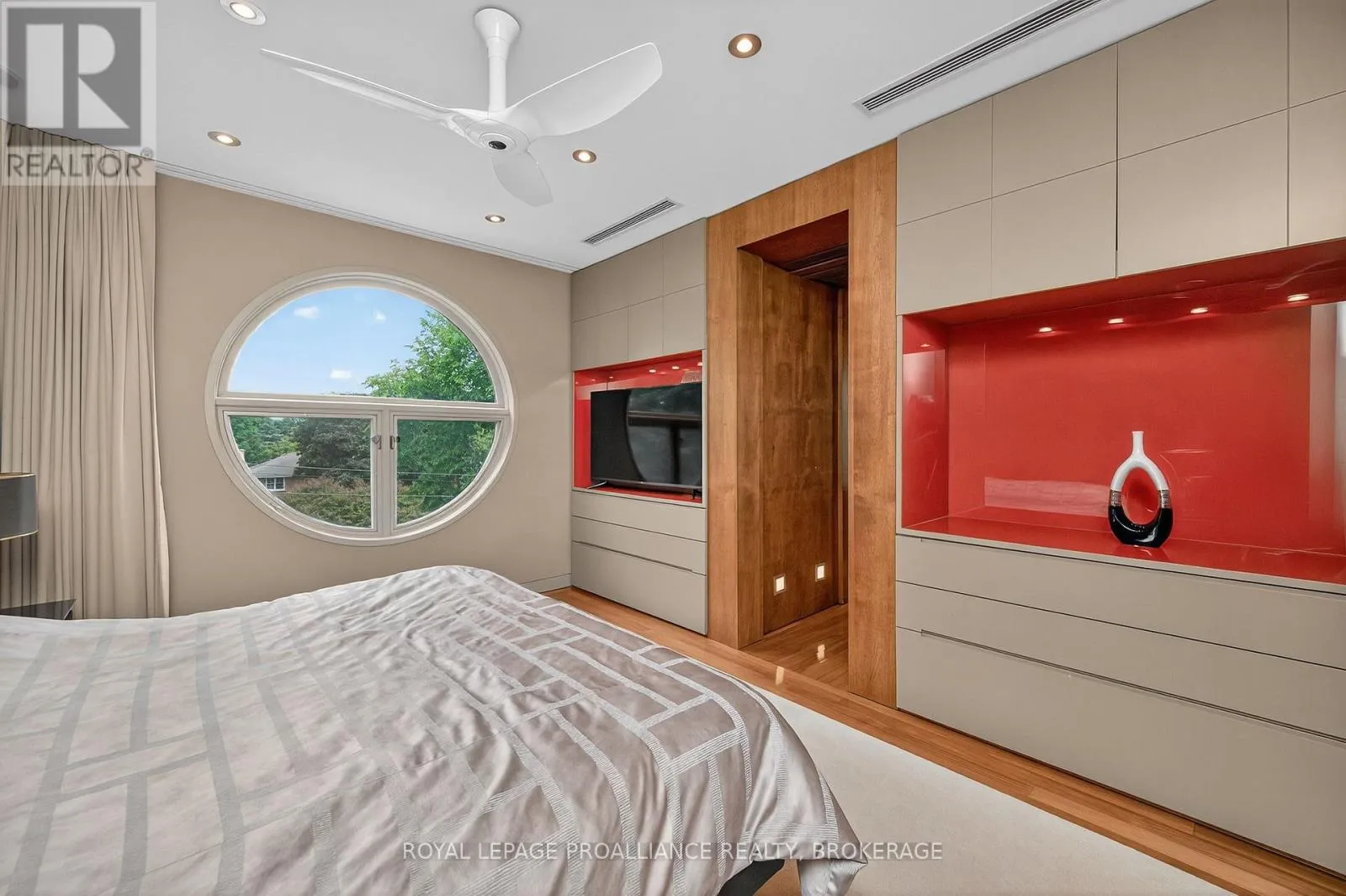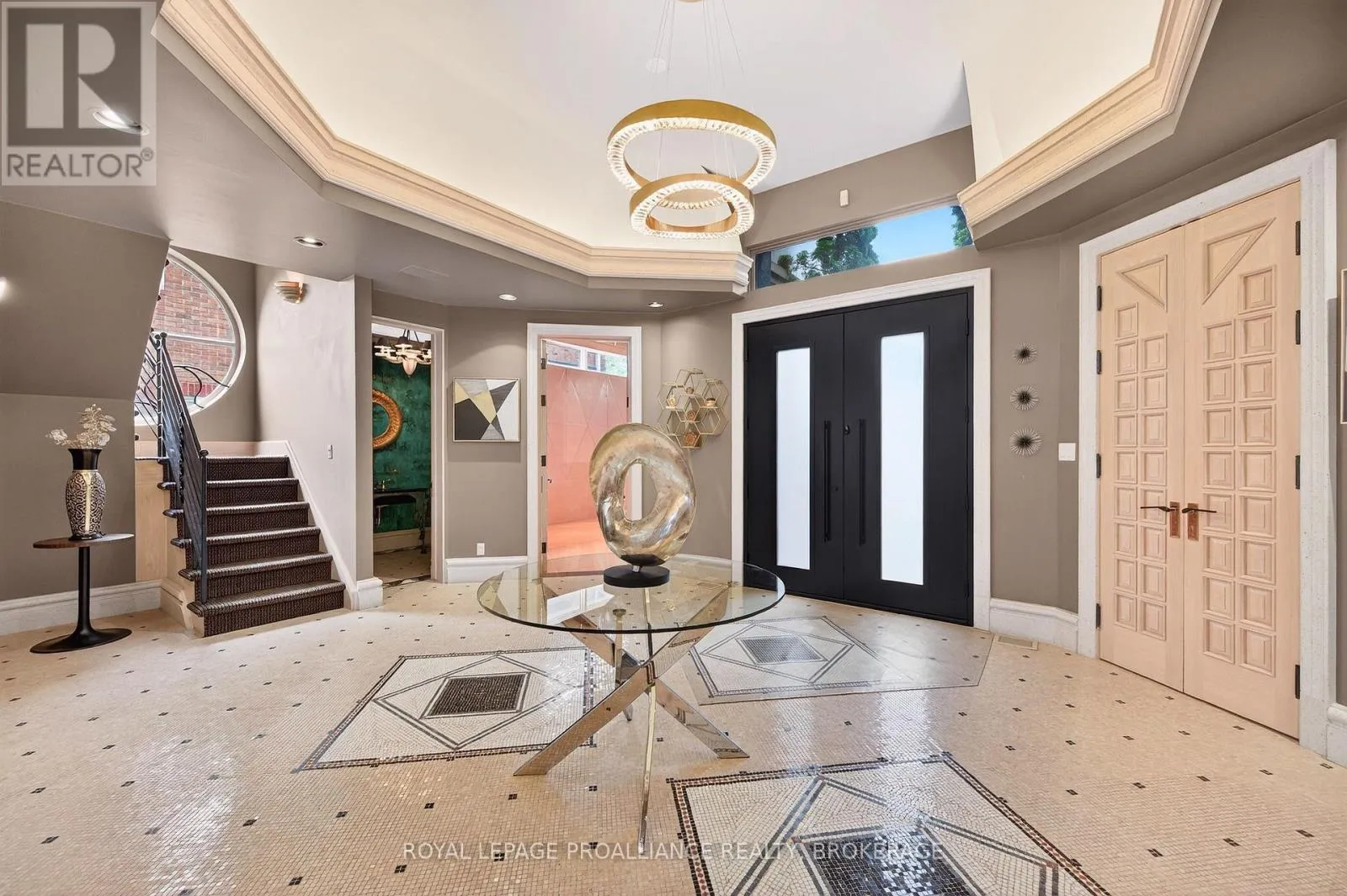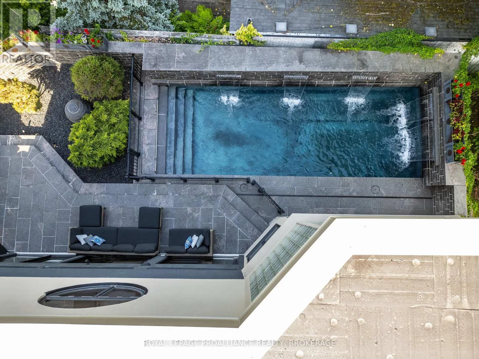 Cross Streets: Authors Lane (#3) off Dickens Drive and before Copperfield Drive. ** Directions: Johnson Street to Dickens Drive to Authors Lane (#3). A rare blend of luxury, comfort, and family-focused design-this custom-built masterpiece in Kingston's Calvin Park has it all. Located on a quiet cul-de-sac just minutes from Lake Ontario's waterfront trails, this 4+1 bedroom, 6-bath home offers over 6,000 square feet of sophisticated living, tailor-made for modern families. The striking two-tone exterior is elevated by newly refreshed stucco (2024), while the interior showcases expert craftsmanship with rich custom mouldings, elegant panel work, and impeccable finishes. The 2-car garage has been fully drywalled and painted for a clean, polished look. On the lower level you will find flexibility meets function: it features a spacious bedroom, full bath, family room, wet bar, and a comfortable area for children to play-ideal for families who need adaptable space that grows with them. Upstairs, the primary suite is a true retreat with a walk-in closet and a luxurious ensuite featuring a professionally restored marble countertop (2024). Step outside into a private backyard oasis where an inground pool with cascading waterfalls is framed by stone walls and a new safety fence. A stone patio and backyard handrail create an ideal setting for outdoor entertaining and relaxed family time. This home has been extensively updated inside and out: new pool pump and irrigation controller (2024), outdoor AC unit (2023, with warranty), dual furnace heat exchanger replacements, and a new hot water tank (2024). Smart Nest thermostats and an upgraded security system add everyday ease and peace of mind. Close to Queen's University, KGH, and vibrant downtown Kingston, this home balances thoughtful luxury with family-first comfort-an exceptional space to grow, gather, and thrive. (id:27476)