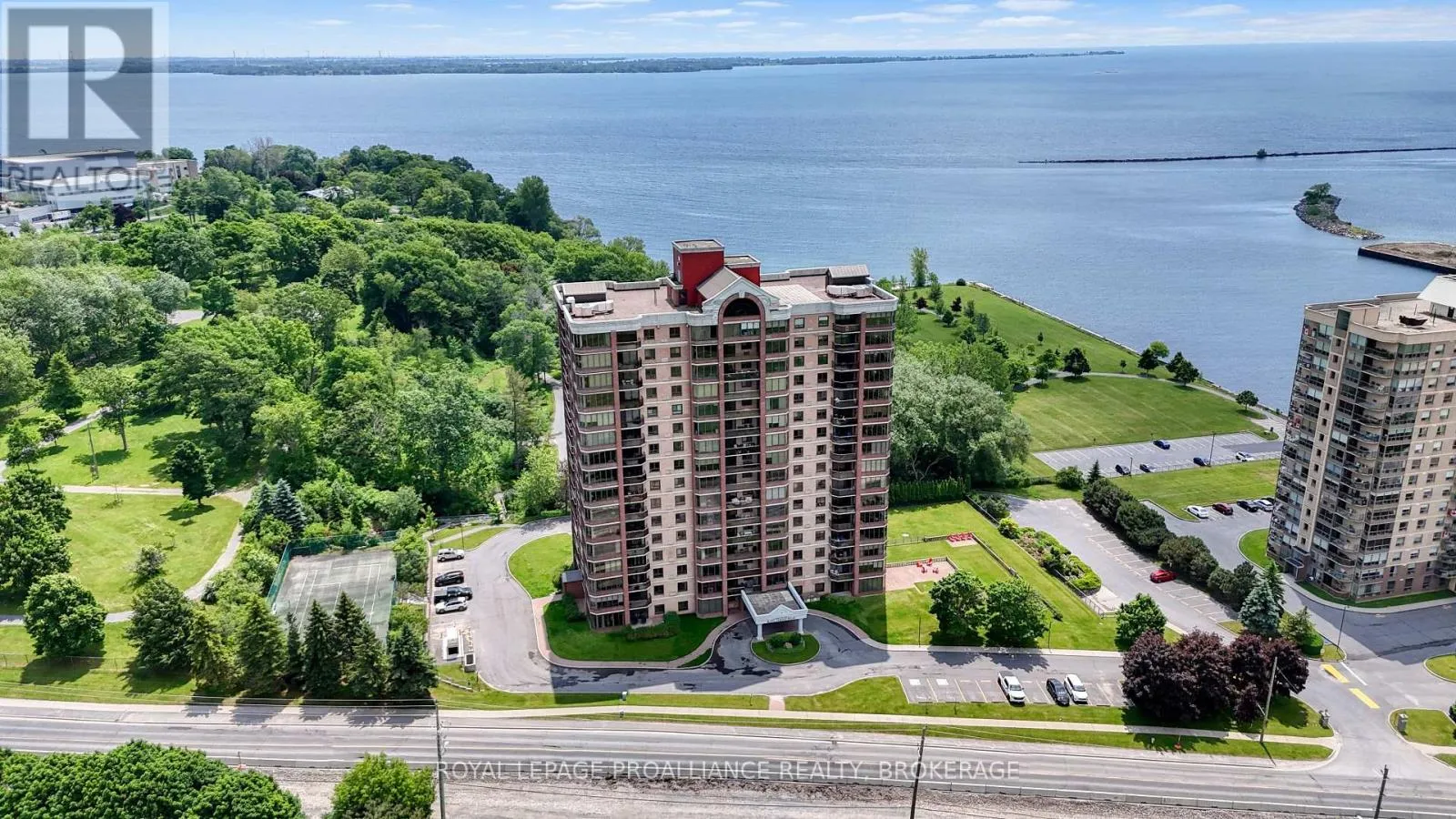 Cross Streets: Country Club Drive. ** Directions: From Days Rd. East on King Street. Welcome to 1000 King Street West, this bright and beautiful 2-bedroom, 2-bathroom condo offers an ideal combination of comfort, convenience, and security in a highly desirable midtown location. Sweeping Views of Lake Ontario. The open-concept design features a modern, updated kitchen with elegant stone countertops and new appliances INCLUDING dishwasher and bar fridge. Formal dining area and a spacious light-filled living room + Separate Sitting area. Large primary bedroom, w/ fully renovated ensuite bathroom. 2nd full Bath & 2nd bedroom. New Flooring and In-Suite Washer/Dryer. This building provides a list of exceptional amenities, including secure underground parking, an indoor pool, rooftop lounge, tennis courts, Fitness Center, workshop, Greenhouse, ample storage and a variety of hosted social events. This property presents a wonderful opportunity to enjoy an elevated lifestyle in an exceptional location. (id:27476)