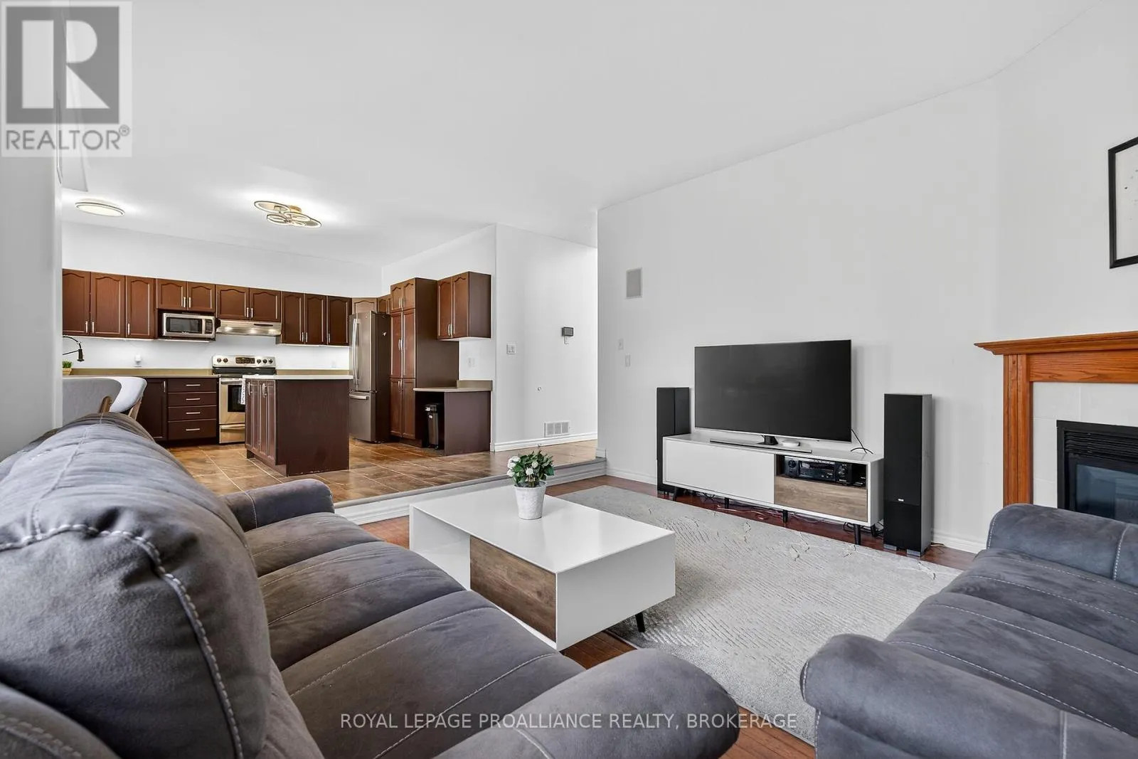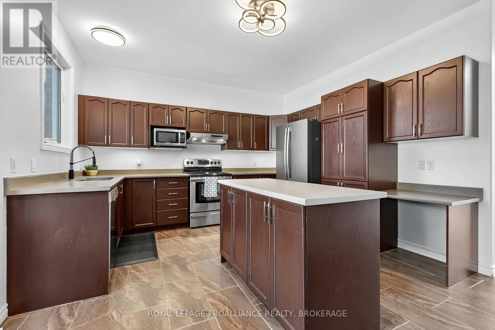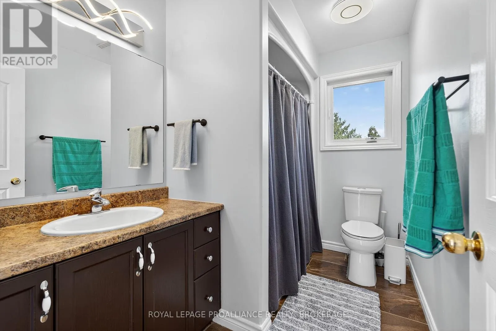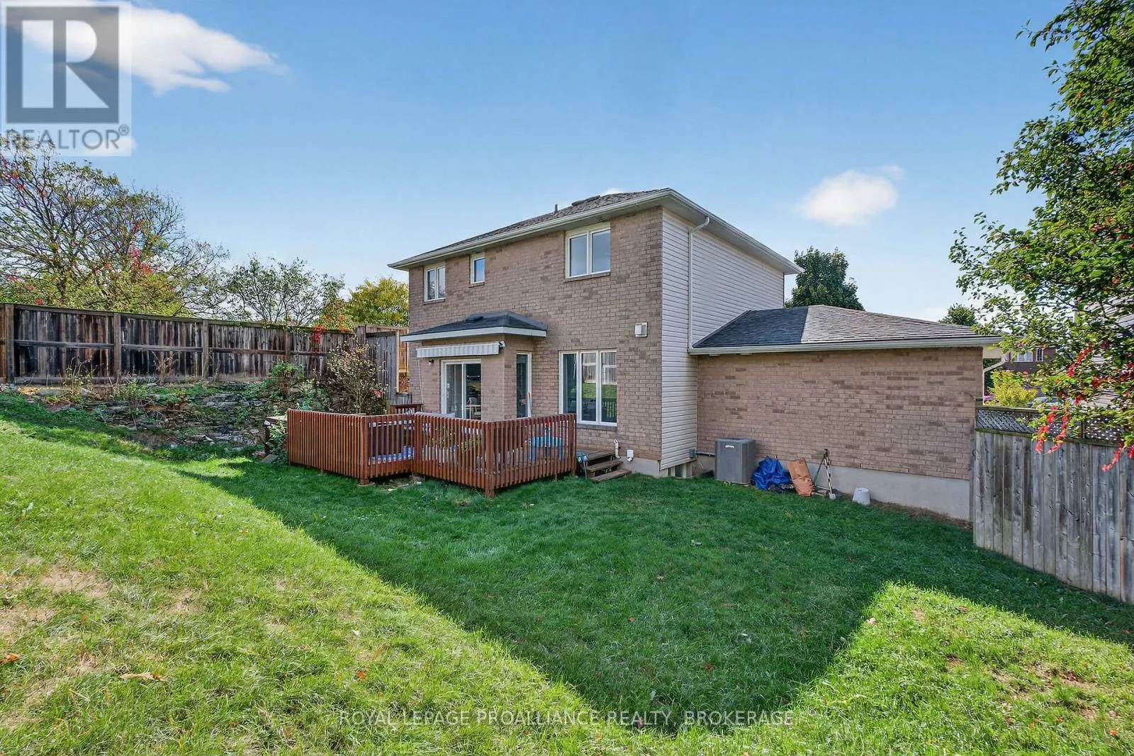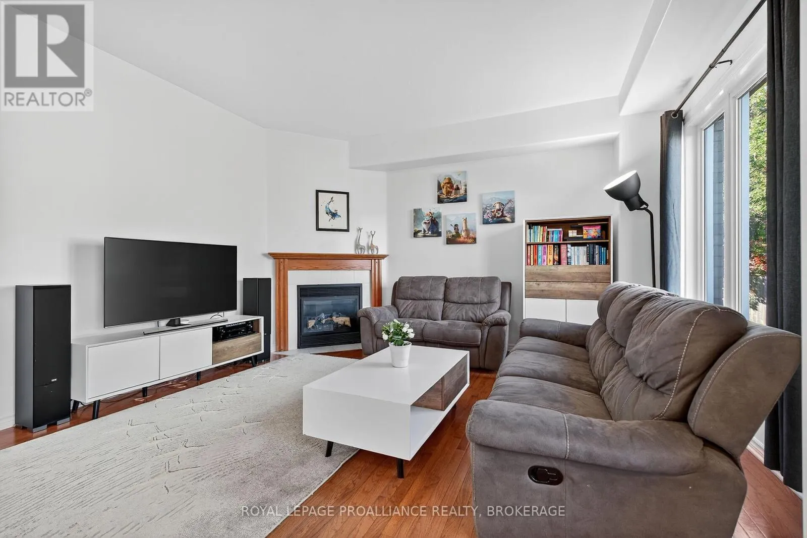 Cross Streets: Coverdale Dr. & Stoneridge Dr. ** Directions: Bath Rd. to Coverdale Dr. to Geology Trail. Welcome to your dream home! This beautiful and spacious contemporary residence is nestled on a quiet cul-de-sac, just a short walk from the lake, parks, and shopping. Perfectly designed for family living, this home offers a functional and stylish floor plan with modern upgrades throughout. Step inside to a bright and welcoming entrance with soaring 9-foot ceilings. The main level features a beautifully updated kitchen with an open-concept eat-in breakfast nook that flows seamlessly into the large living room, complete with a cozy gas fireplace. Patio doors lead out to a generous back deck - ideal for outdoor entertaining. A separate dining room (or optional family room), main-level laundry, and a convenient two-piece bathroom complete the main floor. Upstairs, the spacious primary bedroom boasts a luxurious four-piece ensuite. Two additional bedrooms share a well-appointed four-piece bathroom. New engineered hardwood flooring was installed throughout the upper level in May 2024, adding warmth and elegance. The fully finished, newly renovated lower level offers incredible versatility with a large recreation room, kitchenette, bedroom, brand-new bathroom, and ample storage - perfect for extended family, guests, or a private retreat. Enjoy the fully landscaped backyard with no rear neighbours, offering peace, privacy, and the perfect space for relaxation. Dont miss the opportunity to make this stunning home yours! (id:27476)