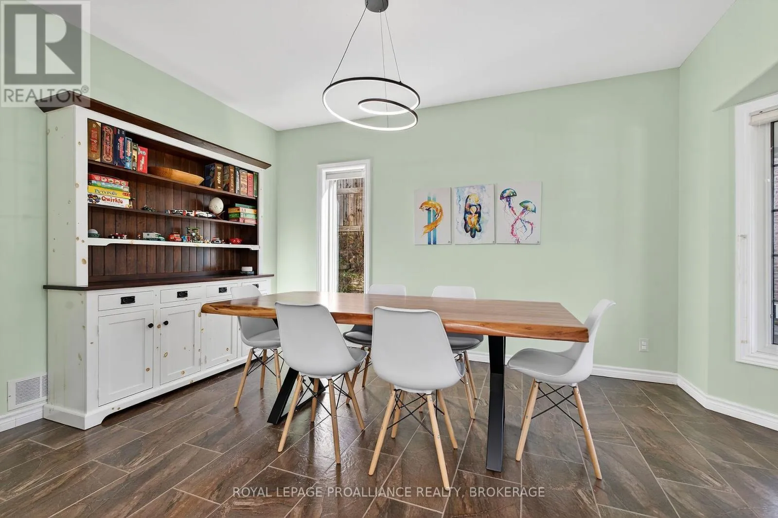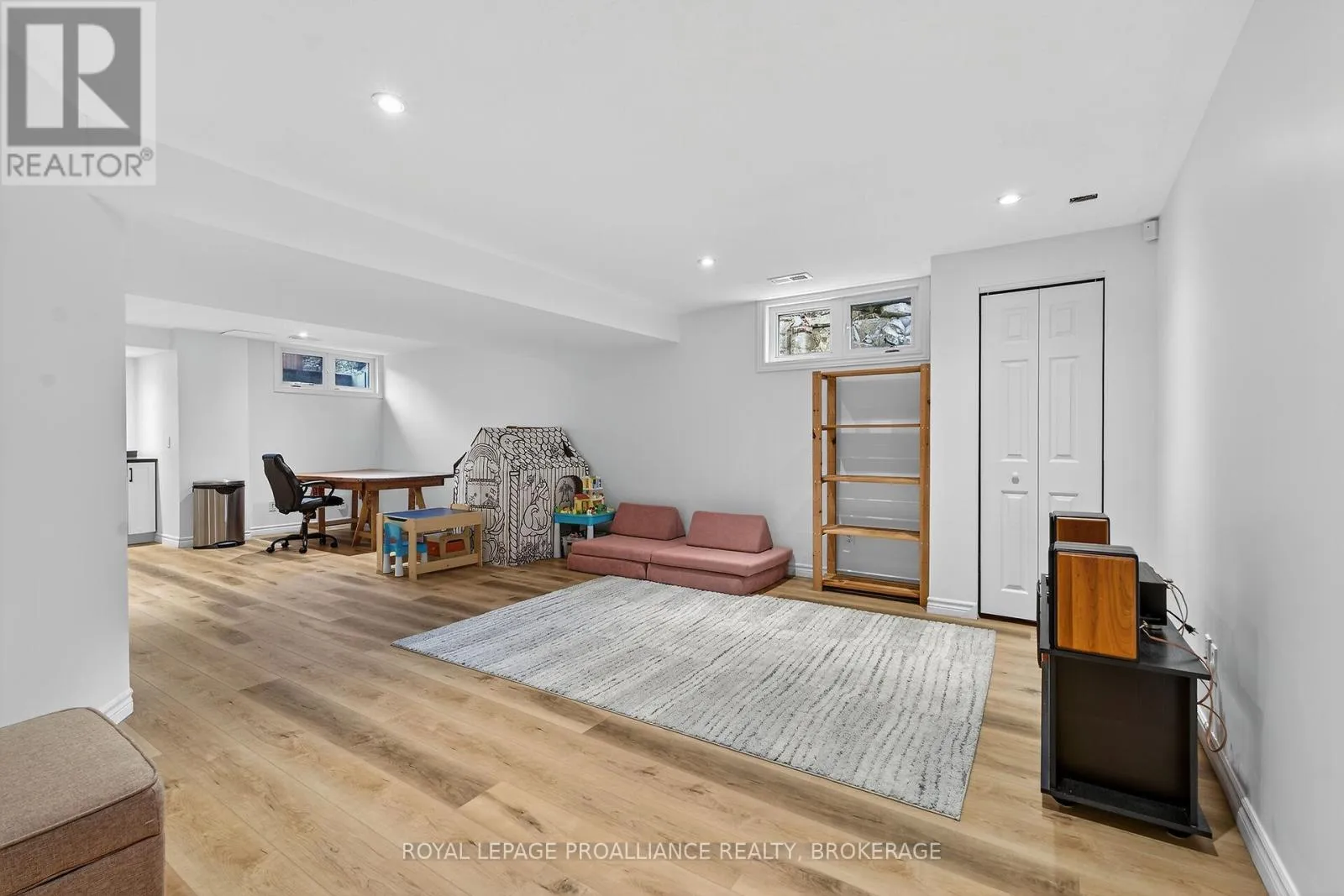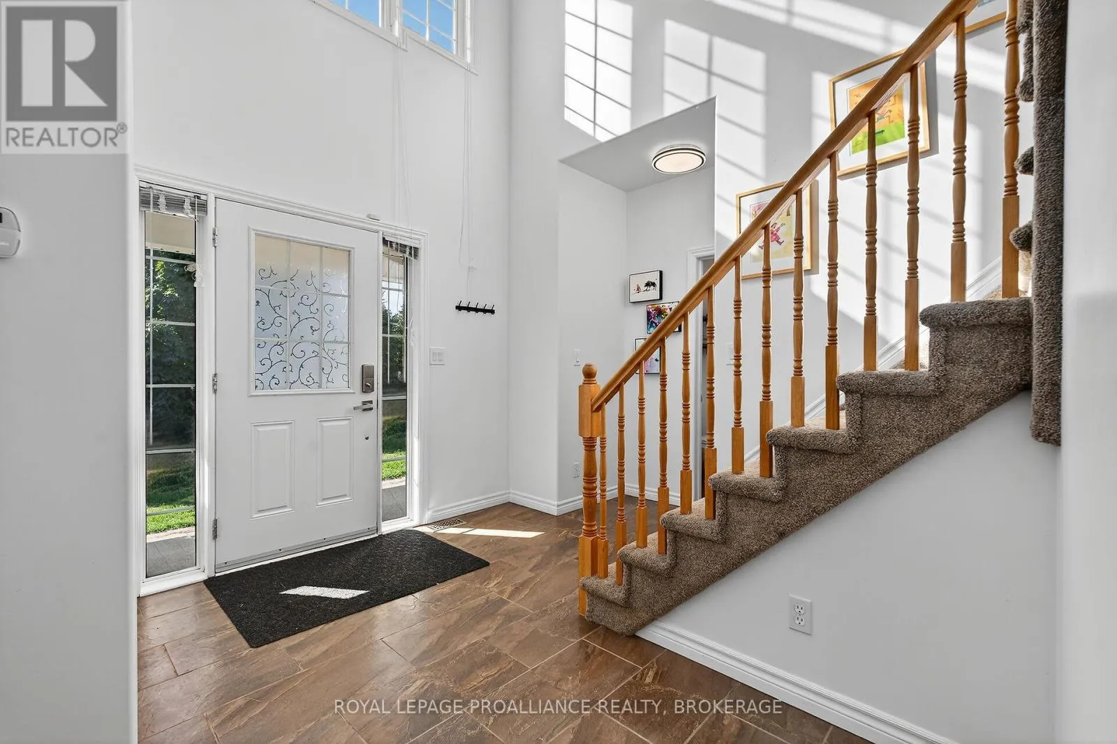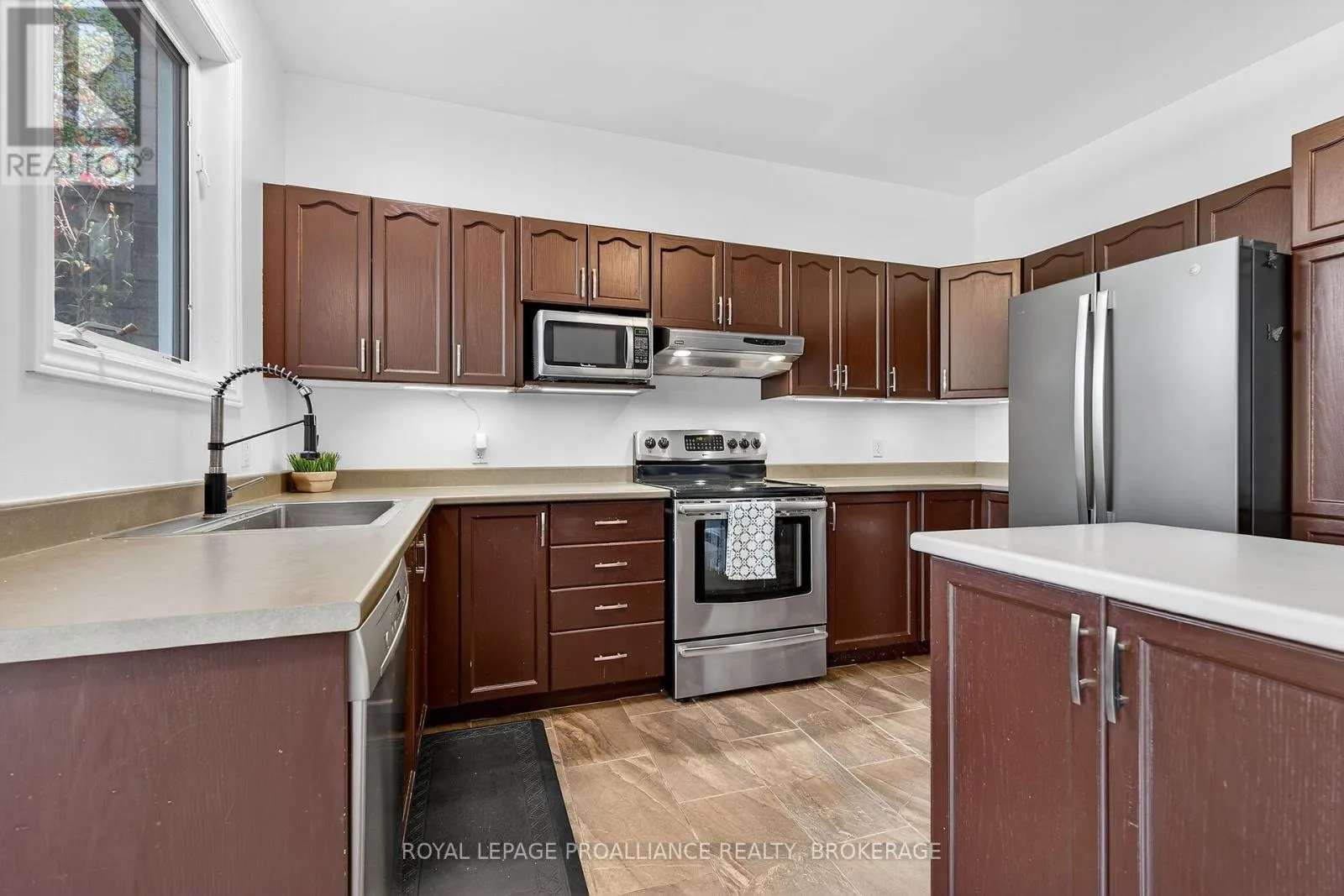 Cross Streets: Coverdale Dr. & Stoneridge Dr. ** Directions: Bath Rd. to Coverdale Dr. to Geology Trail. Welcome to your dream home! This beautiful and spacious contemporary residence is nestled on a quiet cul-de-sac, just a short walk from the lake, parks, and shopping. Perfectly designed for family living, this home offers a functional and stylish floor plan with modern upgrades throughout. Step inside to a bright and welcoming entrance with soaring 9-foot ceilings. The main level features a beautifully updated kitchen with an open-concept eat-in breakfast nook that flows seamlessly into the large living room, complete with a cozy gas fireplace. Patio doors lead out to a generous back deck - ideal for outdoor entertaining. A separate dining room (or optional family room), main-level laundry, and a convenient two-piece bathroom complete the main floor. Upstairs, the spacious primary bedroom boasts a luxurious four-piece ensuite. Two additional bedrooms share a well-appointed four-piece bathroom. New engineered hardwood flooring was installed throughout the upper level in May 2024, adding warmth and elegance. The fully finished, newly renovated lower level offers incredible versatility with a large recreation room, kitchenette, bedroom, brand-new bathroom, and ample storage - perfect for extended family, guests, or a private retreat. Enjoy the fully landscaped backyard with no rear neighbours, offering peace, privacy, and the perfect space for relaxation. Dont miss the opportunity to make this stunning home yours! (id:27476)