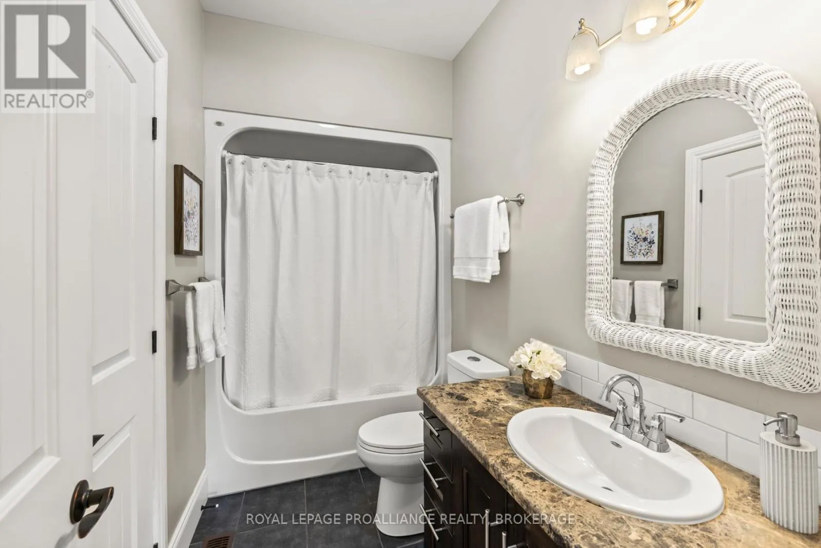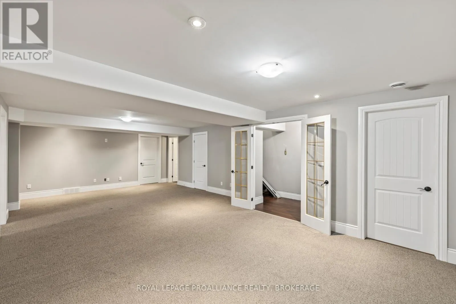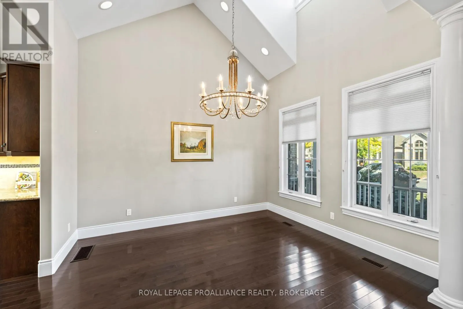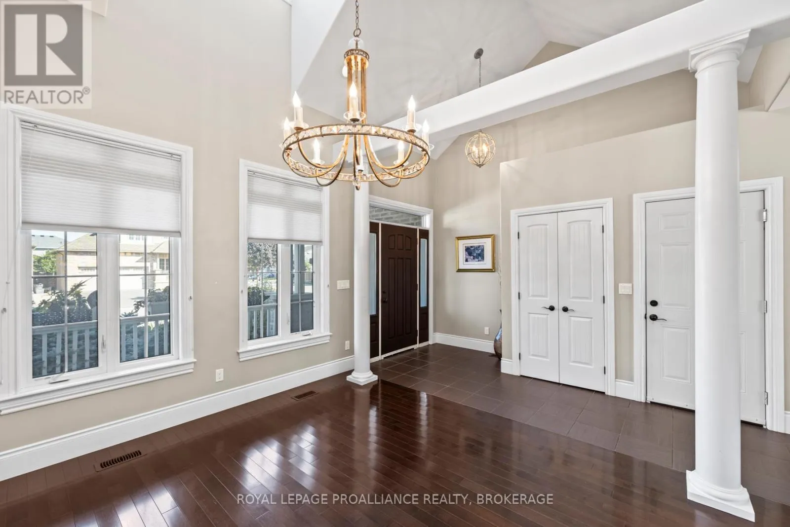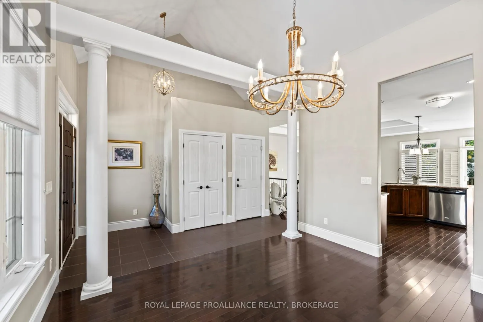 Cross Streets: Atkinson & Augusta. ** Directions: Centennial to Atkinson. Nestled on a beautifully landscaped lot in the coveted Lyndenwood neighbourhood, 1213Atkinson Street blends timeless curb appeal with custom craftsmanship and thoughtful modern updates. This Haynes-built home is a rare gem-designed to impress while delivering everyday comfort. From the all-brick, stone, and stucco exterior to the stunning new stone walkway and lush front gardens, this home makes a striking first impression. Step inside to soaring ceilings, elegant pillars, and rich hardwood floors. A formal dining room with vaulted ceilings serves as an elegant lounge-a perfect space to unwind with guests, enjoy evening cocktails, or curl up with a good book. This room's versatility allows it to easily convert to a formal dining function or continue as a cozy yet upscale entertaining area. The heart of the home is the spacious open-concept kitchen, living, and dining area. Granite countertops, warm custom cabinetry, and a large island invite gathering, while the gas fireplace and coffered ceilings add charm and character. Walk out to the private, fenced backyard where the lilac blooms and the carefully curated landscaping frame the natural gas BBQ area and deck-ideal for summer evenings at home. The main level offers a serene primary bedroom with a walk-in closet and convenient ensuite, plus a second bedroom and full bath; these are separated from the living room by a custom pocket door for added privacy. Main-floor laundry adds everyday convenience. Downstairs, the fully finished lower level is its own retreat-featuring a massive rec room, two additional bedrooms, a workout area, and another full bathroom, perfect for guests or teens. With approximately 2,500 sqft of finished living space, recent upgrades include designer lighting and enhanced landscaping in both front and back yards. This home offers upscale comfort in one of Kingston's most central and convenient communities. (id:27476)