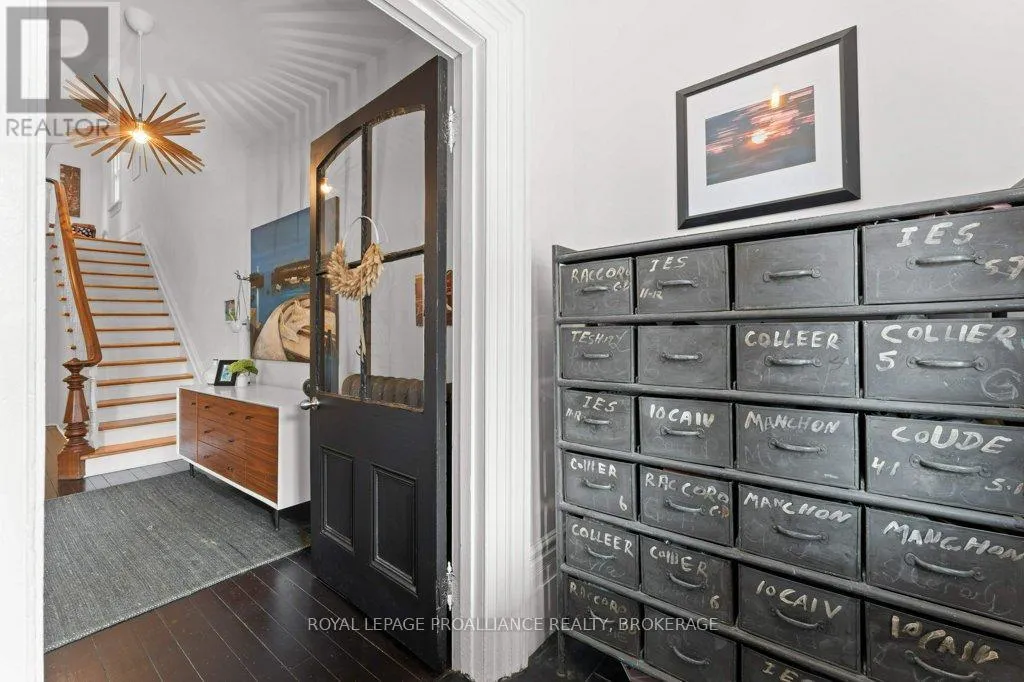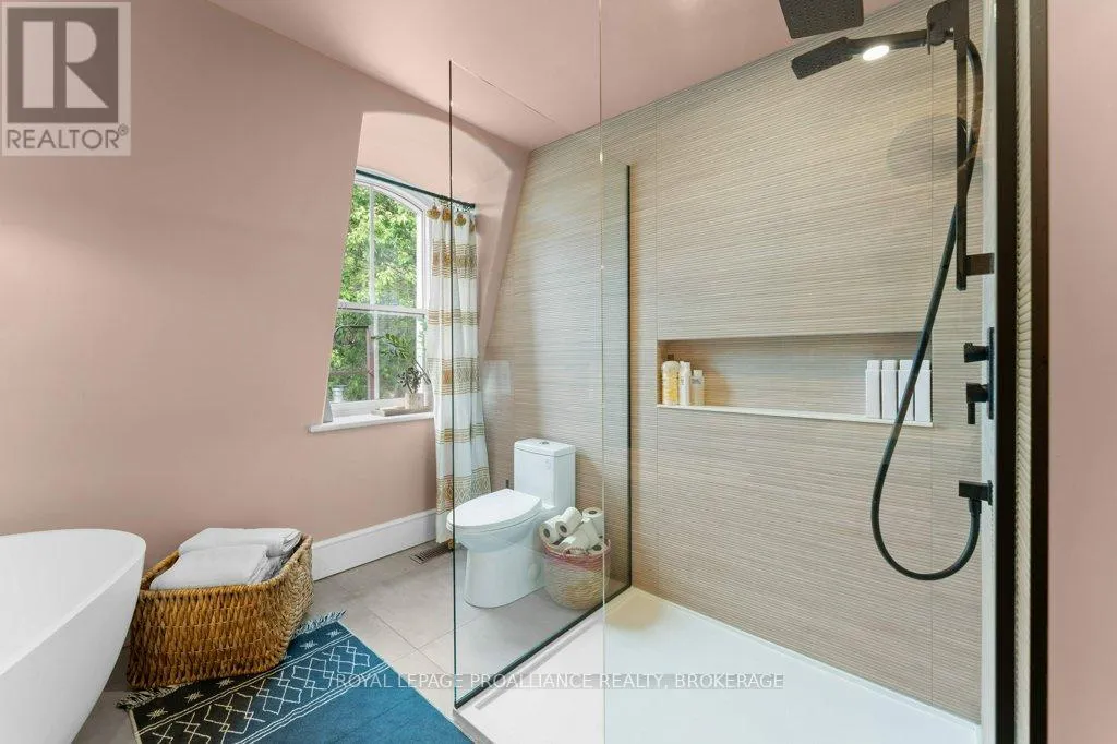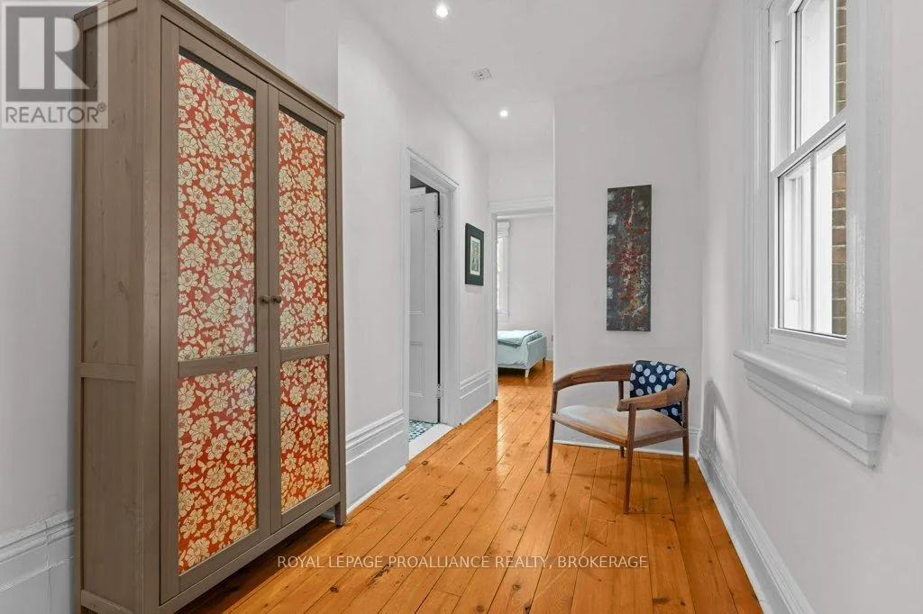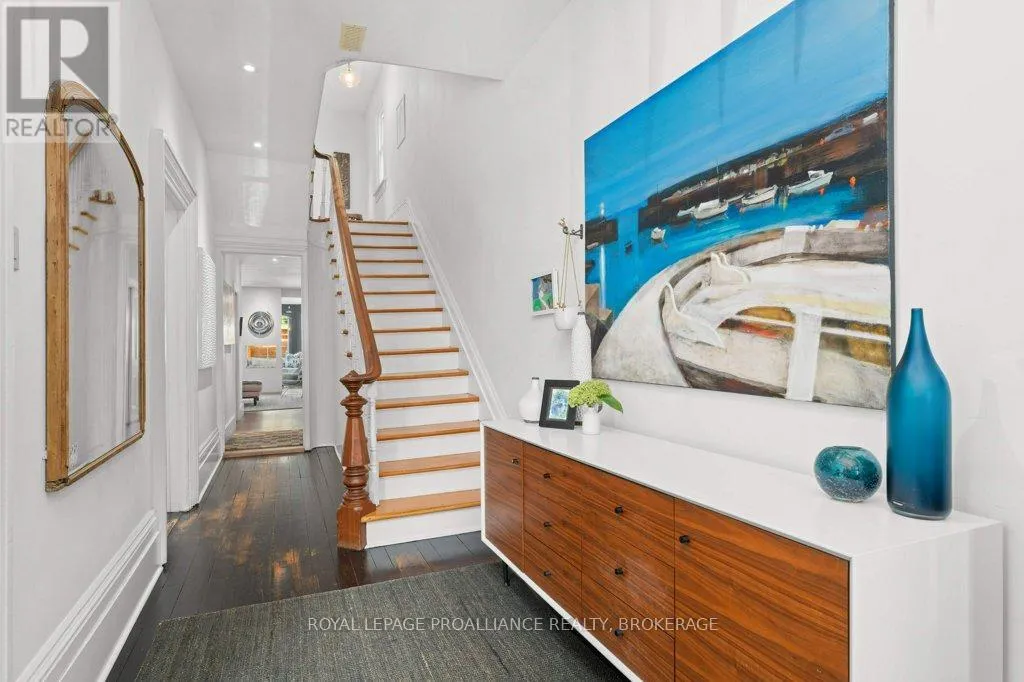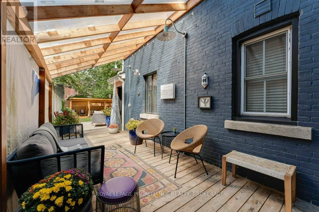 Wellington and Gore Rare opportunity to take over a piece of history with this classic and delightful five-bedroom family home, in the heart of the coveted Sydenham Ward in downtown Kingston. This charming residence was meticulously designed by renowned architect Jonathan Power in 1878, and benefits from a remarkably large garden, difficult ever to find in this central location, just steps from Market Square, KGH and Queens .Enjoy the comforts of modern living with a recent full renovation (designed by the interior designer owner) which included a new kitchen, luxurious bathrooms, and an elegantly finished basement equipped with 8 high ceilings and ample natural light. The expansive rear garden is a true gem, featuring a stylish deck and a European-style gazebo(just built), providing an idyllic space for relaxation and entertainment. Plus a gas fire piton the terrace to enjoy on cooler evenings. This home harmoniously blends classic architecture(both inside and out) with contemporary amenities. Enjoy the original restored radiators for character, alongside modern air conditioning on the top three storeys and efficient radiant heat from a new gas-fired boiler. From the fully restored front porch and balcony crafted with cedar and ipe wood to the inline parking accommodating up to three vehicles with a carport, every detail has been considered. With five generously sized bedrooms and three baths, there is plenty of room for the entire family to live and thrive. This is a unique opportunity to own a stunning home that offers both historic charm and modern convenience in the heart of Sydenham Ward. (id:27476)