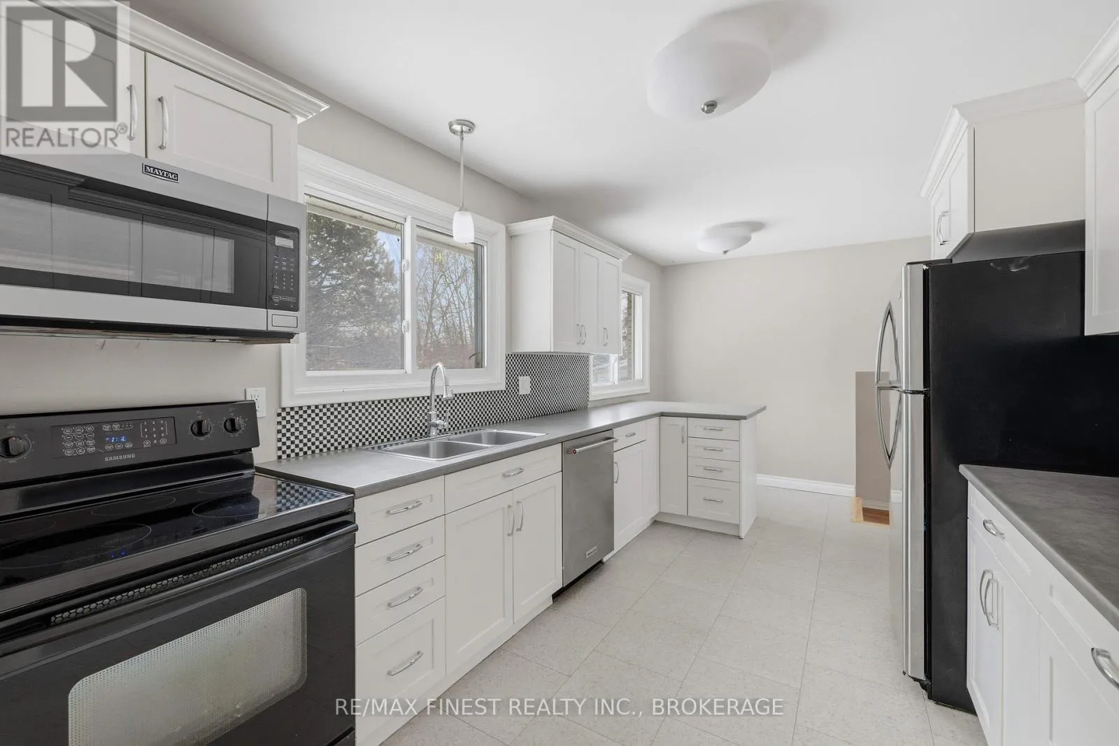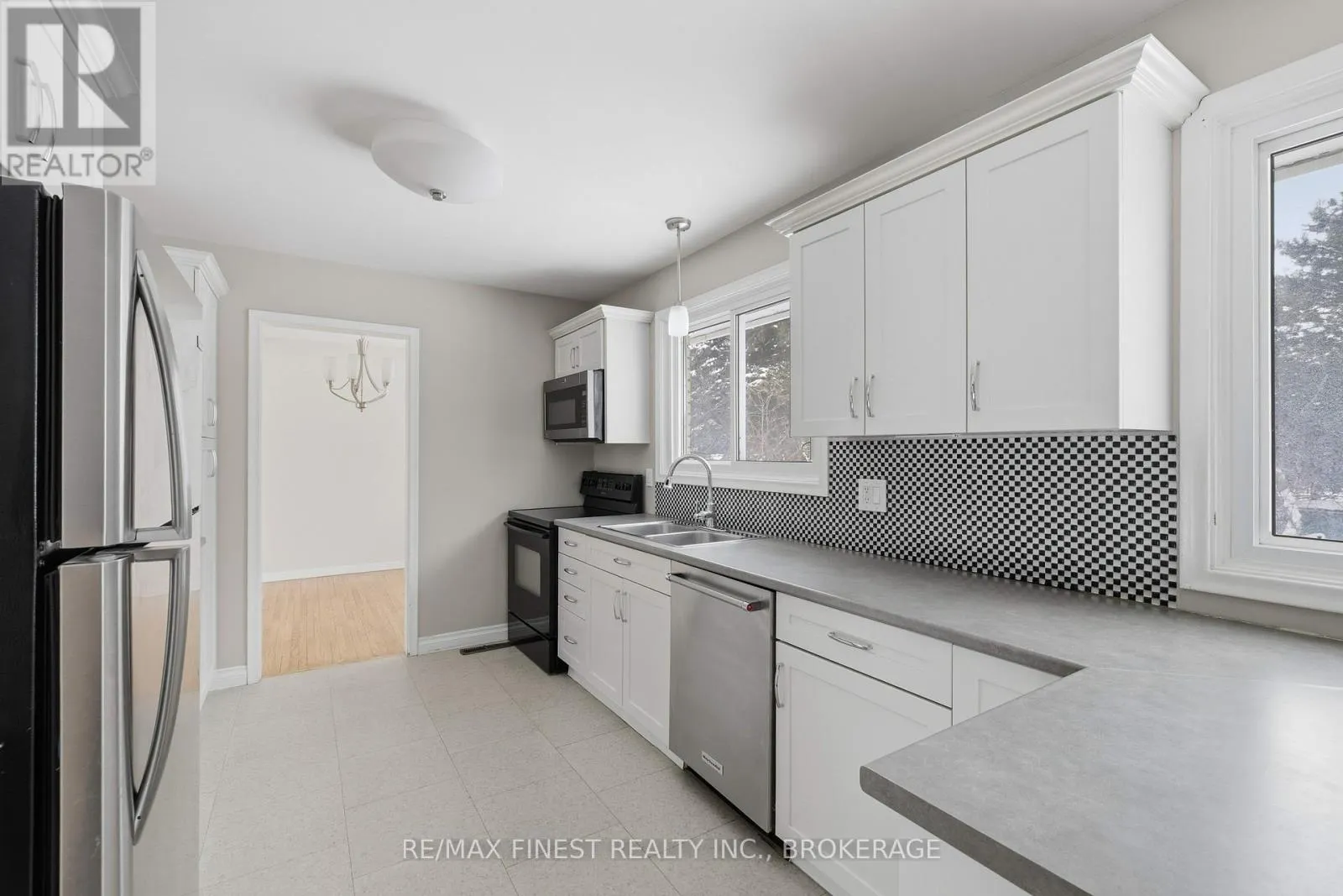 Cross Streets: Sir John A. ** Directions: Sir John A to Avenue Road. Please look closely at this Strathcona Park gem. Living space galore in the 17-foot kitchen, 20-foot living room, and 25-foot family room. No cramping for space here. With so many recent updates...ask your REALTOR for a list. That means maintenance free living for years to come. And what about storage ... got that too. In the oversized single vehicle garage, massive crawl space and double storage sheds. And now the surprise; a full in law suite in a bright lower level.The guest suite gets a separate entrance, 4 appliance kitchen, separate radiantheat, sound proofing from the family and full 4 pc bathroom. There's even roomfor side by cars on the driveway. It's a mid-city find. So don't delay. (id:27476)