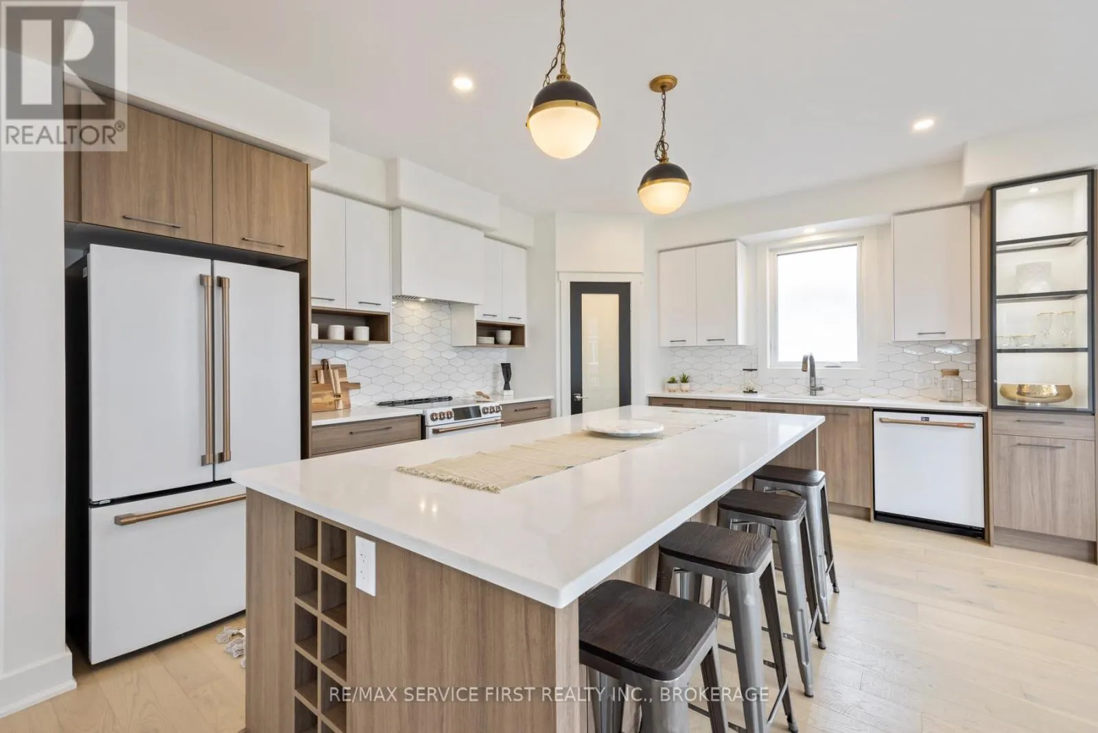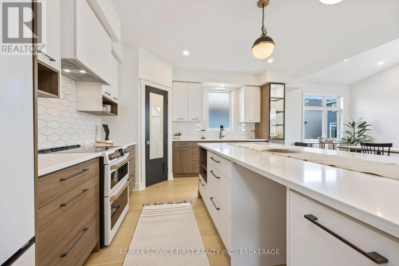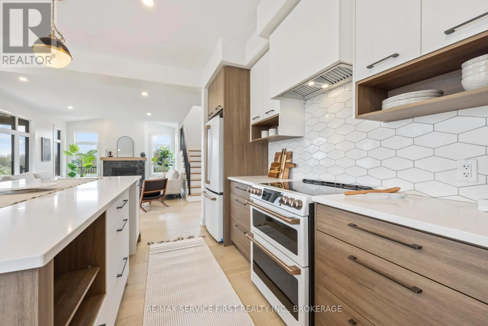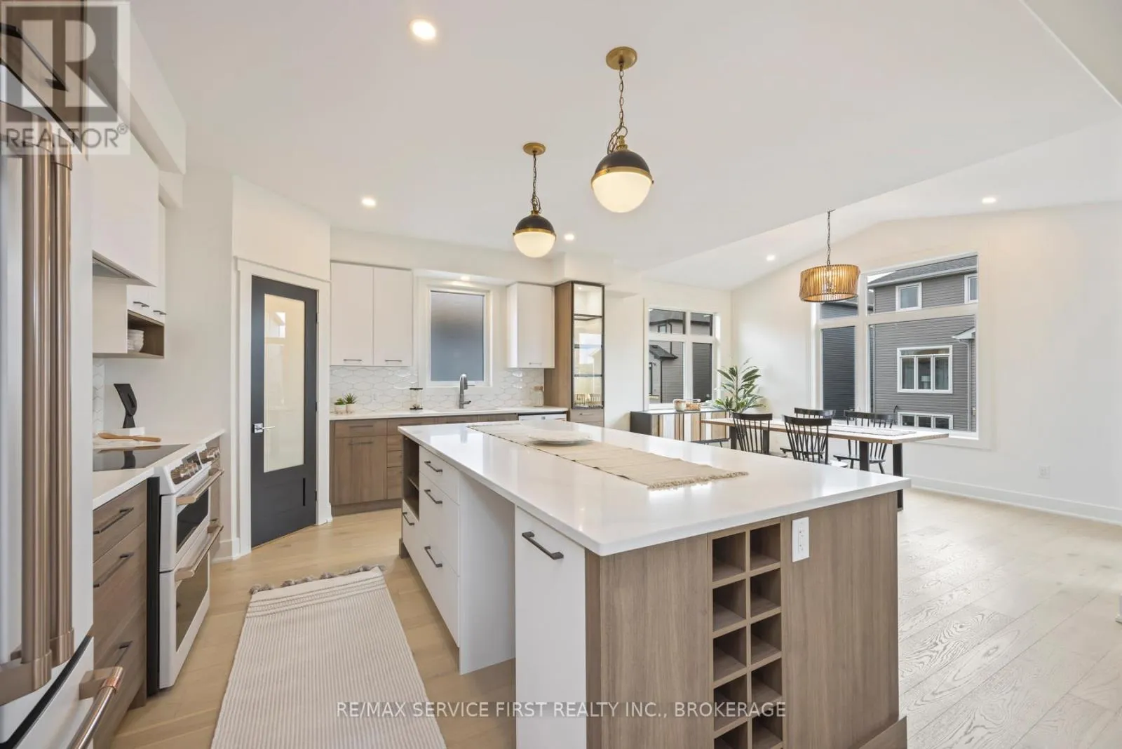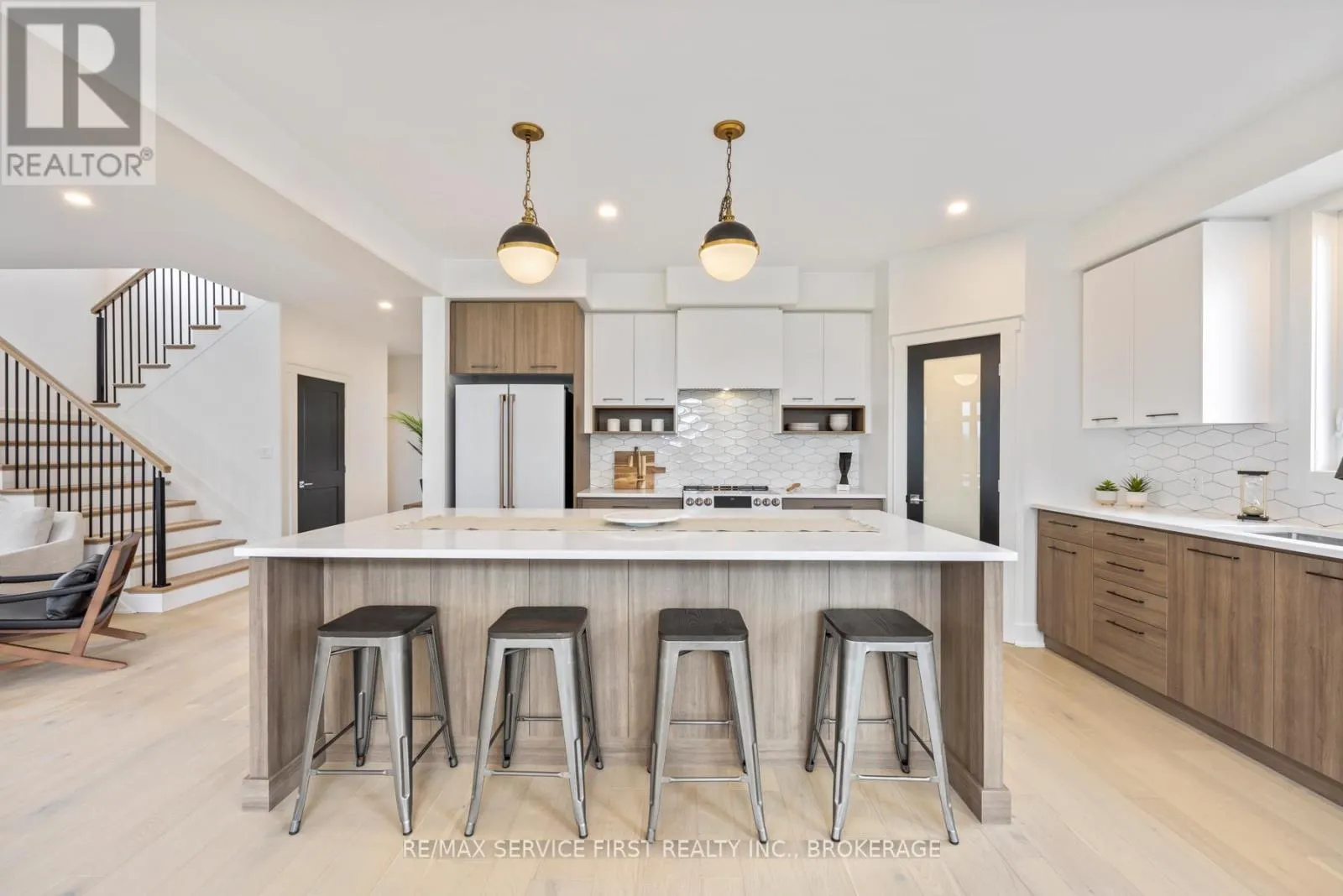 Cross Streets: Creekside Valley Drive and Monica Drive. ** Directions: Princess Street to Creekside Valley Drive to Monica Drive. Now on the Market for the First Time! Welcome to this exceptional builder's model home. Perfectly positioned on a spacious corner lot overlooking greenspace, & nestled on what many consider the most desirable street in the subdivision, this home is a true standout. Every inch of this property has been upgraded with thoughtful design & premium finishes. From the moment you step inside, you'll notice the warmth of engineered hardwood & tile flooring flowing thru-out the main level. The layout is both functional & flexible, offering a formal living room that easily transforms into a home office or formal dining space depending on your needs. At the heart of the home is an expansive great room with a cozy gas fireplace, seamlessly connected to the stunning kitchen. Designed for both entertaining & everyday living, the kitchen boasts an 8-foot island, walk-in pantry, custom display cabinets all overlooking a bright dining area wrapped in windows. A patio door leads you to a wraparound covered deck-perfect for enjoying morning coffee or evening drinks while taking in the view of the greenspace to the east. The main floor also features a practical mudroom/laundry area, complete with a walk-in closet. A stylish two-piece bath completes the main floor. Upstairs, the primary suite is a peaceful retreat, offering a spacious walk-in closet with built-in organizers and a luxurious five-piece ensuite with double sinks, an oversized vanity, freestanding tub, and a custom glass shower built for two. Three additional generously sized bedrooms & a well-appointed four-piece bath make the upper level complete. The lower level is an open canvas with over 9-foot ceilings & a bathroom rough-in-ready for your future vision, whether it's a home gym, media room, or in-law suite. Outside, the professionally landscaped yard includes a lawn sprinkler system, and the premium corner lot offers both privacy and curb appeal. This one-of-a-kind home delivers comfort, style, & location all in one. (id:27476)