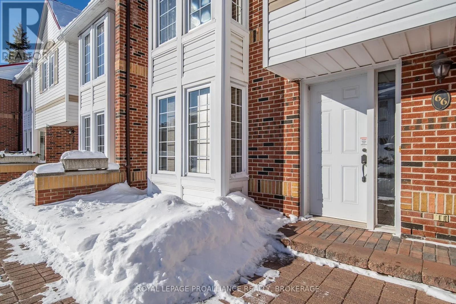 Cross Streets: King Street East. ** Directions: Place d'Armes. Welcome to Unit 66 at 1 Place d'Armes, a beautifully maintained 3-bedroom, 4-bathroomtownhome located in the sought-after Frontenac Village. This well-cared-for home features hardwood flooring throughout, including a hardwood staircase, offering a timeless and cohesive feel across all levels. Enjoy peace of mind with a newer furnace and air conditioning system. The west-facing yard provides lovely afternoon sun and a partial water view, creating a bright and welcoming outdoor space. Two convenient parking spaces are located directly outside the basement door with access to the underground parking garage. Residents of Frontenac Village enjoy excellent amenities including an outdoor pool, a separate games room, and a sauna. Ideally situated in the heart of downtown Kingston, this location offers easy access to public transit, the Slush Puppie Place, and an abundance of nearby restaurants, shops, and services. This is a great opportunity to enjoy low-maintenance living in one of downtown's most desirable communities. (id:27476)