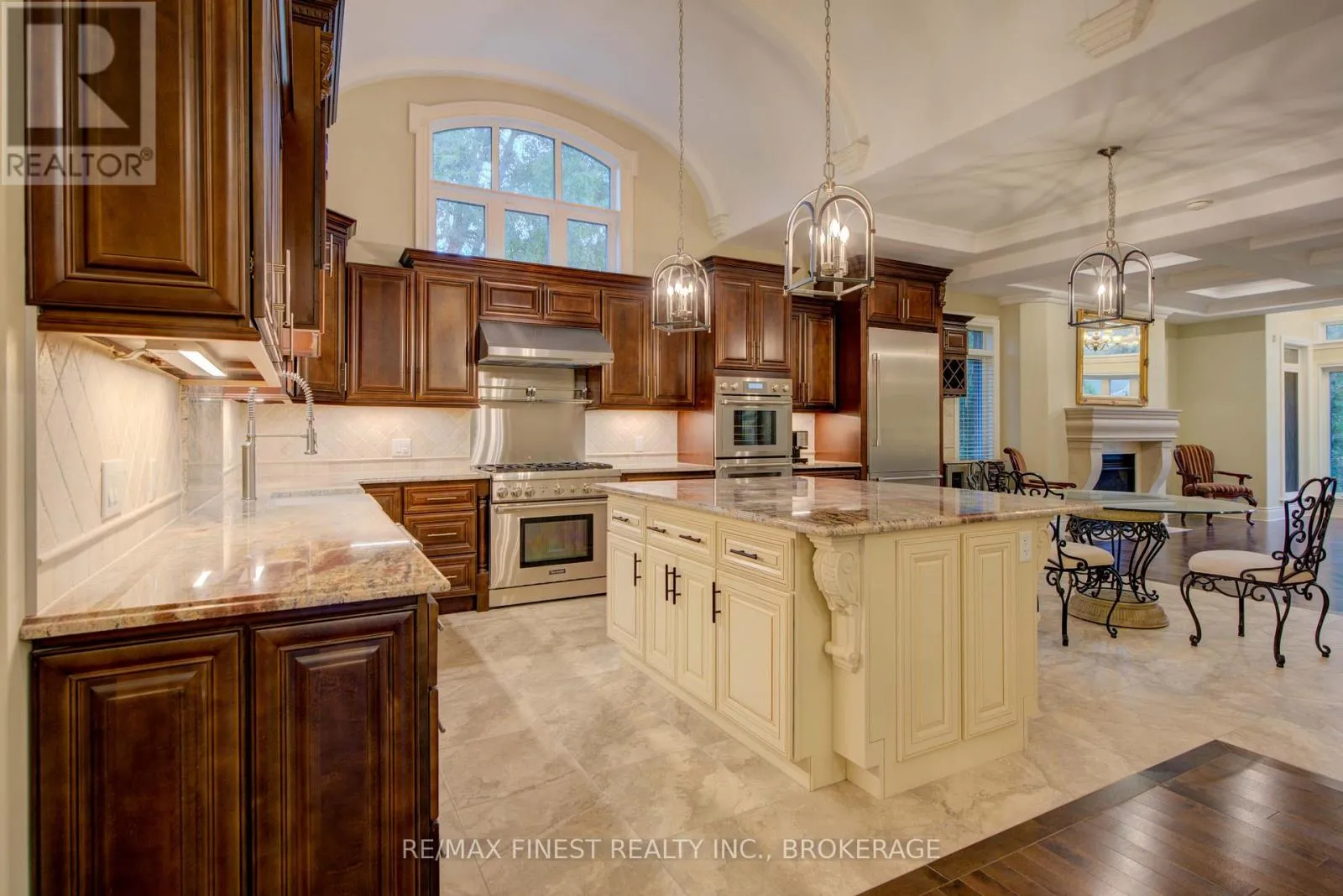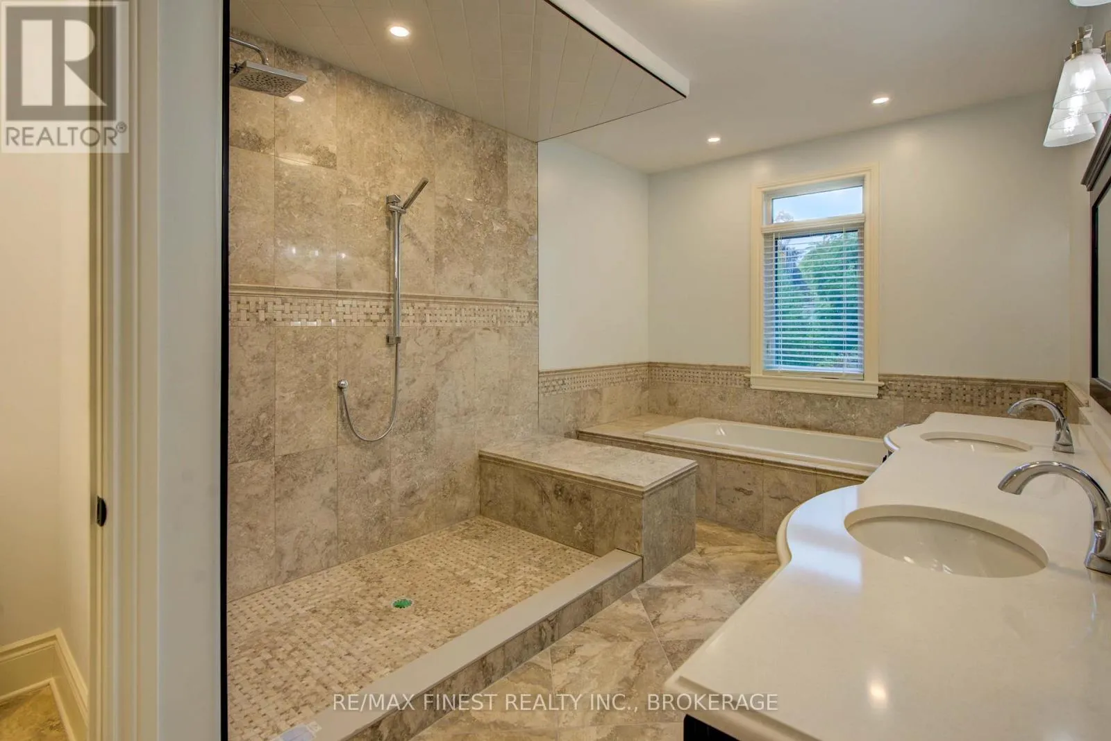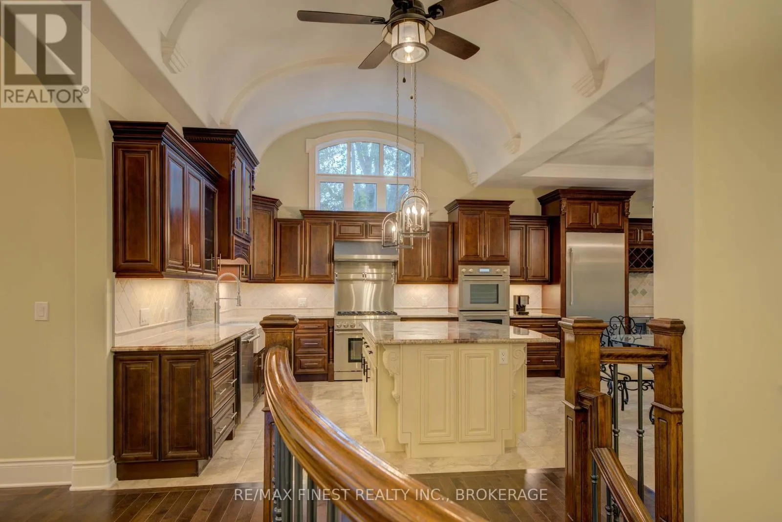 Cross Streets: Front Road. ** Directions: Front Road to Crerar. Quality is far beyond what would normally be offered in one of-a-kind 4 bedroom all stone/brick bungalow in Reddenale, with view of Crerar Park and Lake Ontario. Walking distance to Sinclair School, plaza, recreation centre, and many other amenities. Foyer with barreled ceiling, stone flooring and hardwood accents. Formal dining room with vaulted ceiling, hardwood flooring, coffered ceiling and other special treatments. Custom maple kitchen with centre island and granite countertops Thermador appliances 36"fridge, Dual gas stove (electric and gas) Dual oven (steam and electric) Custom range hood, Wine fridge, Dishwasher all appliances are state of the art and high end. Main floor family room with gas fireplace, Herringbone hardwood enlayed, |coffered ceiling, pot lights access to rear yard. Master bedroom with double door entry, hardwood floors, curved rear wall, pot lights, huge walk in closet with custom centre island and cabinets. Ensuite bath with double vanity, maple cabinets, stone vanity top. 7 foot glass shower, private seperate toilet area. Curved staircase leading to 27x25 foot recreation room with fireplace, pot lights, hardwood flooring, coffered ceiling truly the best of the beat. Seperate office withstone accent wall, double door entry, oak flooring, unique closet area for storage/shelving. Two more oversized bedrooms with oak flooring and pot lights. Lower bath with heated floors, custom ceramic work, granite countertop, and soaker tub. Oversized furnace and storage area. General 200 amp service two stage high effiency furnace air exchanger owned HWT garage insulated and drywalled Over 4800sq ft of craftmanship. Please note supplement document to really appreciate the quality of this home. (id:27476)