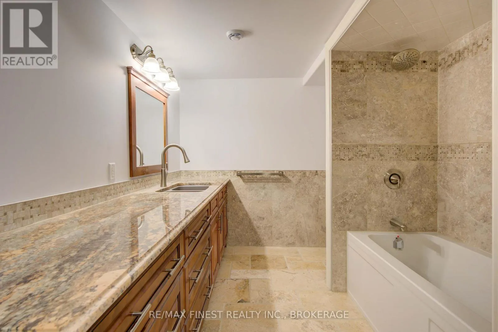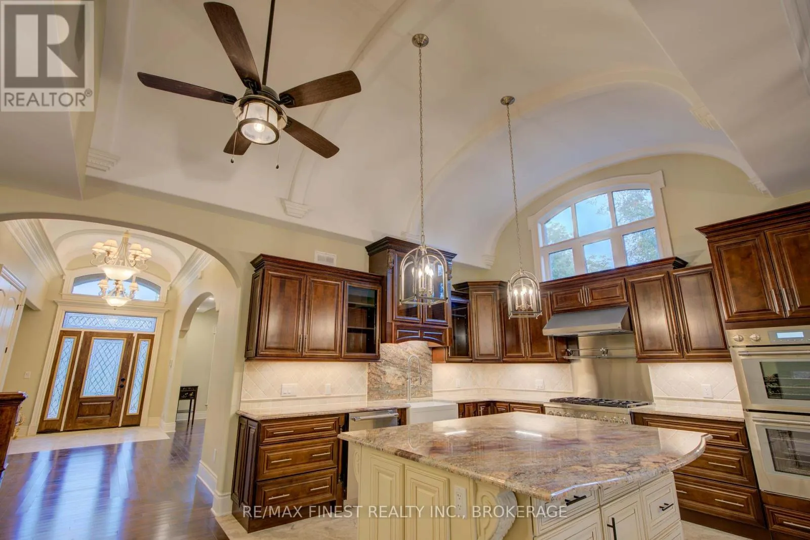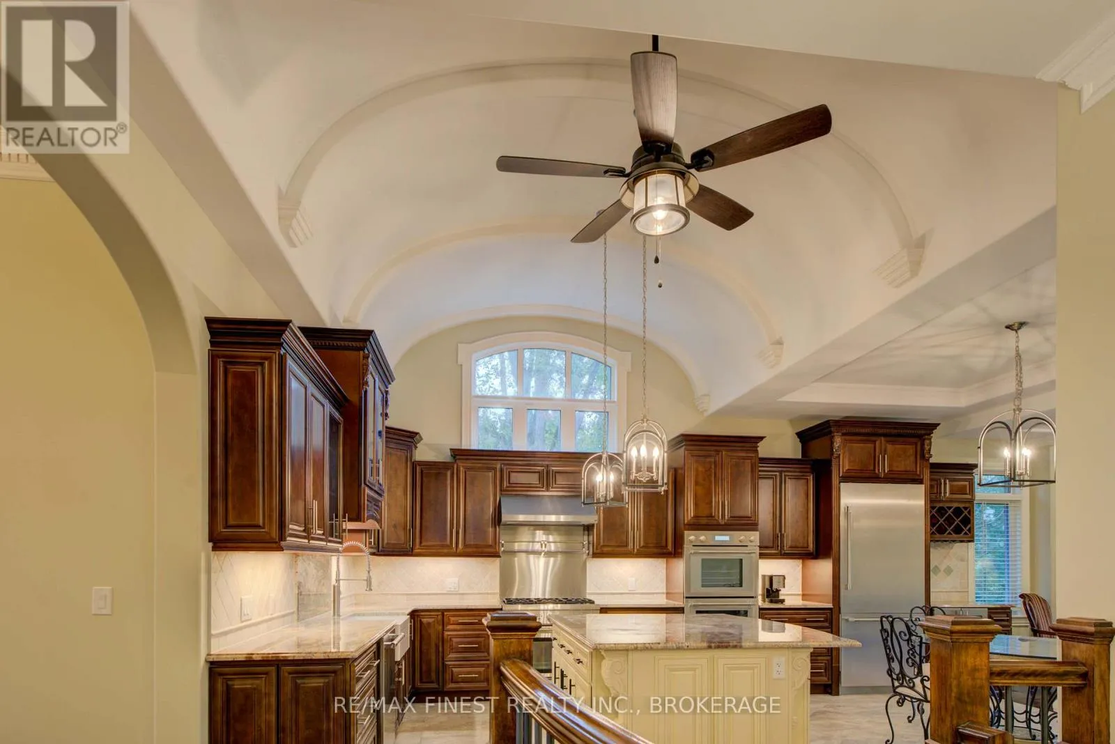 Cross Streets: Front Road. ** Directions: Front Road to Crerar. Quality is far beyond what would normally be offered in one of-a-kind 4 bedroom all stone/brick bungalow in Reddenale, with view of Crerar Park and Lake Ontario. Walking distance to Sinclair School, plaza, recreation centre, and many other amenities. Foyer with barreled ceiling, stone flooring and hardwood accents. Formal dining room with vaulted ceiling, hardwood flooring, coffered ceiling and other special treatments. Custom maple kitchen with centre island and granite countertops Thermador appliances 36"fridge, Dual gas stove (electric and gas) Dual oven (steam and electric) Custom range hood, Wine fridge, Dishwasher all appliances are state of the art and high end. Main floor family room with gas fireplace, Herringbone hardwood enlayed, |coffered ceiling, pot lights access to rear yard. Master bedroom with double door entry, hardwood floors, curved rear wall, pot lights, huge walk in closet with custom centre island and cabinets. Ensuite bath with double vanity, maple cabinets, stone vanity top. 7 foot glass shower, private seperate toilet area. Curved staircase leading to 27x25 foot recreation room with fireplace, pot lights, hardwood flooring, coffered ceiling truly the best of the beat. Seperate office withstone accent wall, double door entry, oak flooring, unique closet area for storage/shelving. Two more oversized bedrooms with oak flooring and pot lights. Lower bath with heated floors, custom ceramic work, granite countertop, and soaker tub. Oversized furnace and storage area. General 200 amp service two stage high effiency furnace air exchanger owned HWT garage insulated and drywalled Over 4800sq ft of craftmanship. Please note supplement document to really appreciate the quality of this home. (id:27476)