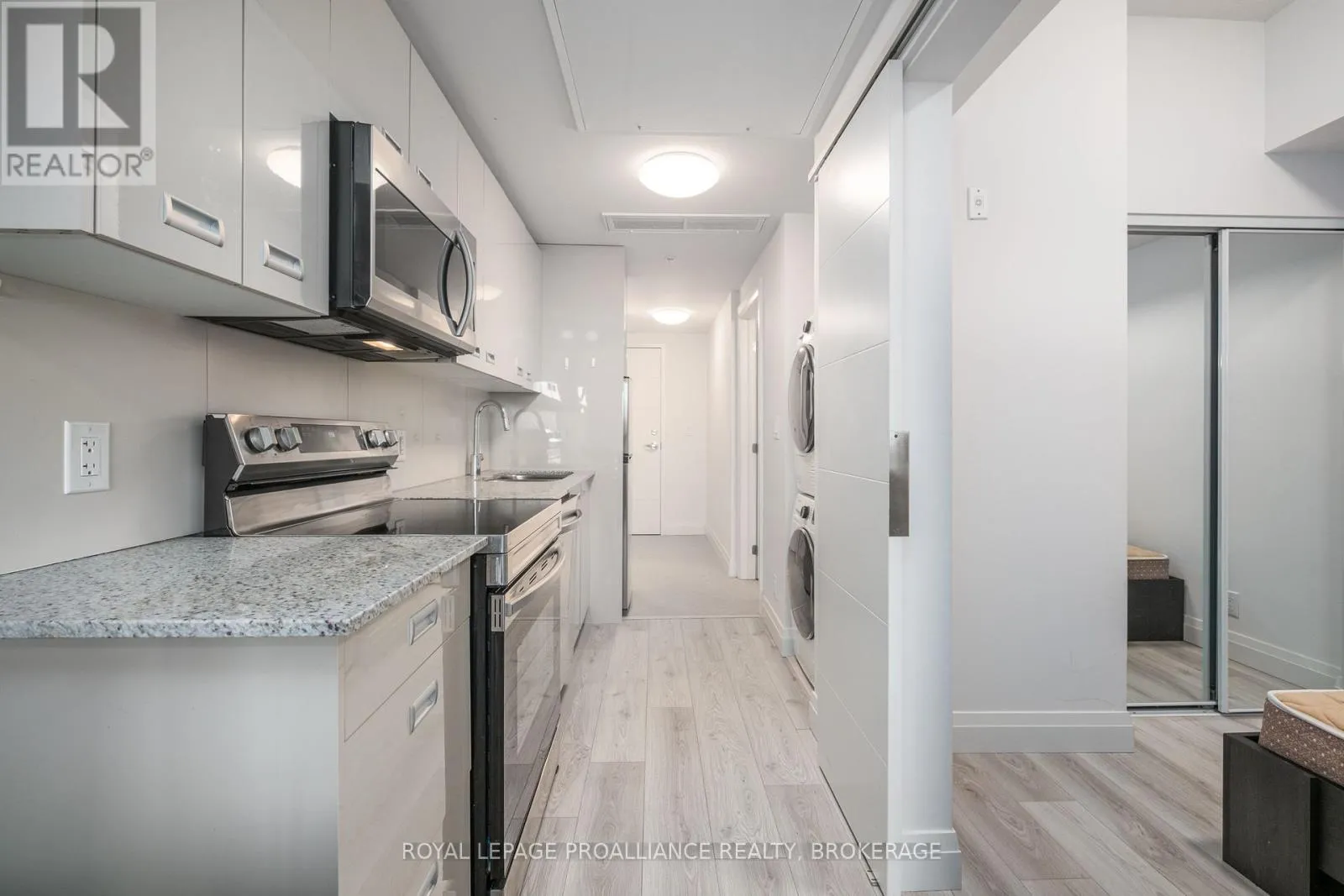 Cross Streets: Princess Street & Victoria Street. ** Directions: EAST ON PRINCESS ST, BETWEEN VICTORIA ST & NELSON ST. Turn-key 1 bedroom, 1 bath condo unit located in Kingston's Williamsville neighbourhood right in the heart of Downtown. This furnished unit features a spacious foyer, 4pc bath, in-suite laundry, a bright kitchen with Stainless Steel appliances and a well-sized bedroom. Condo amenities include a fitness room and a rooftop garden/deck. This unit includes a parking spot and a locker. Perfect for a First-Time Home Buyer or an investor alike. Steps to public transportation and quick access to Queens University, St. Lawrence College, hospitals and all downtown amenities! Vacant possession possible! (id:27476)