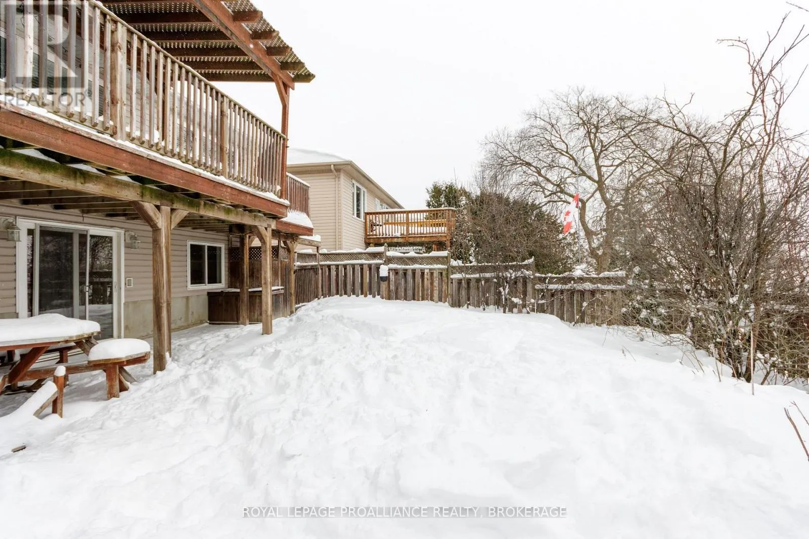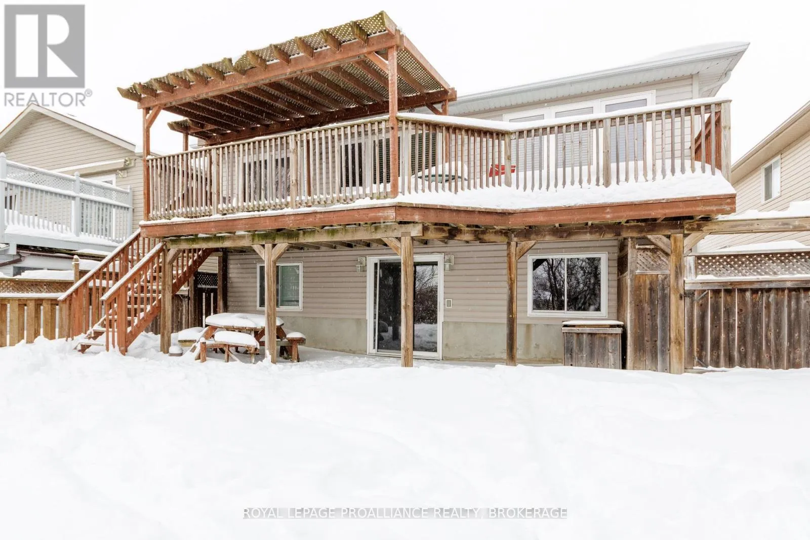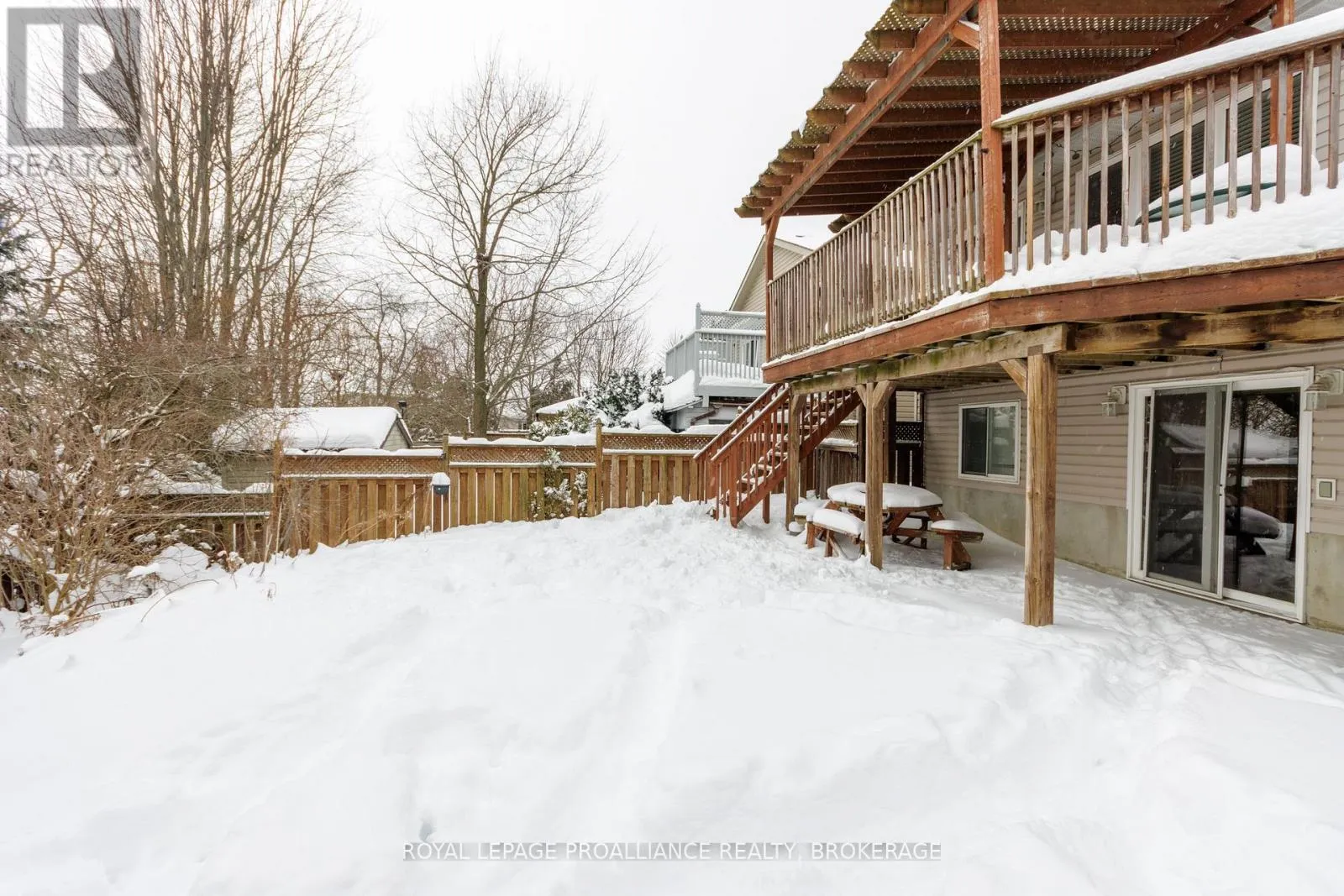 Cross Streets: Melrose St. ** Directions: North off Bath Rd. onto Tanner Dr. Past Melrose St. Walk out bungalows are a rare find ! The main floor has a bright open concept kitchen (with ceramic flooring) open to a dinette and a rear family room (with hardwood flooring) with lots of large windows and a patio door opening out to a private elevated rear deck with easterly views. Enjoy morning sunlight! Both the master bedroom and main floor 2nd bedroom have ensuite baths. The lower level has full height, is completely finished including a kitchenette sink and is currently set up as a music (piano) school. The generous rec room's size shows off the versatility with the patio door walk out to a fully fenced private back yard There is also a 3rd bedroom and full bath down. The attached garage has indoor access into the front foyer. Vacant and easy to show! (id:27476)