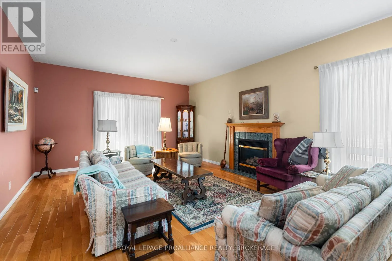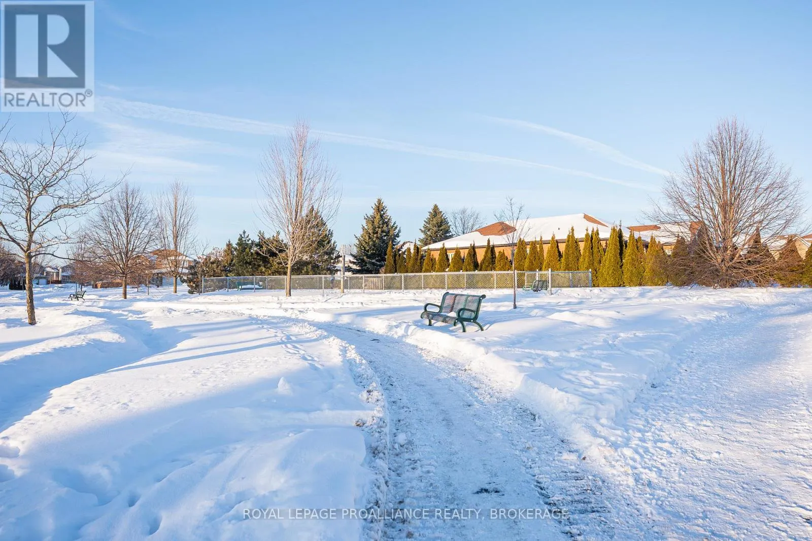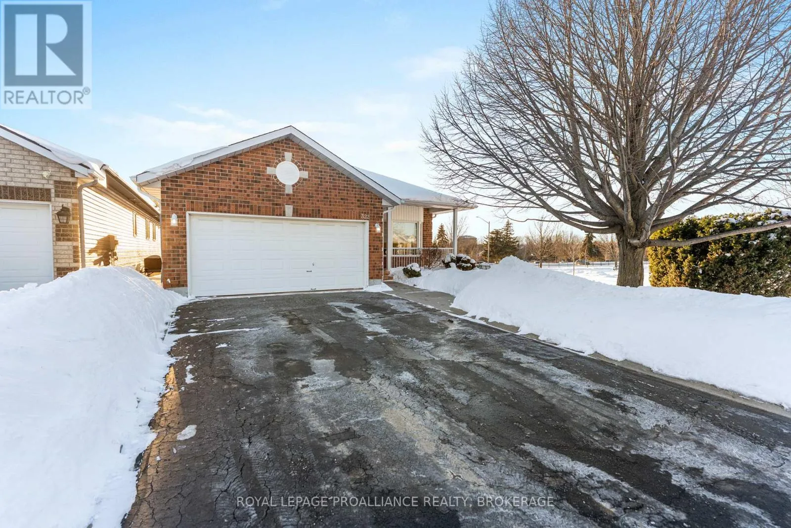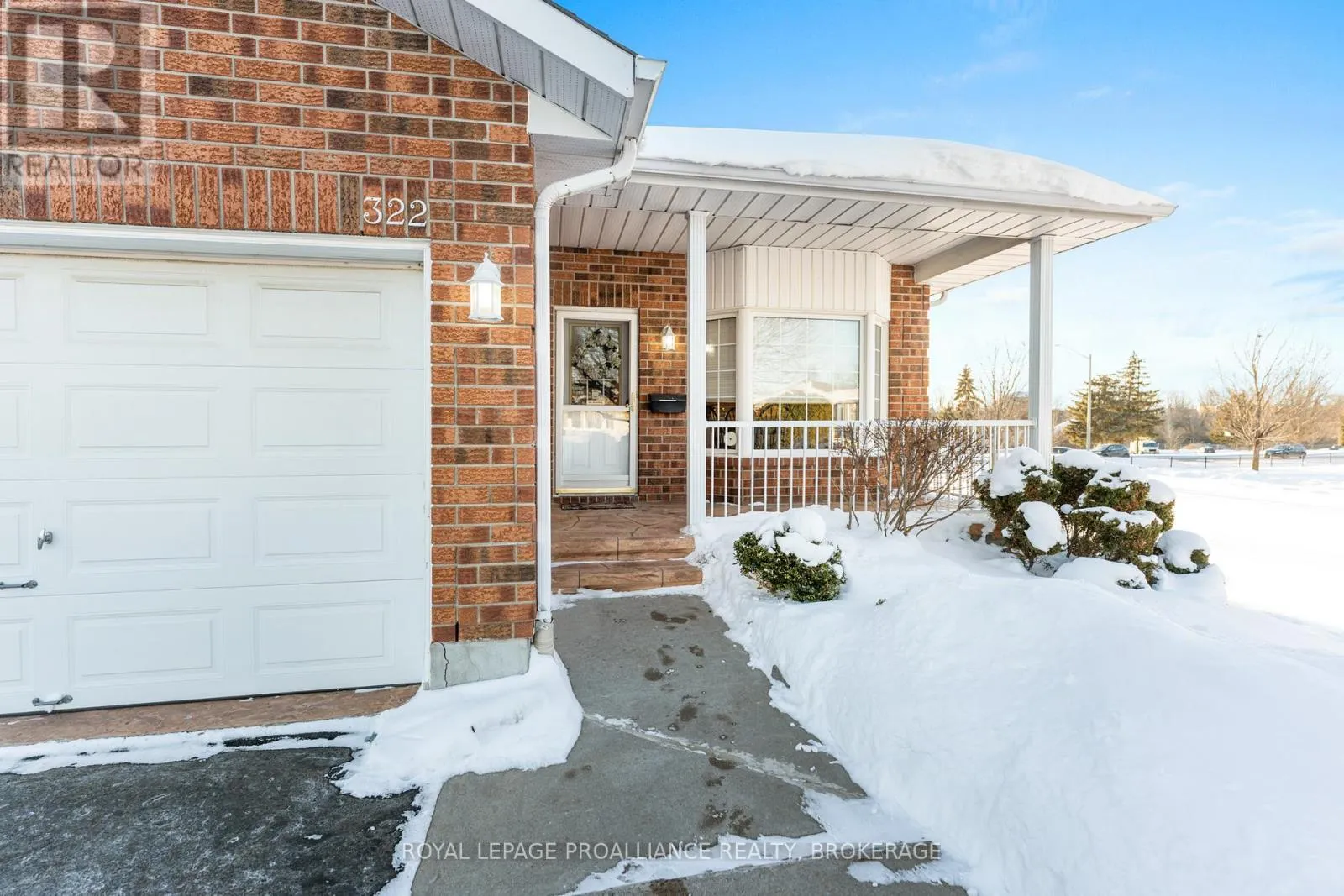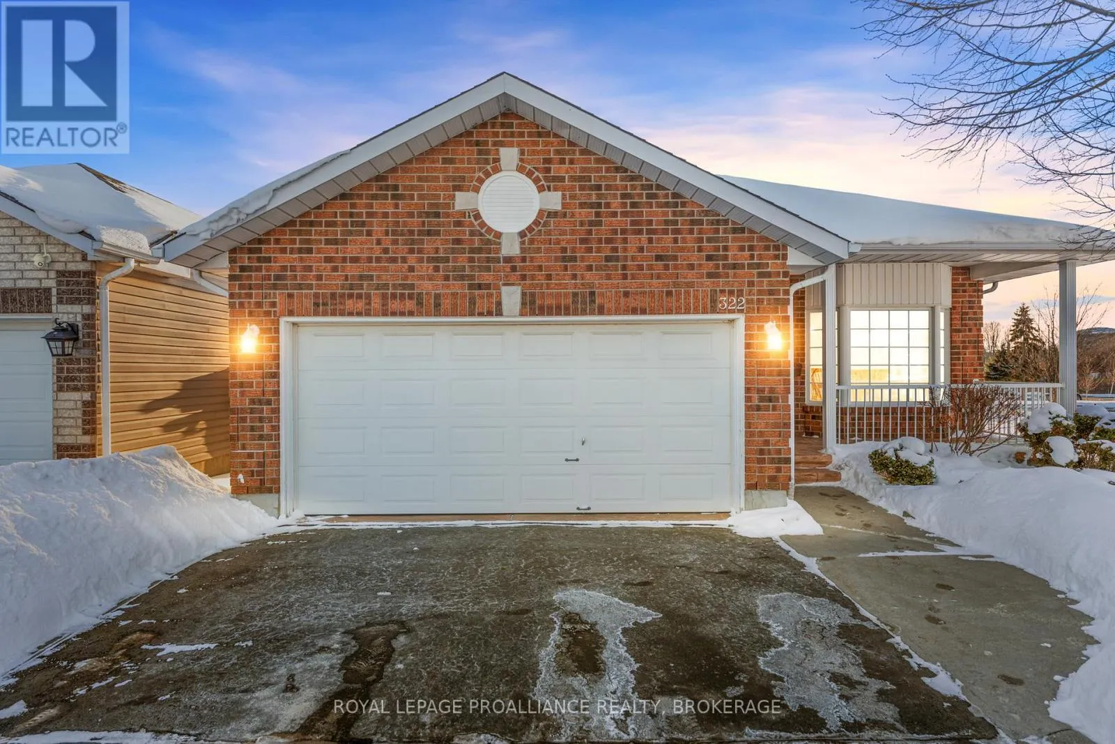 Cross Streets: Emerald and Crossfield. ** Directions: Centennial Drive to Crossfield Avenue to Emerald Street. Welcome to 322 Emerald Street in Kingston's sought-after west end adult lifestyle community.This solid brick bungalow offers quality craftsmanship and thoughtful upgrades throughout, featuring bright windows, high ceilings, gleaming hardwood floors, and custom finishes.The spacious main level presents a well-designed floor plan with formal living and dining areas, a well-appointed kitchen with breakfast nook, and the convenience of main floor laundry. The generous primary bedroom includes a full ensuite and oversized walk-in closet. A second bedroom and full main bathroom complete the main level.The finished lower level adds exceptional additional living space, including a large recreation room, third bedroom, updated 4-piece bathroom, workshop, and ample storage.Enjoy the beautifully landscaped rear yard with mature trees and gardens, best appreciated from the covered deck. The home sits on a generous lot overlooking a playground and dog park, and is conveniently located close to walking trails and amenities.Residents enjoy access to a vibrant clubhouse (annual fee $360), enhancing the lifestyle this community offers. (id:27476)