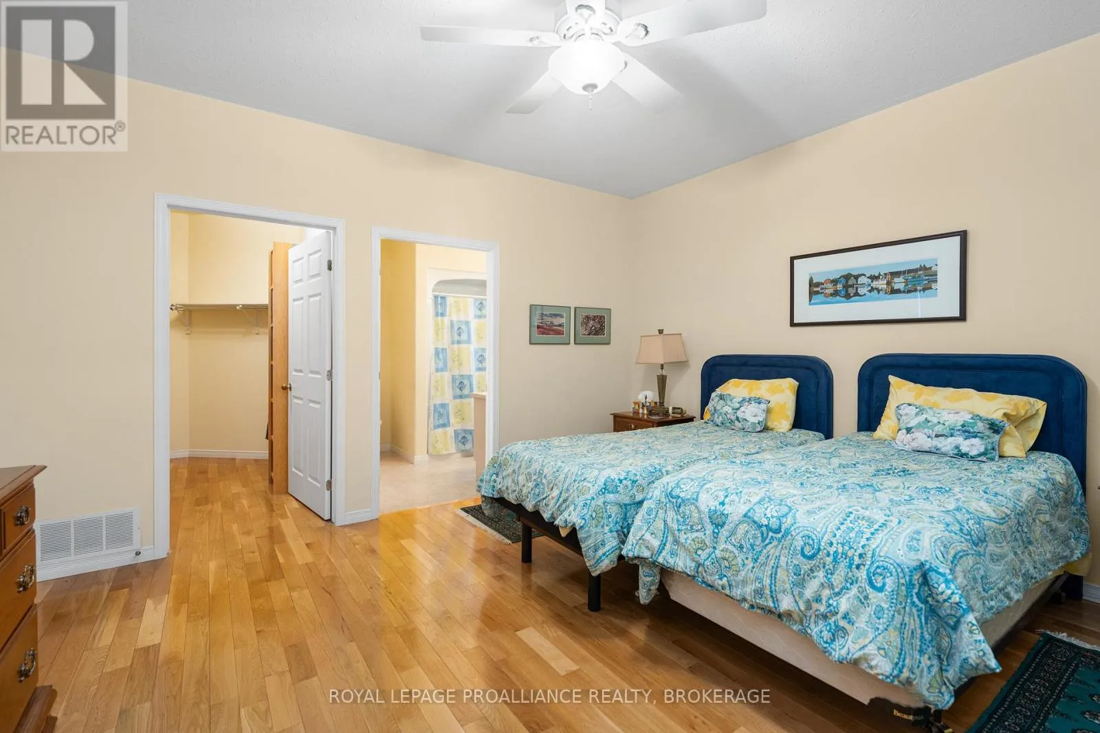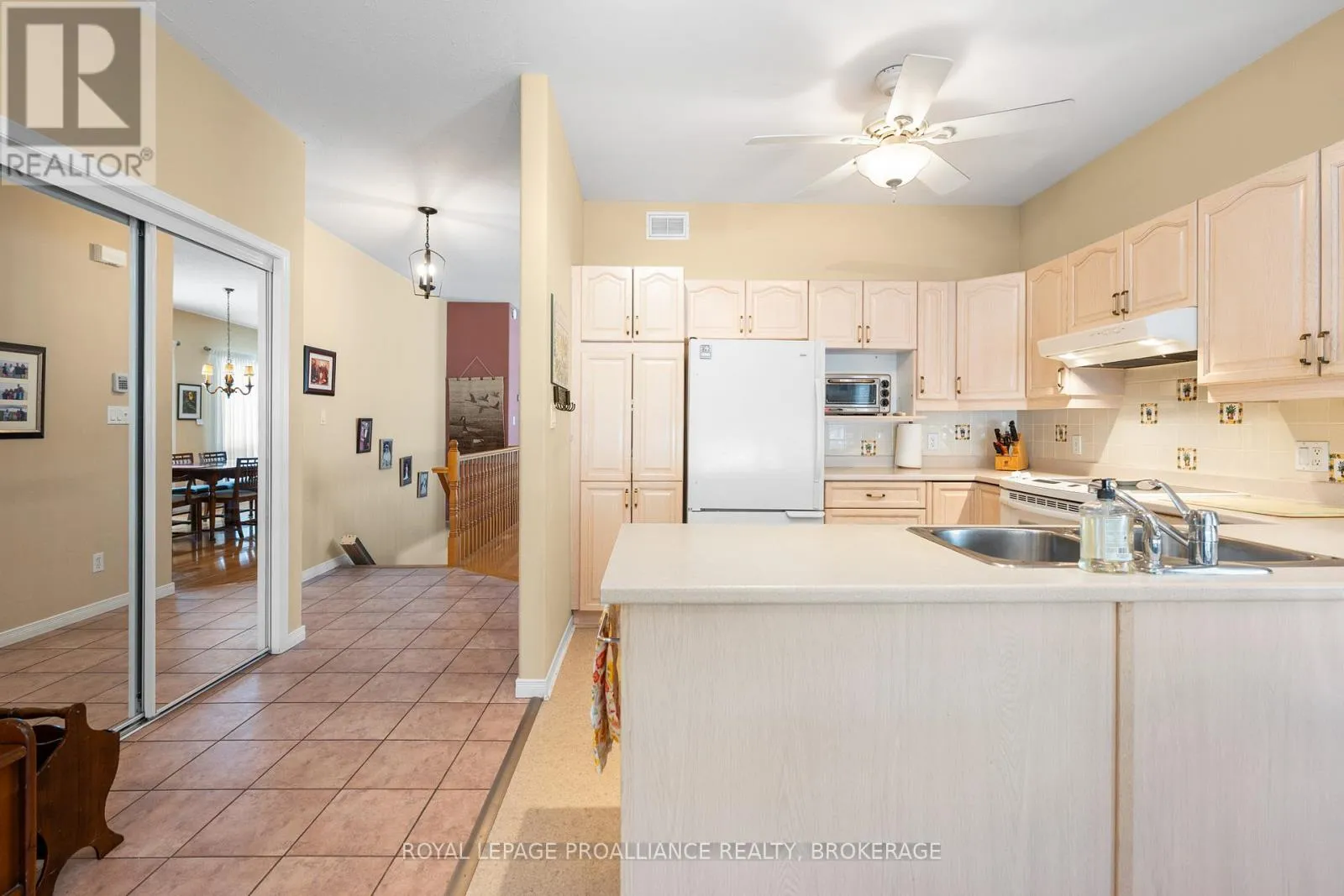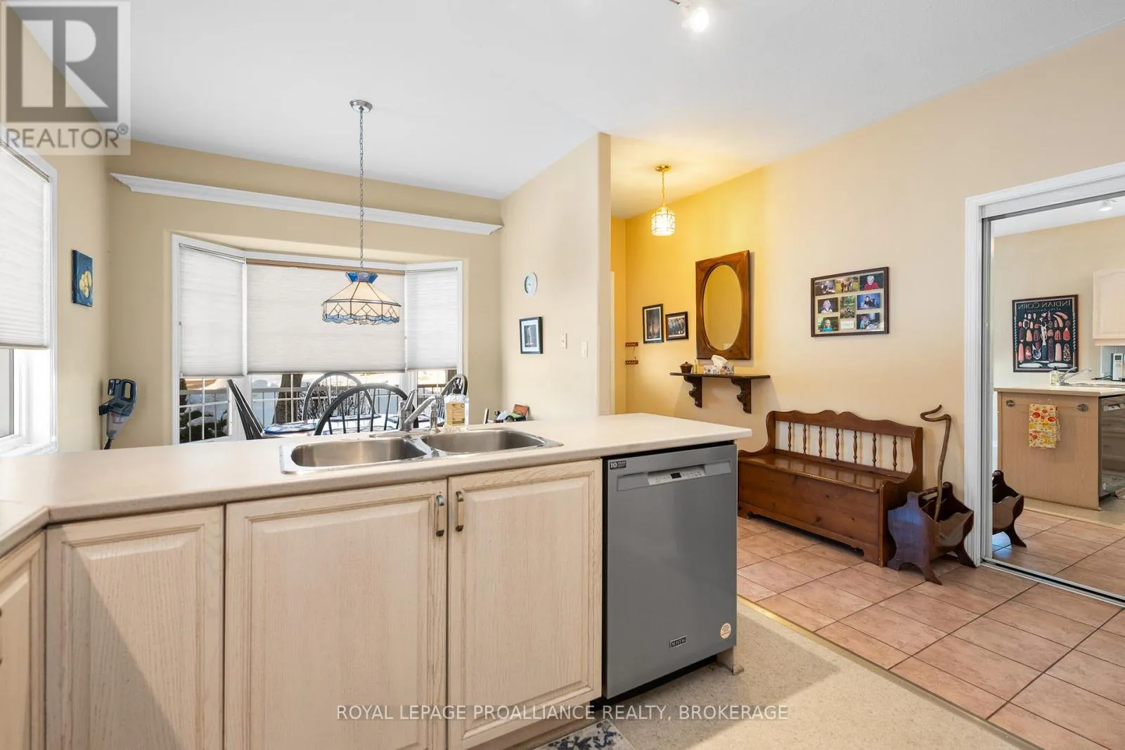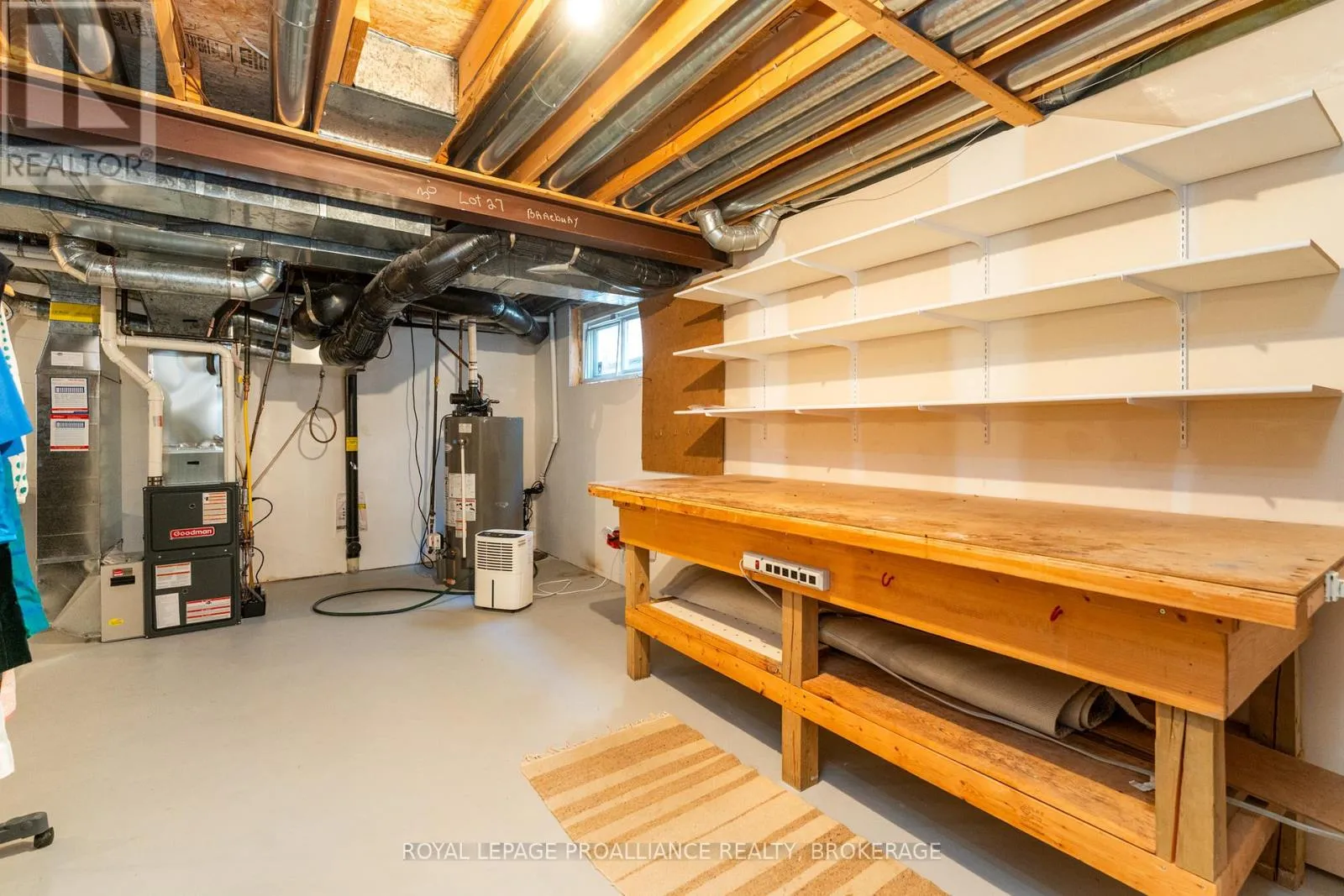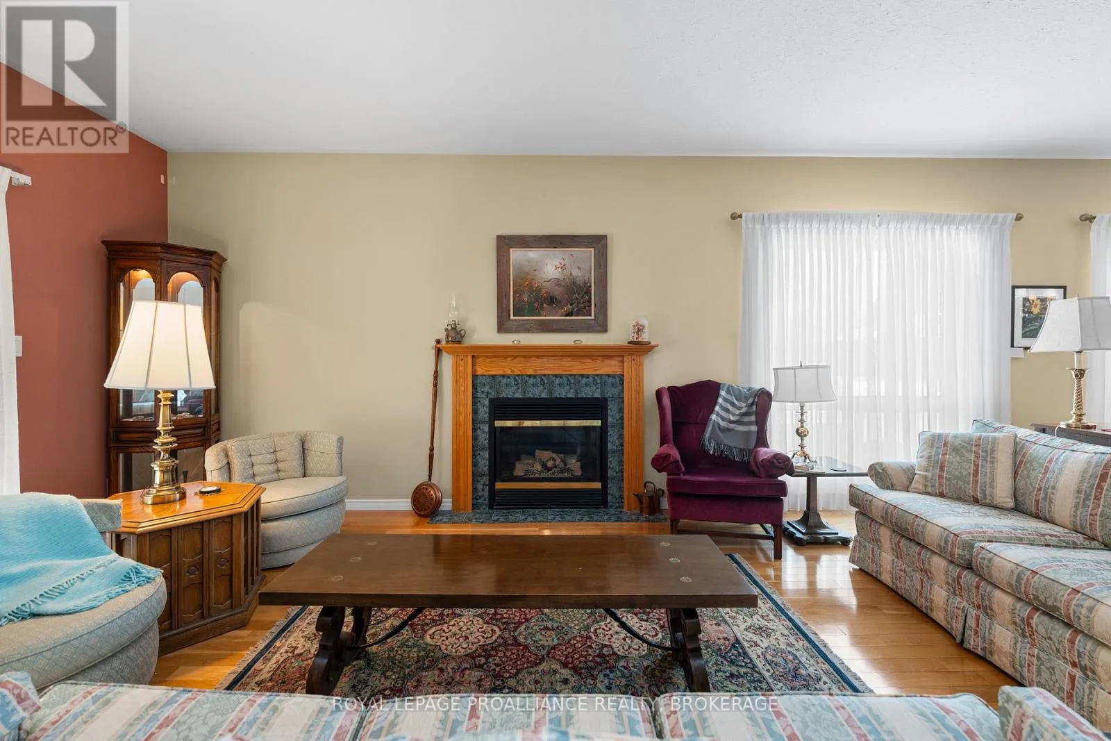 Cross Streets: Emerald and Crossfield. ** Directions: Centennial Drive to Crossfield Avenue to Emerald Street. Welcome to 322 Emerald Street in Kingston's sought-after west end adult lifestyle community.This solid brick bungalow offers quality craftsmanship and thoughtful upgrades throughout, featuring bright windows, high ceilings, gleaming hardwood floors, and custom finishes.The spacious main level presents a well-designed floor plan with formal living and dining areas, a well-appointed kitchen with breakfast nook, and the convenience of main floor laundry. The generous primary bedroom includes a full ensuite and oversized walk-in closet. A second bedroom and full main bathroom complete the main level.The finished lower level adds exceptional additional living space, including a large recreation room, third bedroom, updated 4-piece bathroom, workshop, and ample storage.Enjoy the beautifully landscaped rear yard with mature trees and gardens, best appreciated from the covered deck. The home sits on a generous lot overlooking a playground and dog park, and is conveniently located close to walking trails and amenities.Residents enjoy access to a vibrant clubhouse (annual fee $360), enhancing the lifestyle this community offers. (id:27476)