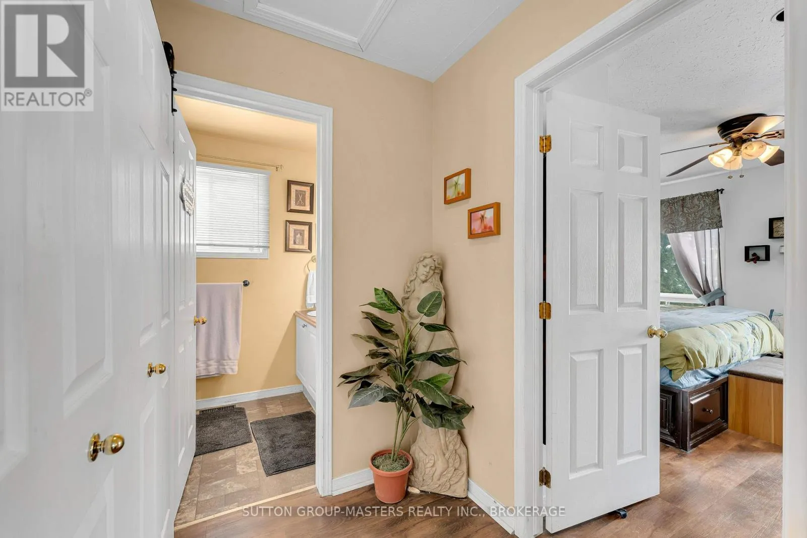 Cross Streets: Vista Drive and Roosevelt Drive. ** Directions: Bath Road to Vista Drive to Roosevelt Drive. Situated in a quiet west end location, this charming Bungalow is loaded with updates. Plus the attached 1 1/2 garage and parking for 5 cars is ideal. From your covered front entry, step into your spacious foyer, which then gives access to your open M/L Floorplan. Recently updated kitchen with quartz counters is centrally located between your cozy breakfast area on one side, or your formal dining area on the other. Double sided fireplace accents both the Living room as well as the Primary bedroom, sure to warm both spaces on a cold winter night. If you like natural light, you will love the M/L sun room that gives full views of the private back yard, overlooking city park land with no direct rear neighbors. Two spacious bedrooms, 5pc bath and Laundry complete the main level. L/L floorplan is all Bonus, offering a family size rec-room, 3rd bedroom with a walk in closet, 3pc bath, utility room and storage area. If you enjoy spending time in your back yard, wait until you see the covered rear porch, which allows for a year around BBQ, then step down to your private 10'x14' Pergola, on a 12'x15' composite deck and 2 person SpaBerry hot tub ! Fully fenced, Stunning landscaping and garden shed are the perfect finishing touches to this back yard oasis ! Just some of the updates in last 5 years include the shingles, appliances, kitchen cabinets, quartz counters, deck, pergola & hot tub ! (id:27476)
