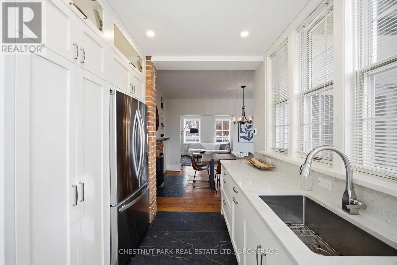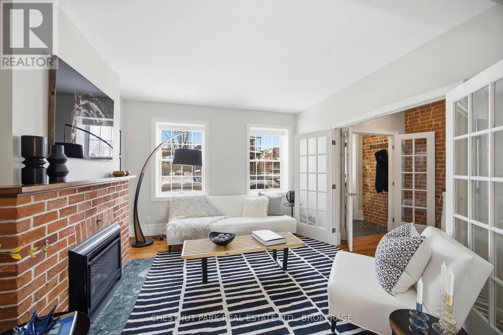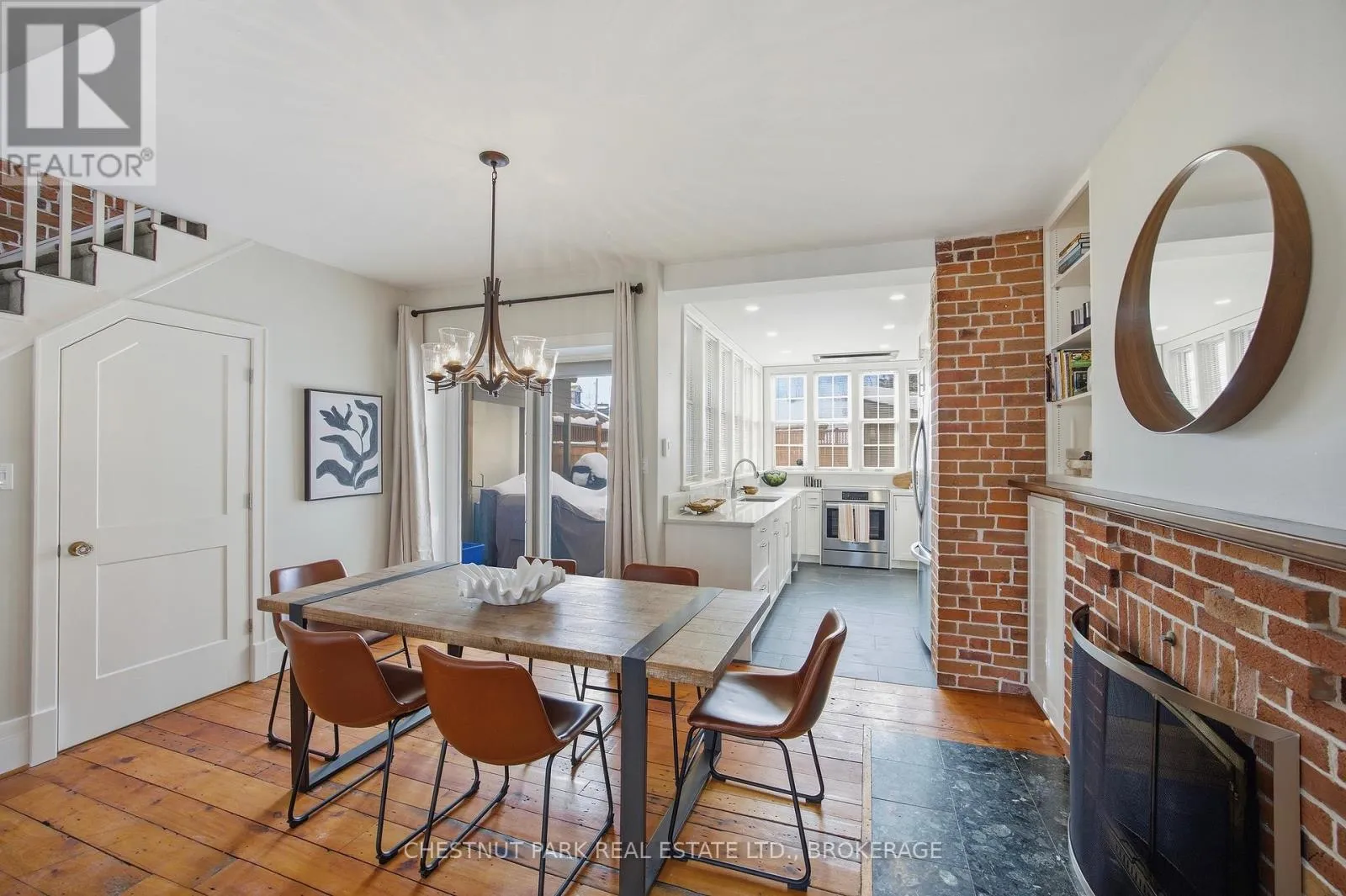 Cross Streets: Johnson and Bagot. ** Directions: From Johnson Street, turn right onto Sydenham Street, Turn left On William Street. Step into the charm of downtown Kingston living with this beautifully restored historic brick end-unit townhouse, where timeless character meets modern comfort. Completely renovated and truly move-in ready, this stunning home offers 1,763SF across three finished levels, filled with natural light, warmth, and thoughtful upgrades throughout. Inside, you'll love the rich character of exposed brick interiors, paired perfectly with stylish contemporary finishes. The cozy living room features a gas fireplace (2024), creating the perfect space to relax or entertain. The heart of the home is the bright, fully renovated kitchen (2024) with new appliances and heated floors, flowing seamlessly into the dining area with patio doors leading to a private backyard patio - ideal for summer dinners and morning coffee.The second floor offers two bedrooms and a full bathroom. The second bedroom features a rare bonus: an attached office/studio surrounded by windows, perfect for working from home, creating, or studying. The third floor is a showstopper, featuring a large primary bedroom suite complete with a walk-in closet, full ensuite bathroom, and patio doors opening to your own balcony retreat.With three bedrooms, two full bathrooms with heated floors, and a newly added main floor powder room (2025), this home delivers both space and functionality. Additional updates include a tankless water heater (2023), a new washer and dryer (2025), and a backyard shed (2021) for extra storage.Outside, enjoy beautifully updated curb appeal with front and side landscaping completed in 2024, plus the convenience of backyard parking with interlocking brick.All of this is located just steps to downtown Kingston, with easy walking access to shopping, restaurants, the waterfront, Marina, Queen's University, schools and hospitals. A rare opportunity to own a one-of-a-kind historic home in one of Kingston's most sought-after locations. This is downtown living at its finest. (id:27476)