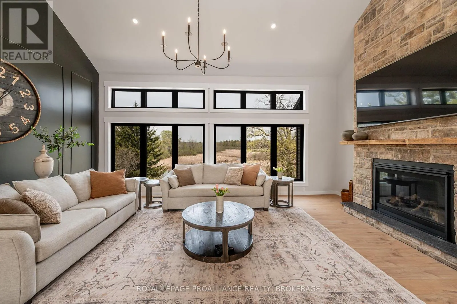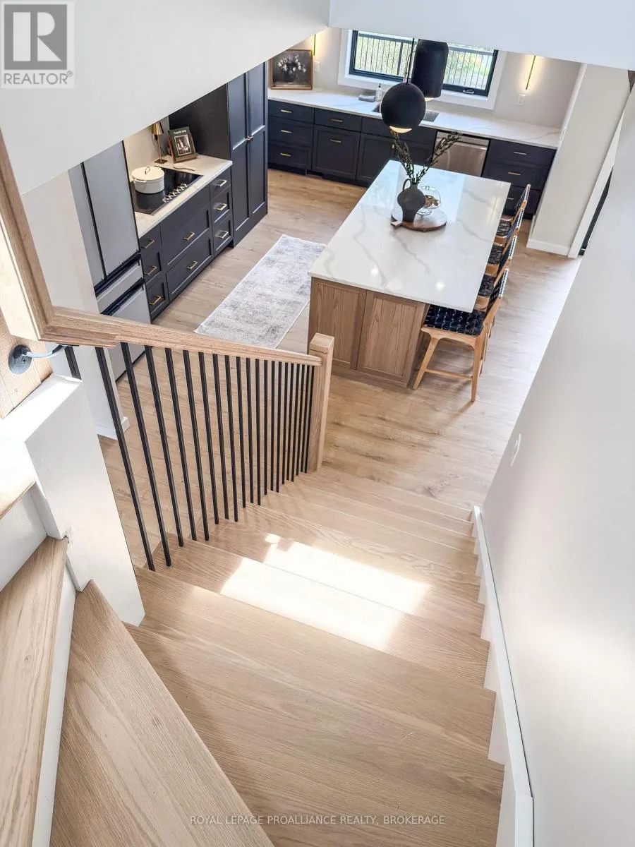 Cross Streets: On Highway 2 East (#2924) just past Joyceville Road and Howe Island Ferry Road. ** Directions: Highway 2 East (#2924). Discover this extraordinary 4-bedroom, 3-bathroom residence, beautifully renovated and set on over 30 acres of breathtaking land along Grass Creek. A brand new septic system installed in 2025 adds peace of mind to this already exceptional property. Step inside to soaring vaulted ceilings and an open concept layout filled with natural light. The stunning living room welcomes you with a cozy propane fireplace and rustic posts that seamlessly transition into a grand dining area-spacious enough to host gatherings of 10 or more, creating the perfect setting for lively conversations and unforgettable moments. The remarkable kitchen is a true culinary haven, featuring two toned cabinetry, gleaming white countertops, built in appliances, and an impressive pantry complete with double wall ovens and a wine fridge. This thoughtfully designed space inspires creativity and effortless entertaining. The main floor continues with a convenient laundry room, two generous bedrooms with vaulted ceilings, and a luxurious 4 piece bathroom showcasing a glass shower and deep soaker tub for ultimate relaxation. The second floor is dedicated entirely to the primary suite-a private retreat offering a bright bedroom, a spacious walk in closet, and an exquisite 4 piece ensuite with double sinks and a rejuvenating glass shower. The lower level reveals an inviting family room with a fireplace and a wall of windows framing enchanting views of the creek. Two additional spacious bedrooms, a 3 piece bathroom, and a dedicated gym space complete this versatile level, supporting a lifestyle of comfort and wellness. Step outside to an expansive deck overlooking the serene waterfront-perfect for entertaining, unwinding, or simply soaking in the beauty of nature. With Grass Creek Park just minutes away and downtown Kingston only a 10 minute drive, convenience and tranquility come together seamlessly. This property is a rare treasure-luxury, privacy, and natural beauty all in one extraordinary package. (id:27476)