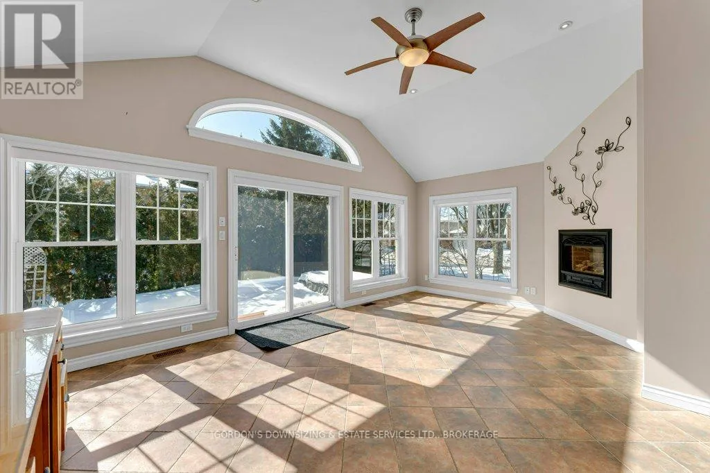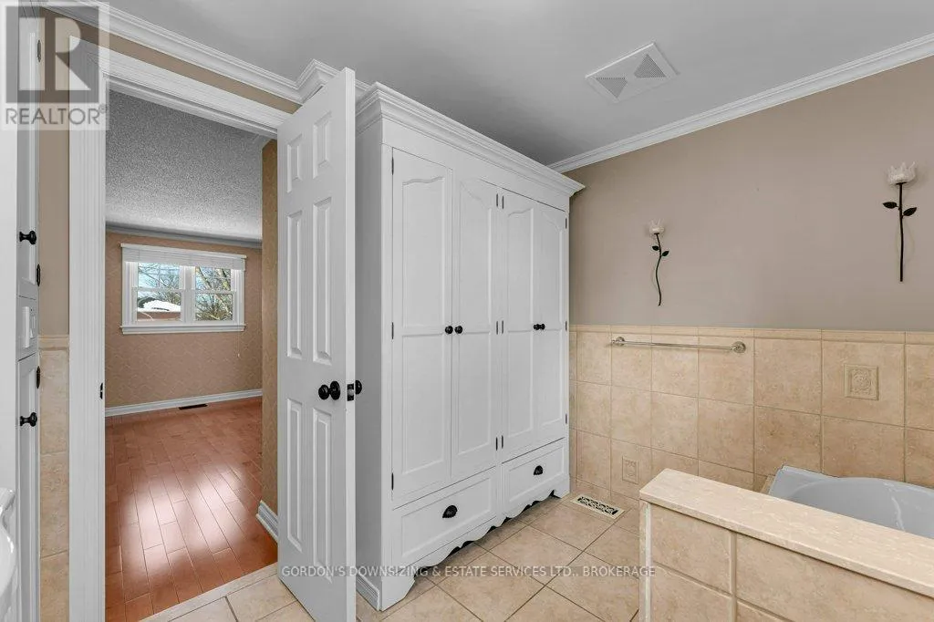 Cross Streets: Grenadier Drive. ** Directions: Hwy 15 to Gore Rd to Grenadier Dr. Welcome to 1 Buckingham Court, a beautifully maintained two-storey brick residence with attached garage in a highly desirable east-end neighbourhood. This exceptional 4-bedroom, 4 -bathroom home blends timeless charm with thoughtful upgrades, delivering comfort, style, and everyday functionality. From the moment you arrive, the home's welcoming presence and curb appeal sets the tone. Offering approximately 1,765 sq. ft. of well-designed living space, the main level features hardwood flooring, a tiled entryway, and a bright living room accented with French doors and wooden shutters on all windows. The updated kitchen is both stylish and practical, showcasing quartz countertops, tiled backsplash, ample cabinetry with pull-out, under cabinet lighting and a generous pantry. The adjoining dining room features a gas fireplace and a large bay window; the kitchen also flows seamlessly into a grand family room with a vaulted ceiling, custom built-in cabinetry with a home office workstation and gas fireplace. From here, step out to a private backyard with mature trees, a spacious deck an interlocking stone patio, and a hot tub-perfect for relaxing or hosting guests. Upstairs, three generously sized bedrooms offer custom closet organizers and 3-piece main bath. The primary suite features a 3-piece ensuite with custom cabinetry, creating a peaceful retreat. For an added touch of everyday luxury, all bathrooms have in-floor heating. The fully finished lower level offers impressive versatility with a fourth bedroom, a 3-piece bathroom, a spacious laundry area with sink, ample counterspace and cabinetry, a playroom, TV/rec room, utility room, and additional storage area. Recent updates of a new furnace and heat pump (2025) ensure peace of mind and move-in readiness while the home's design and premium finishes reflect uncompromising pride of ownership. Offers are being presented March 5th at 1:00pm. (id:27476)