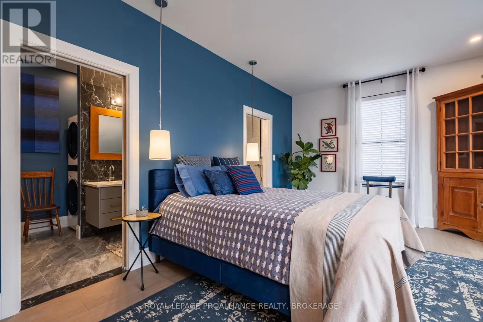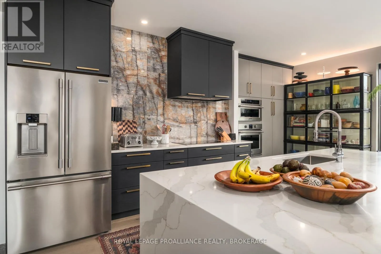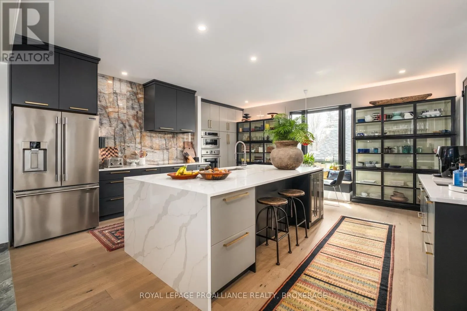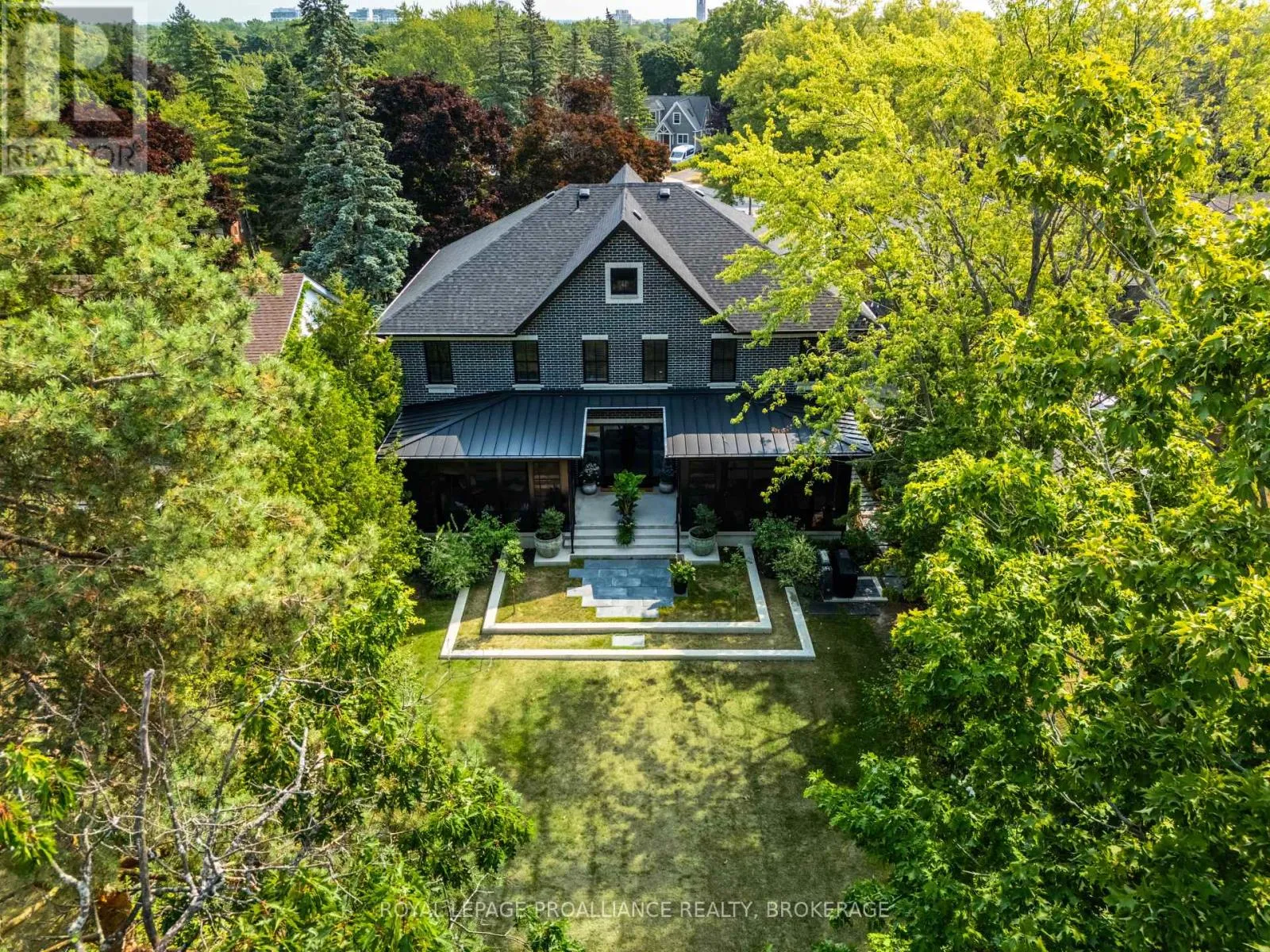 Cross Streets: Johnson Street or Union Street to College Street to Churchill Crescent. ** Directions: Johnson Street or Union Street to College Street to Churchill Crescent. Exquisite and classic new home in an unbeatable downtown location. Built in 2023, this professionally designed 2.5-storey brick home offers over 4,000 sq. ft. of contemporary living space on an exceptionally large and beautifully landscaped lot in one of Kingston's most sought-after neighbourhoods - Earls Court. Backing onto Oakridge Park with no rear neighbours, its a true retreat in the heart of downtown. Every design element has been thoughtfully curated, from the intricate tile work to the antique doors throughout the house which add timeless charm. The chefs kitchen boasts quartzite countertops, a double-wide waterfall island, induction cooktop, built-in oven, convection microwave, bar fridge, wet bar, and bay window with built-in breakfast seat. The open-concept kitchen-dining-living is the heart of the house, and all face west and overlook the verdant backyard. Hardwood floors run throughout the house while in-floor heating provides added comfort in the dining area, main floor bath, and primary ensuite. A pair of three-season porches open onto a terraced patio and expansive lawns surrounded by perimeter gardens. A versatile front room, currently an in-law suite with laundry and a four-piece bath, could also serve as an office or additional living space. The gorgeous hardwood stairwell opens to the second floor and winds past a stunning mural designed with the homes colour palette. Upstairs is the primary suite, two additional spacious bedrooms, each with its own private ensuite, a laundry room, and a large study with pivoting French doors. The spacious primary suite wraps around the south end of the house with seven windows and includes a walk-through closet and an ensuite with a freestanding tub, walk-through shower, dual vanities, and heated floors. The third floor is a finished vaulted bonus space, perfect for a kids' room, office, or studio. Additional features include a crawlspace for extra storage, a heated 2-car garage, and a large private driveway. (id:27476)