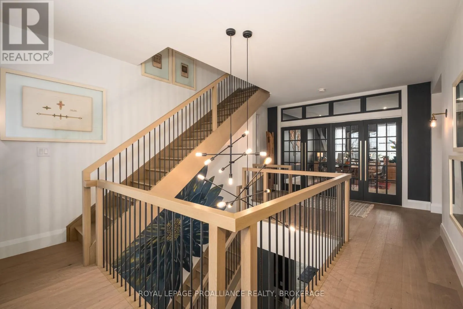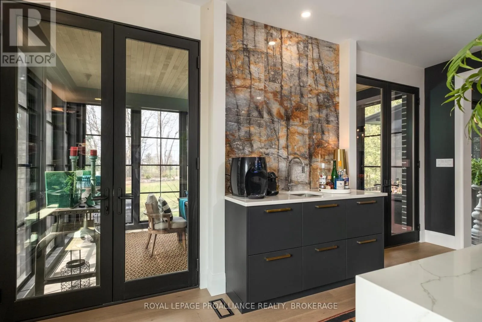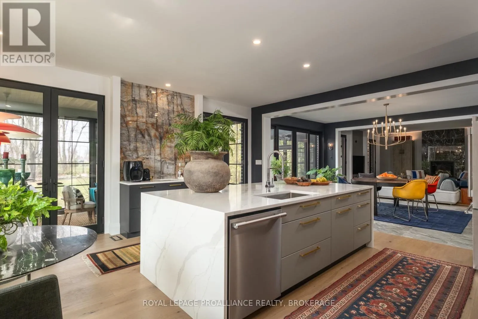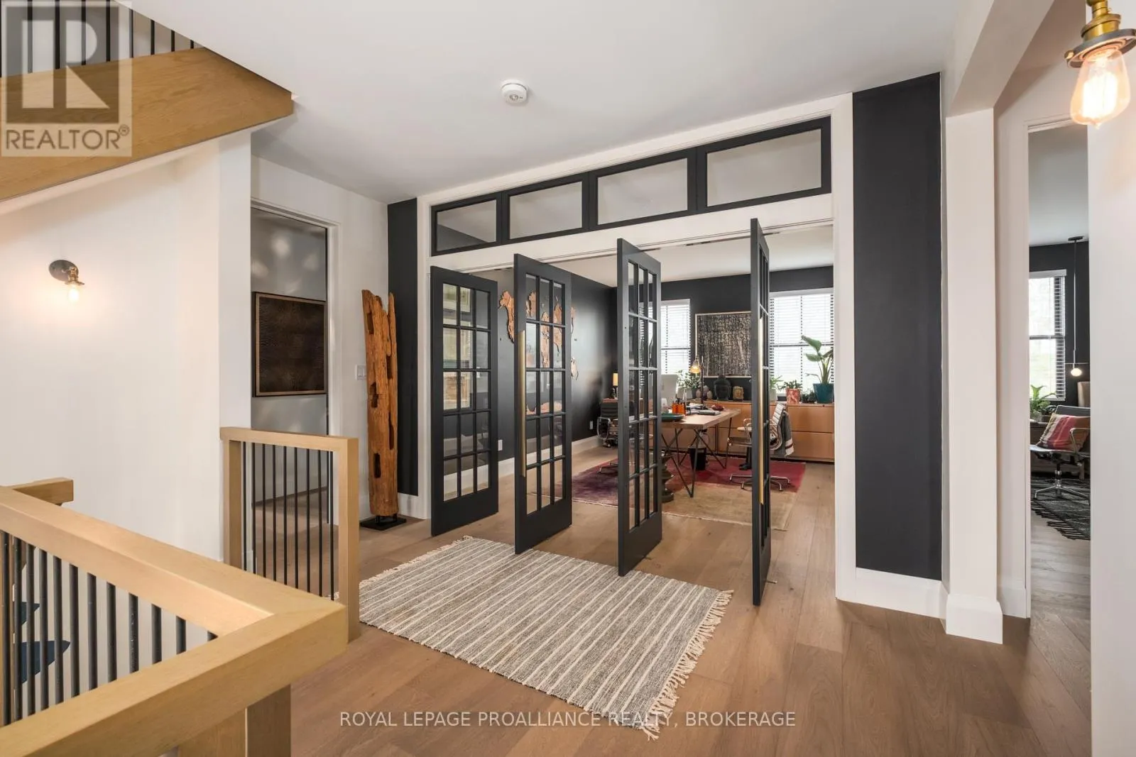 Cross Streets: Johnson Street or Union Street to College Street to Churchill Crescent. ** Directions: Johnson Street or Union Street to College Street to Churchill Crescent. Exquisite and classic new home in an unbeatable downtown location. Built in 2023, this professionally designed 2.5-storey brick home offers over 4,000 sq. ft. of contemporary living space on an exceptionally large and beautifully landscaped lot in one of Kingston's most sought-after neighbourhoods - Earls Court. Backing onto Oakridge Park with no rear neighbours, its a true retreat in the heart of downtown. Every design element has been thoughtfully curated, from the intricate tile work to the antique doors throughout the house which add timeless charm. The chefs kitchen boasts quartzite countertops, a double-wide waterfall island, induction cooktop, built-in oven, convection microwave, bar fridge, wet bar, and bay window with built-in breakfast seat. The open-concept kitchen-dining-living is the heart of the house, and all face west and overlook the verdant backyard. Hardwood floors run throughout the house while in-floor heating provides added comfort in the dining area, main floor bath, and primary ensuite. A pair of three-season porches open onto a terraced patio and expansive lawns surrounded by perimeter gardens. A versatile front room, currently an in-law suite with laundry and a four-piece bath, could also serve as an office or additional living space. The gorgeous hardwood stairwell opens to the second floor and winds past a stunning mural designed with the homes colour palette. Upstairs is the primary suite, two additional spacious bedrooms, each with its own private ensuite, a laundry room, and a large study with pivoting French doors. The spacious primary suite wraps around the south end of the house with seven windows and includes a walk-through closet and an ensuite with a freestanding tub, walk-through shower, dual vanities, and heated floors. The third floor is a finished vaulted bonus space, perfect for a kids' room, office, or studio. Additional features include a crawlspace for extra storage, a heated 2-car garage, and a large private driveway. (id:27476)