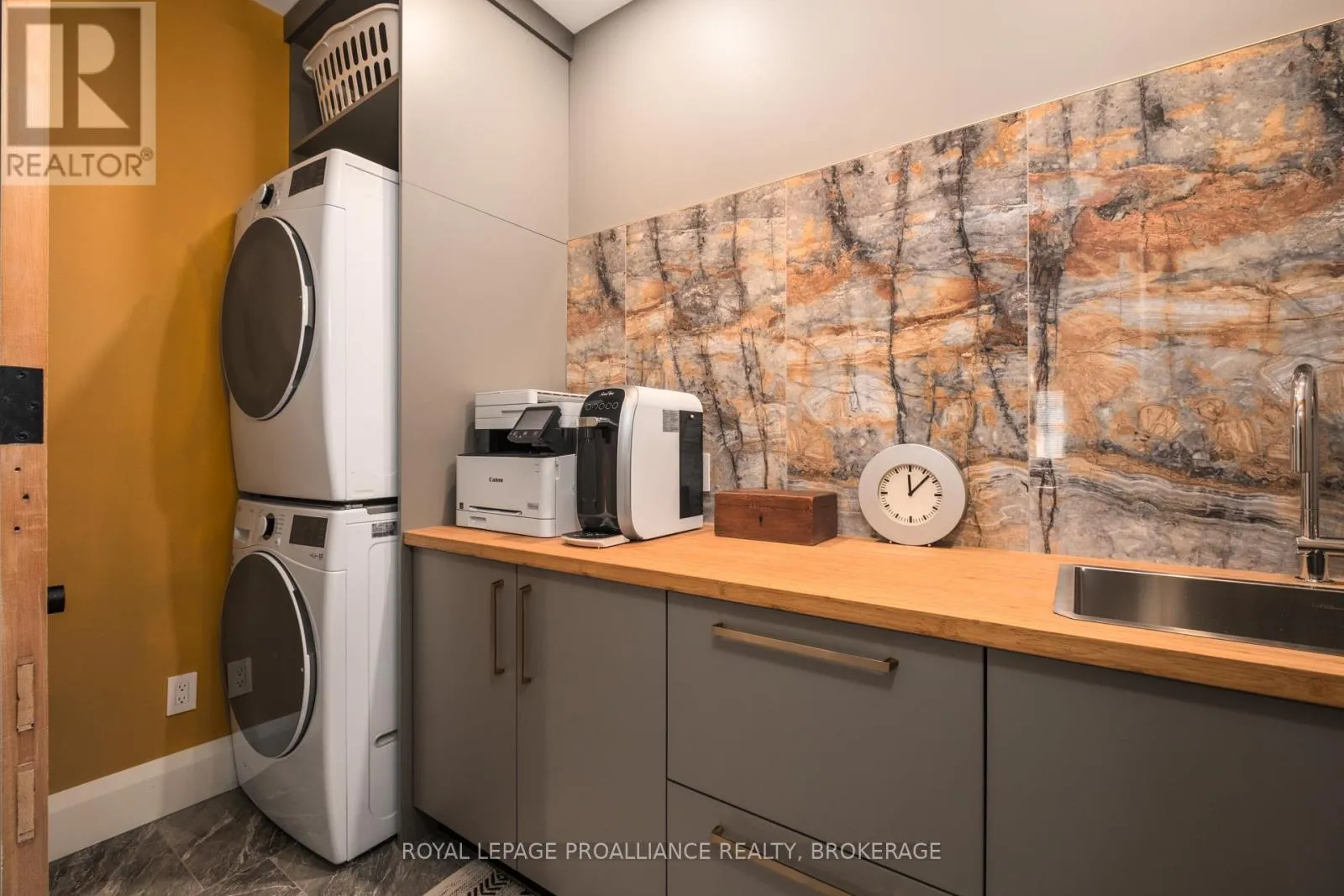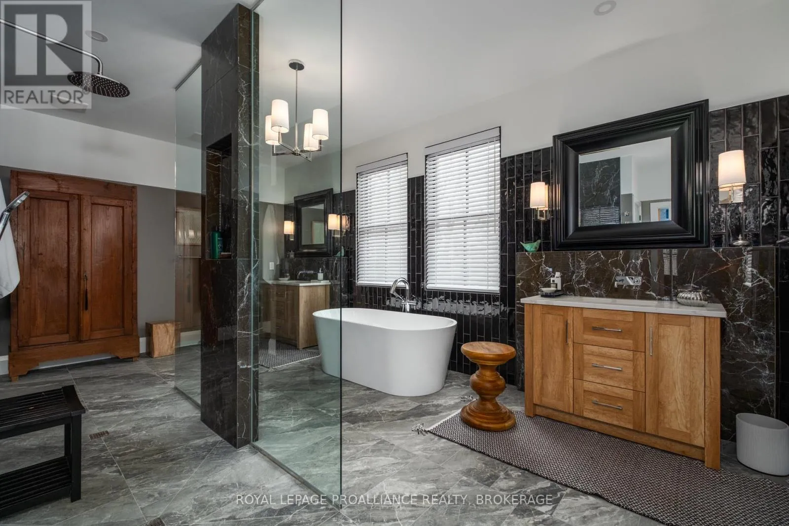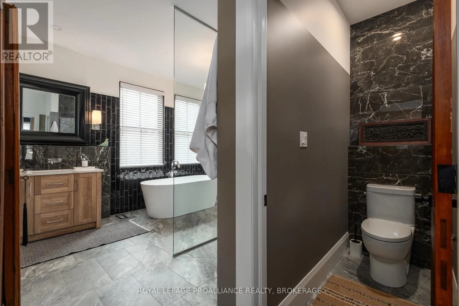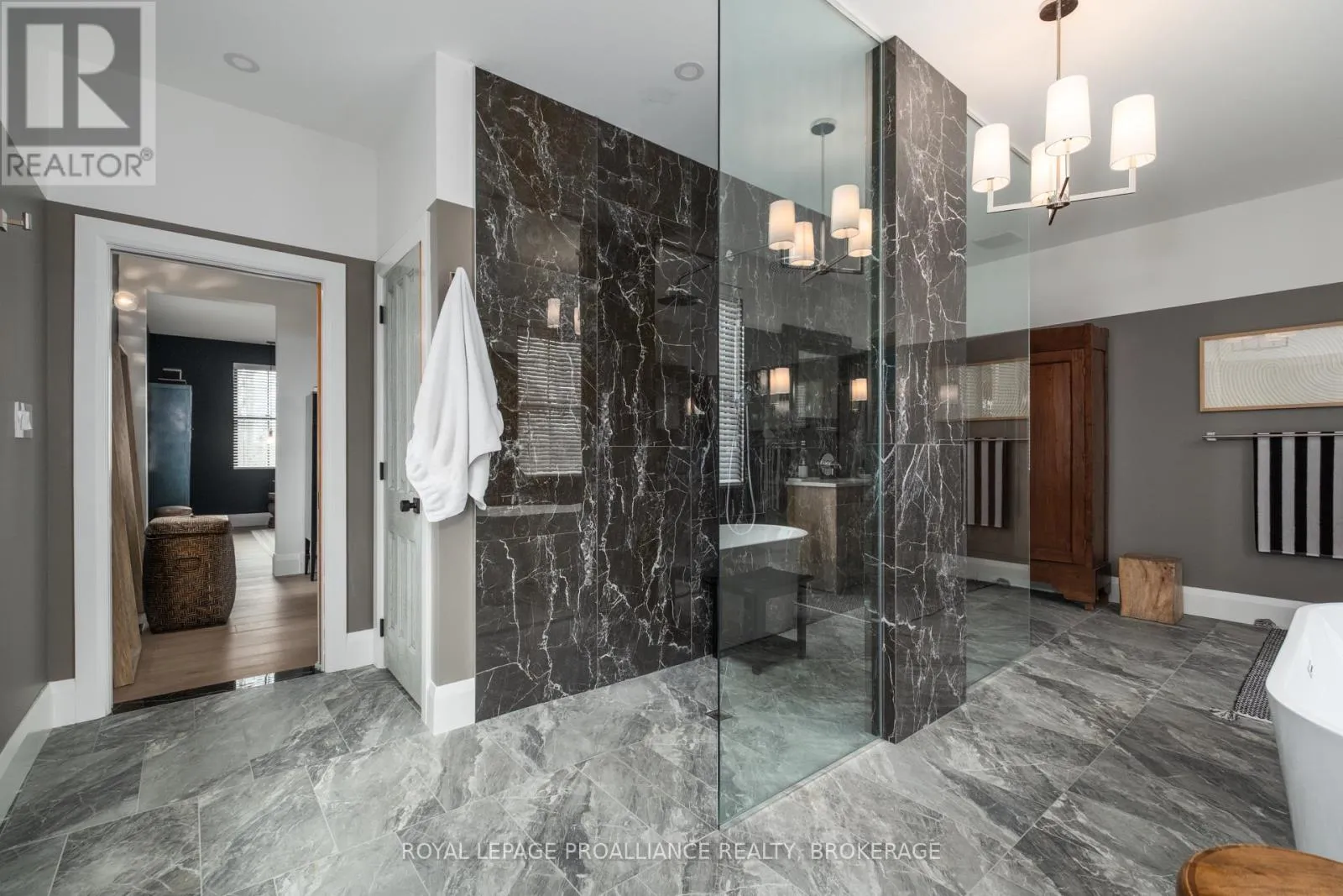 Cross Streets: Johnson Street or Union Street to College Street to Churchill Crescent. ** Directions: Johnson Street or Union Street to College Street to Churchill Crescent. Exquisite and classic new home in an unbeatable downtown location. Built in 2023, this professionally designed 2.5-storey brick home offers over 4,000 sq. ft. of contemporary living space on an exceptionally large and beautifully landscaped lot in one of Kingston's most sought-after neighbourhoods - Earls Court. Backing onto Oakridge Park with no rear neighbours, its a true retreat in the heart of downtown. Every design element has been thoughtfully curated, from the intricate tile work to the antique doors throughout the house which add timeless charm. The chefs kitchen boasts quartzite countertops, a double-wide waterfall island, induction cooktop, built-in oven, convection microwave, bar fridge, wet bar, and bay window with built-in breakfast seat. The open-concept kitchen-dining-living is the heart of the house, and all face west and overlook the verdant backyard. Hardwood floors run throughout the house while in-floor heating provides added comfort in the dining area, main floor bath, and primary ensuite. A pair of three-season porches open onto a terraced patio and expansive lawns surrounded by perimeter gardens. A versatile front room, currently an in-law suite with laundry and a four-piece bath, could also serve as an office or additional living space. The gorgeous hardwood stairwell opens to the second floor and winds past a stunning mural designed with the homes colour palette. Upstairs is the primary suite, two additional spacious bedrooms, each with its own private ensuite, a laundry room, and a large study with pivoting French doors. The spacious primary suite wraps around the south end of the house with seven windows and includes a walk-through closet and an ensuite with a freestanding tub, walk-through shower, dual vanities, and heated floors. The third floor is a finished vaulted bonus space, perfect for a kids' room, office, or studio. Additional features include a crawlspace for extra storage, a heated 2-car garage, and a large private driveway. (id:27476)
