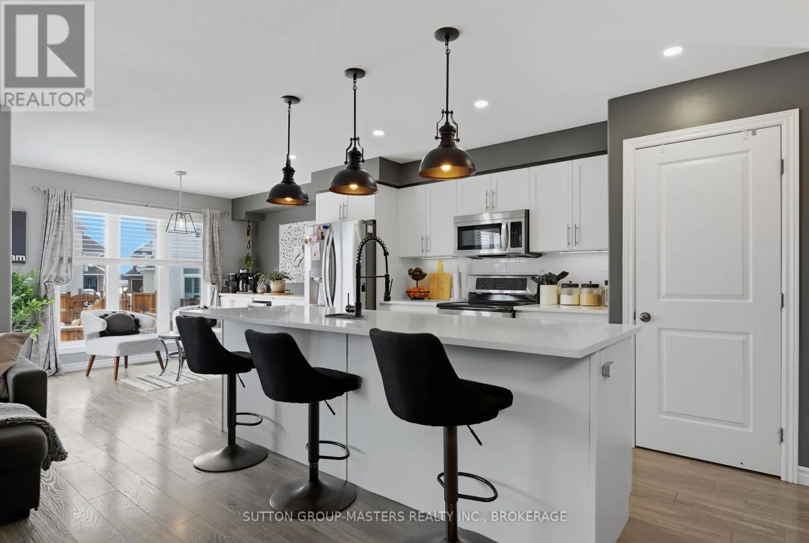 Cross Streets: Buckthorn & Monarch. ** Directions: N. on Buckthorn Dr. @ Cataraqui Woods Dr., left on Monarch. Welcome to1423 Monarch Drive! Discover this stunning 3-bed, 4-bath (2+2) semi-detached home, perfectly situated in Kingston's Woodhaven community This bright and airy residence features a modern open-concept main floor with upgraded light fixtures throughout, perfect for both busy family life and weekend entertaining. The chef-inspired kitchen boasts a generous center island, sleek quartz countertops, and a dedicated coffee bar with extra pantry storage-an ideal setup for morning routines and holiday feasts. Upstairs, you'll find three generous bedrooms, including an extra large primary retreat complete with a walk-in closet and a private 4-piece ensuite. For added convenience, the laundry room is located on the second level. The finished lower level offers a versatile recreation room with built-in speakers, pot lights, & 2 pc bathroom, ideal for a home office or gym. Step outside to your own backyard oasis. This fully fenced, pie-shaped retreat boasts a large deck, an inviting above-ground pool, and a stylish hard-top gazebo, creating the perfect setting for summer BBQs and year-round relaxation. Located just steps from parks, walking trails, and the brand-new St. Genevieve Catholic Elementary School, this home offers the perfect blend of upgraded style and unbeatable convenience (id:27476)