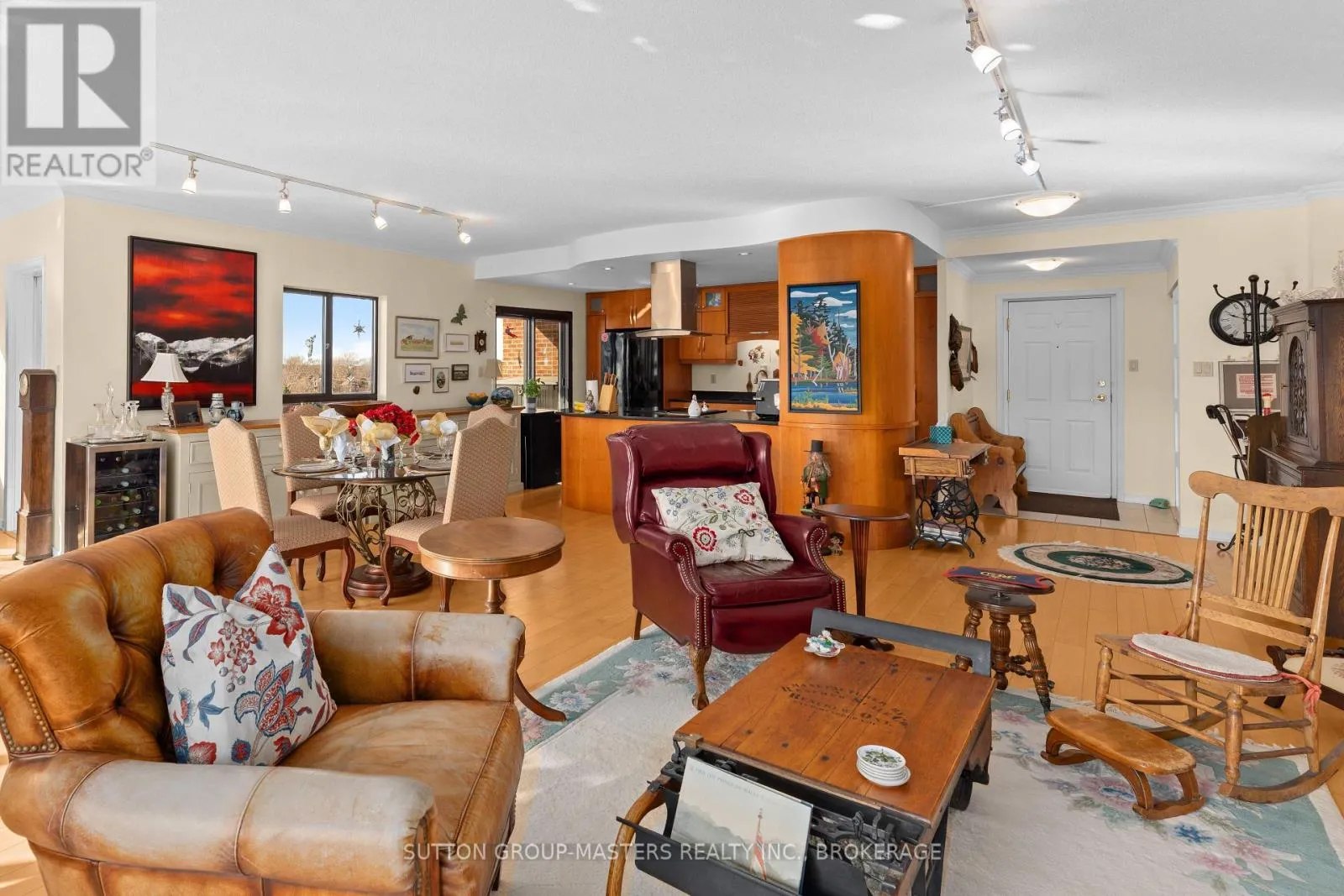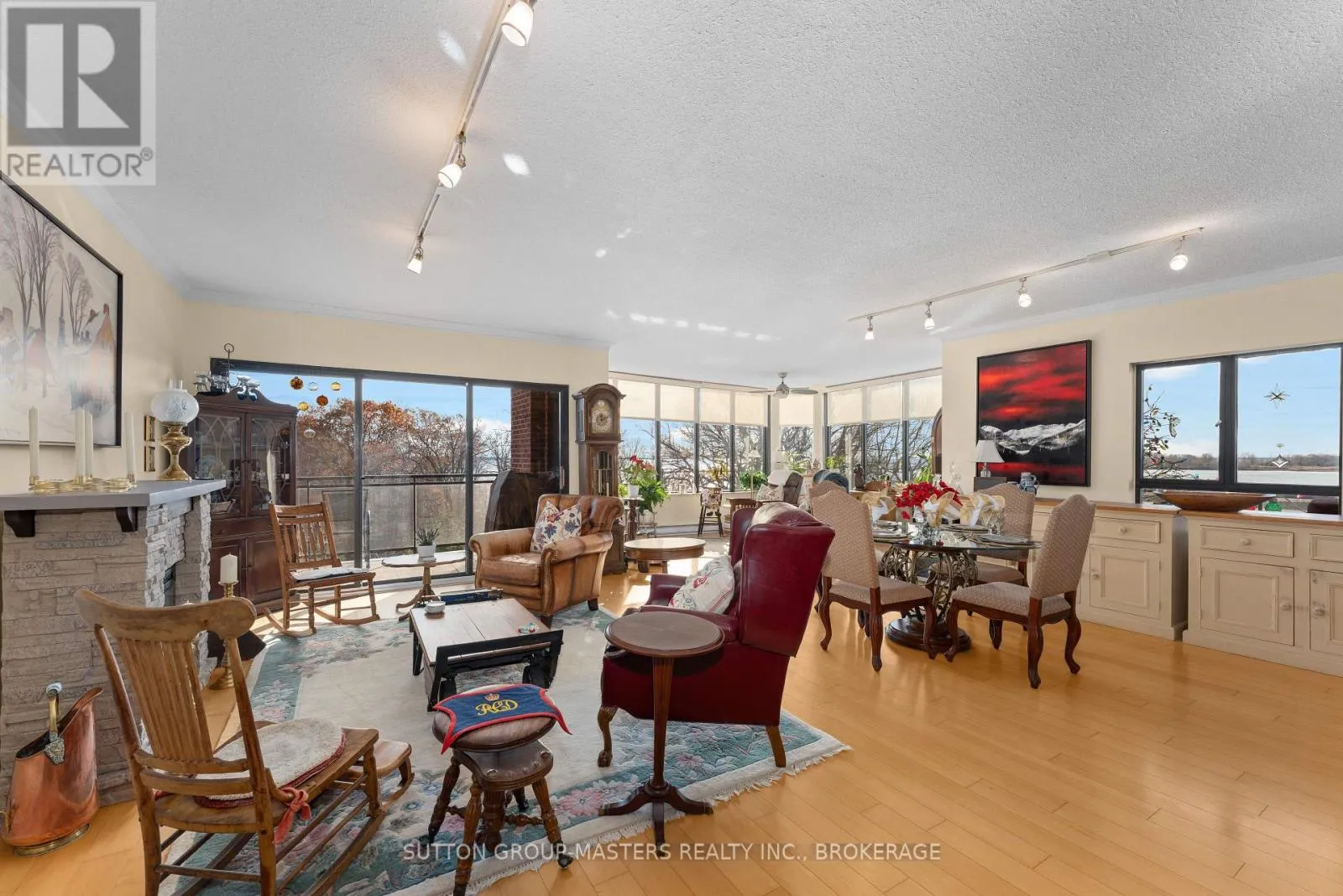 Cross Streets: King St & Portsmouth. ** Directions: Portsmouth to King St W. Client RemarksWelcome to Suite 406 at 1000 King Street West - Kingston's most prestigious and sought-after addresses. This South-West facing 2-bedroom, 2-bath Executive Suite offers elevated living with a bright, open-concept layout and two exceptional balconies capturing serene views of the Park and Lake. From the moment you enter, the space feels calm, refined and thoughtfully designed. The beautifully appointed Kitchen provides both style and function, ideal for the home chef and the entertainer alike. The luxurious primary suite features an impressive walk-through closet leading to a spa-inspired ensuite complete with a European-style walk-in shower, delivering a boutique hotel experience at home. Generous, well-planned storage throughout and in-unit laundry enhances the comfort and practicality of the suite. Perfectly positioned steps from the Cataraqui Golf & Country Club and historic Portsmouth Village, this location offers quick access to Downtown Kingston, Hospitals, Waterfront Trails, Shops, Restaurants and Transit ensuring everyday convenience at your doorstep. The building sets the standard for Executive Living with an extensive list of amenities, including underground parking with a car wash bay, ample visitor parking, a newly updated indoor pool (set for completion Feb '26), Jacuzzi, Sauna, fully equipped Fitness Centre, Tennis / Pickleball Court, Games Room, Library, Greenhouse, beautifully maintained gardens, an updated guest suite and a welcoming common room ideal for gatherings. With a warm and engaged resident community, this property offers the perfect blend of luxury, lifestyle and natural beauty. Here's your opportunity to own an Executive Suite in Kingston's most Prestigious Buildings. (id:27476)