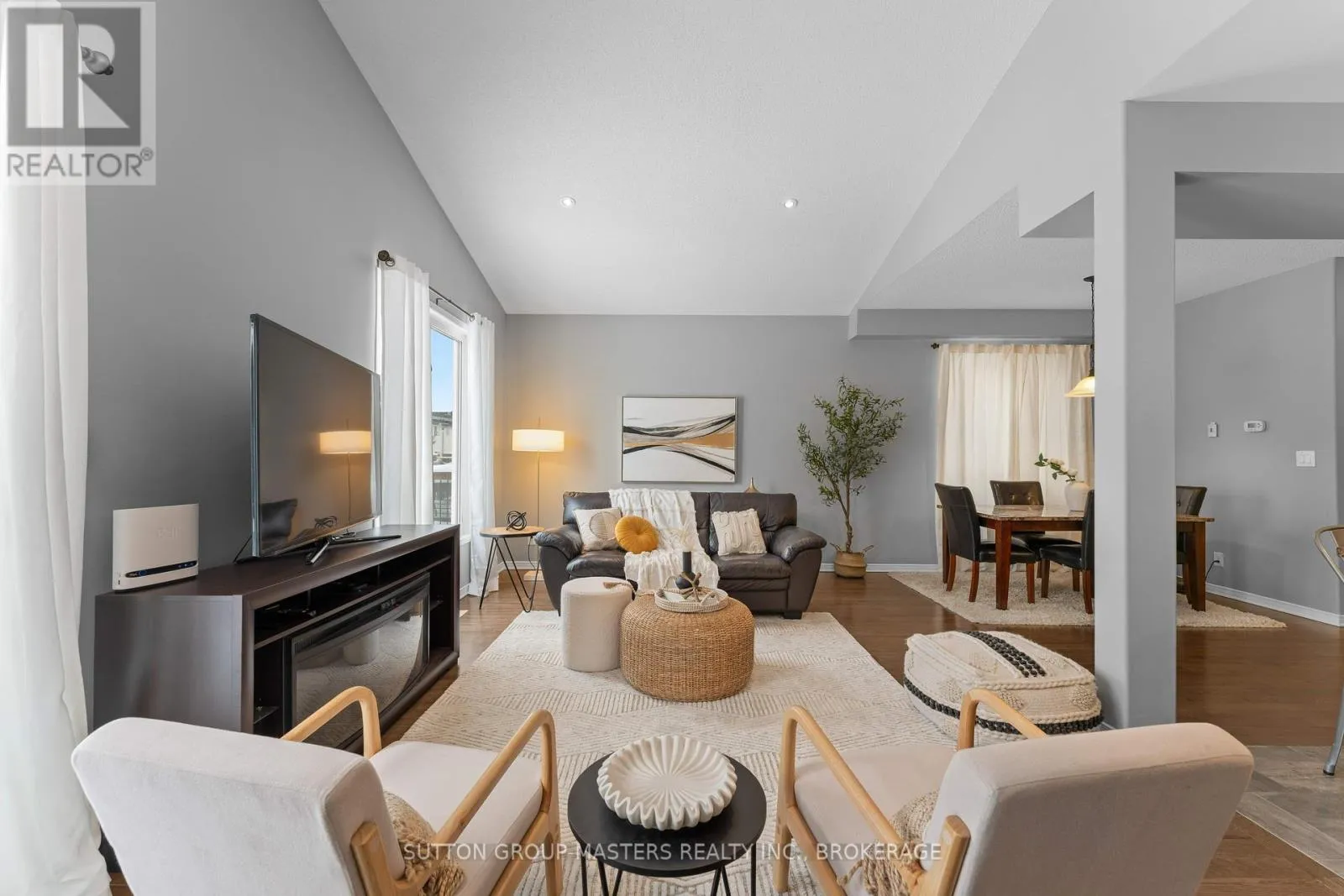 Cross Streets: Evergreen and Crimson. ** Directions: Princess to Woodhaven to Evergreen to Crimson. Welcome to this Caraco-built two-storey home in Kingston's sought-after Woodhaven neighbourhood, offering modern finishes, a smart layout, and room to grow. The main level features new flooring and an open-concept kitchen, living, and dining area highlighted by a cathedral ceiling and a large island - perfect for everyday living and entertaining. Step out from the living area to your rear deck, extending your living space outdoors. The home offers approximately 1445sqft of finished living space, with a convenient powder room on the main floor. Upstairs, you will find three bedrooms, laundry, a 4-piece main bathroom, and a 3-piece ensuite and walk-in closet off the primary bedroom. The lower level is fully framed and ready for your finishing touches, complete with a rough-in for an additional bathroom, offering excellent potential for added living space. Additional highlights include an owned tankless water heater and a single garage with inside entry. Ideally located close to shopping, schools, parks, and quick access to the 401, this home is a fantastic opportunity to settle into one of Kingston's fastest-growing west-end communities. (id:27476)