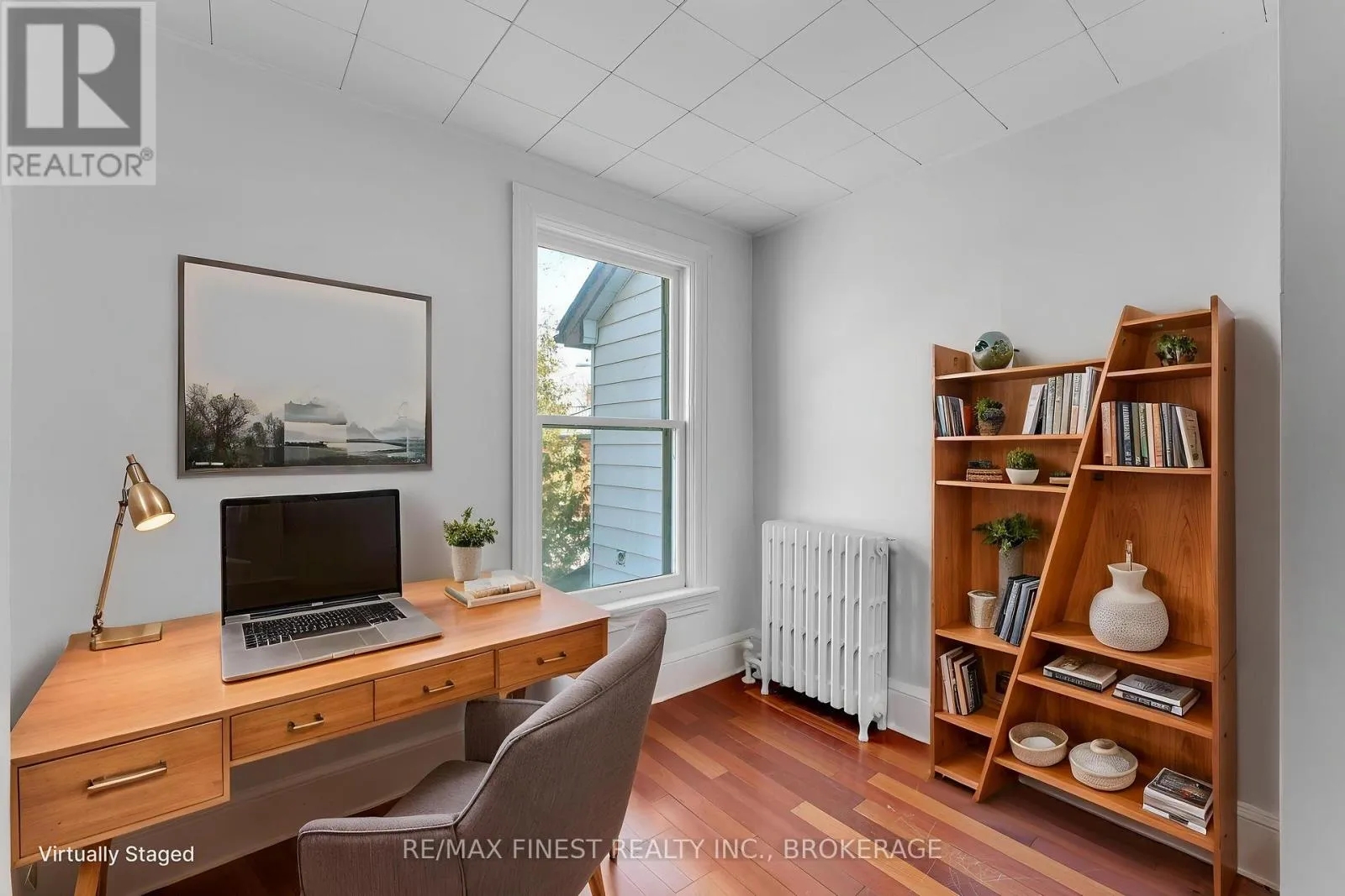 Cross Streets: Ordnance and Barrie. ** Directions: Barrie to Ordnance. Charming home in Kingston's sought-after Inner Harbour neighbourhood, perfectly positioned for those who want to enjoy the energy of downtown living while maintaining a manageable, low-maintenance lifestyle. Located directly across from McBurney Park, this property offers beautiful green space and recreation literally steps from your front door, while still being just minutes from the restaurants, shops, and amenities of downtown Kingston. Inside, the home features 3 bedrooms and 1 bathroom, with surprisingly spacious living areas including a large kitchen and comfortable living space that provide excellent functionality for everyday living or entertaining. The brick exterior offers long-term durability, and the property's minimal yard keeps outdoor maintenance simple. A rare find for this location, the property also includes parking and a small garage-an increasingly hard-to-find feature in the Inner Harbour area. The combination of character, practicality, and location makes this home especially appealing to young professionals or couples seeking a vibrant downtown lifestyle at an accessible price point, as well as parent buyers looking for a smart investment for students attending nearby Queen's University. (id:27476)