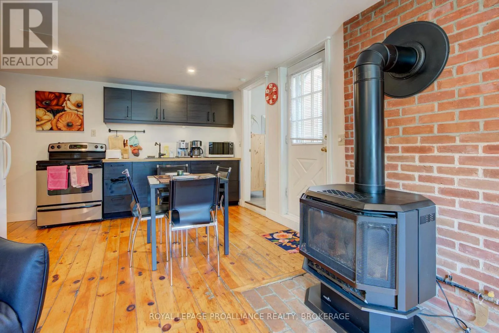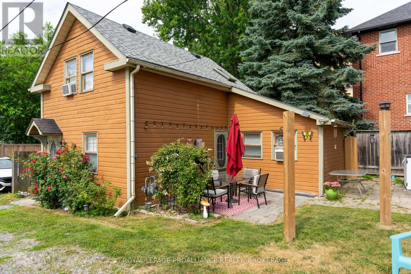 Cross Streets: William Street and Earl Street. ** Directions: Bagot Street (160A) between William Street and Earl Street. Charming two story home in Bagot offering a warm blend of rustic character and modern comfort, tucked away from the street for added privacy while still being just steps from all the action of downtown. This thoughtfully designed 780 sq. ft. residence features 2 bedrooms, 2 bathrooms, and well planned living spaces that maximize functionality and natural light. The 480 sq. ft. main floor includes a welcoming living room with pine flooring, a large wall mounted TV, and comfortable seating. The adjoining kitchen showcases dark cabinetry and wooden countertops, complemented by a bright dining area with a glass top table-an ideal layout for everyday living and entertaining. Upstairs, the 300 sq. ft. second level offers one inviting bedroom. The primary bedroom (180 sq. ft.) features a striking knotty pine accent wall, metal frame bed, geometric lighting, and generous windows. The second bedroom provides a serene, coastal inspired atmosphere perfect for guests or a quiet retreat. The home's bathroom is compact yet efficient, complete with a glass enclosed shower, modern vanity, and a skylight that fills the space with natural light. A dedicated laundry area with full sized appliances adds convenience. Warm wood tones throughout the home pair beautifully with crisp white walls, creating a bright, cozy, and contemporary feel. Hidden quietly behind the historic façade of Bagot Street lies a rare cottage retreat just steps from downtown. Walk to waterfront parks, restaurants, cafés, and boutique shops while enjoying the privacy of a tucked-away setting. A unique opportunity to live in the heart of Kingston without sacrificing tranquility. Walking distance from Hotel Deu, Kingston General, Queen's University. (id:27476)