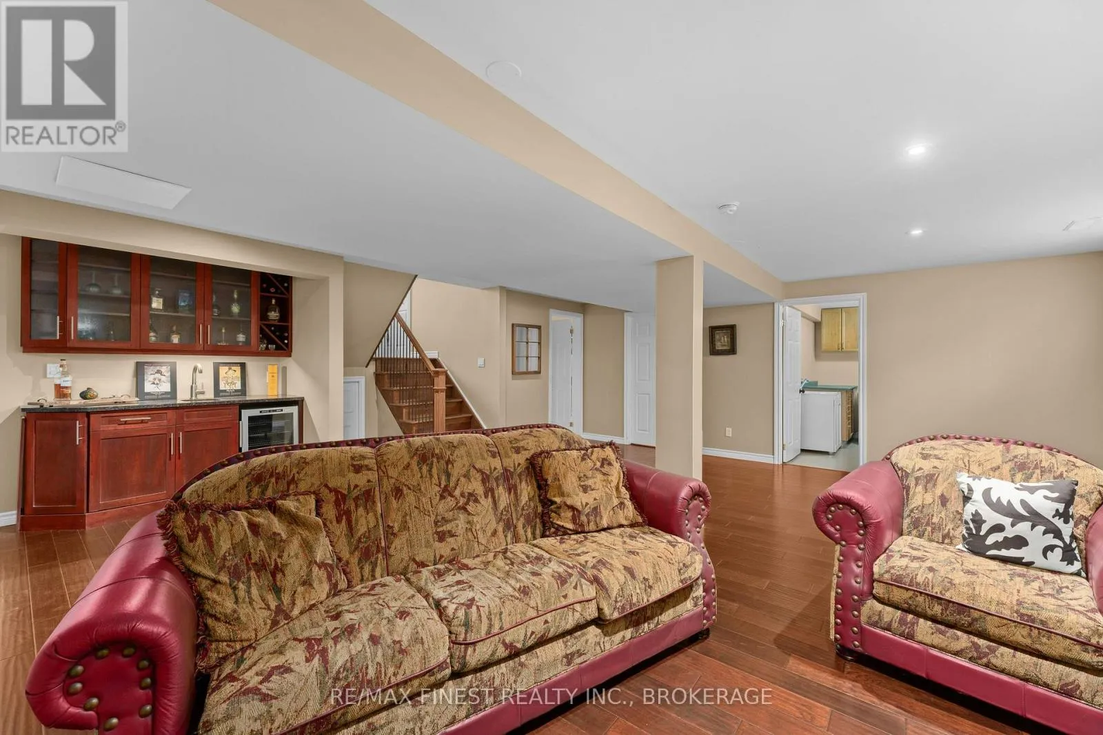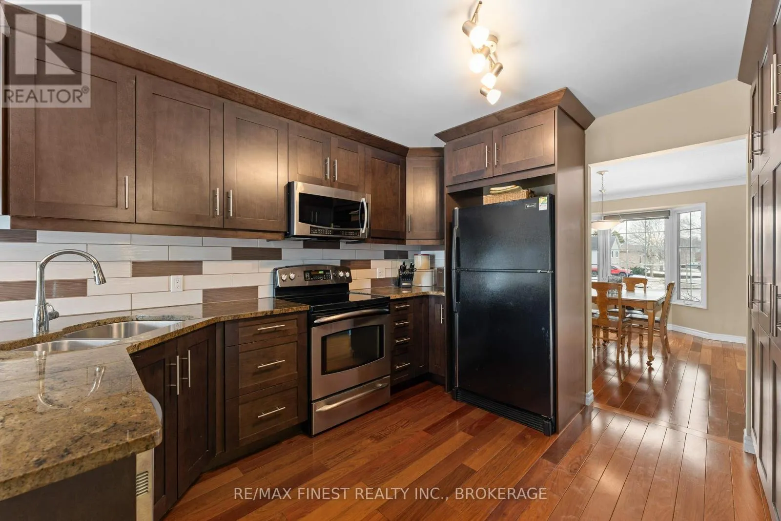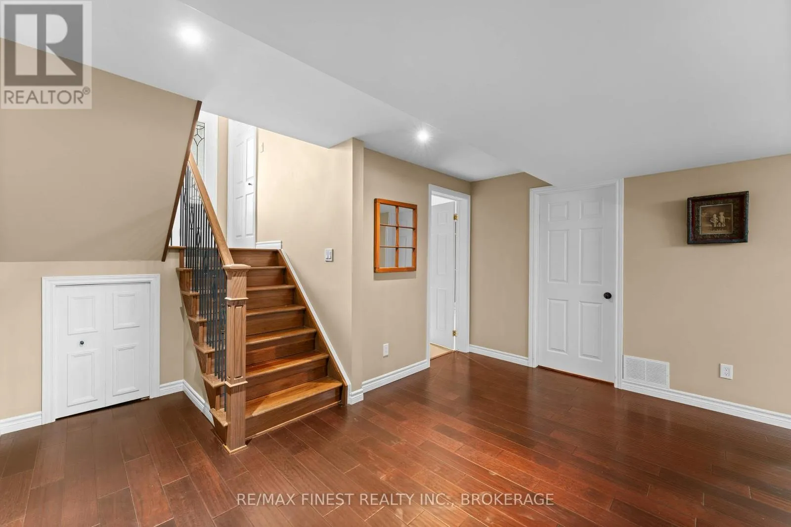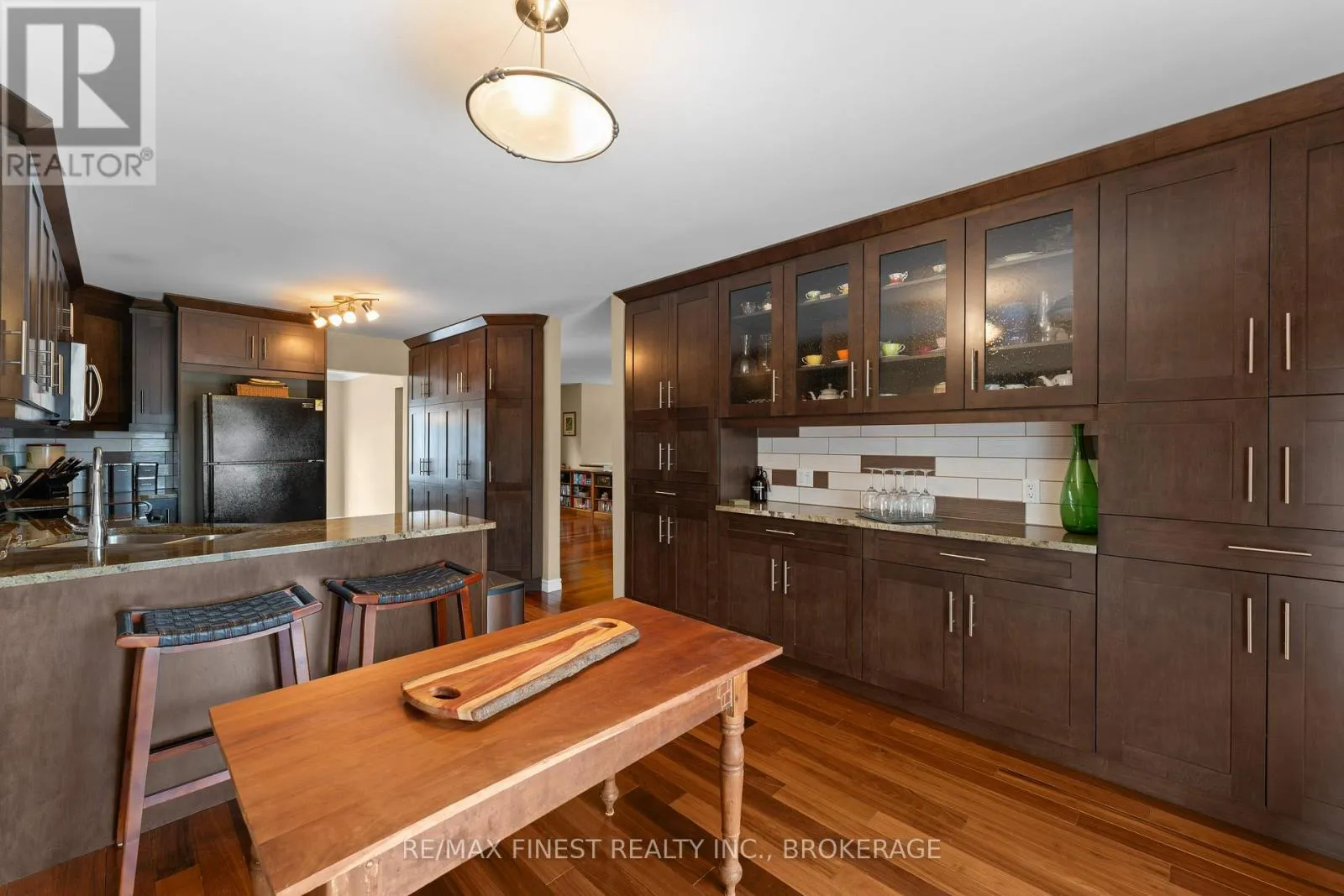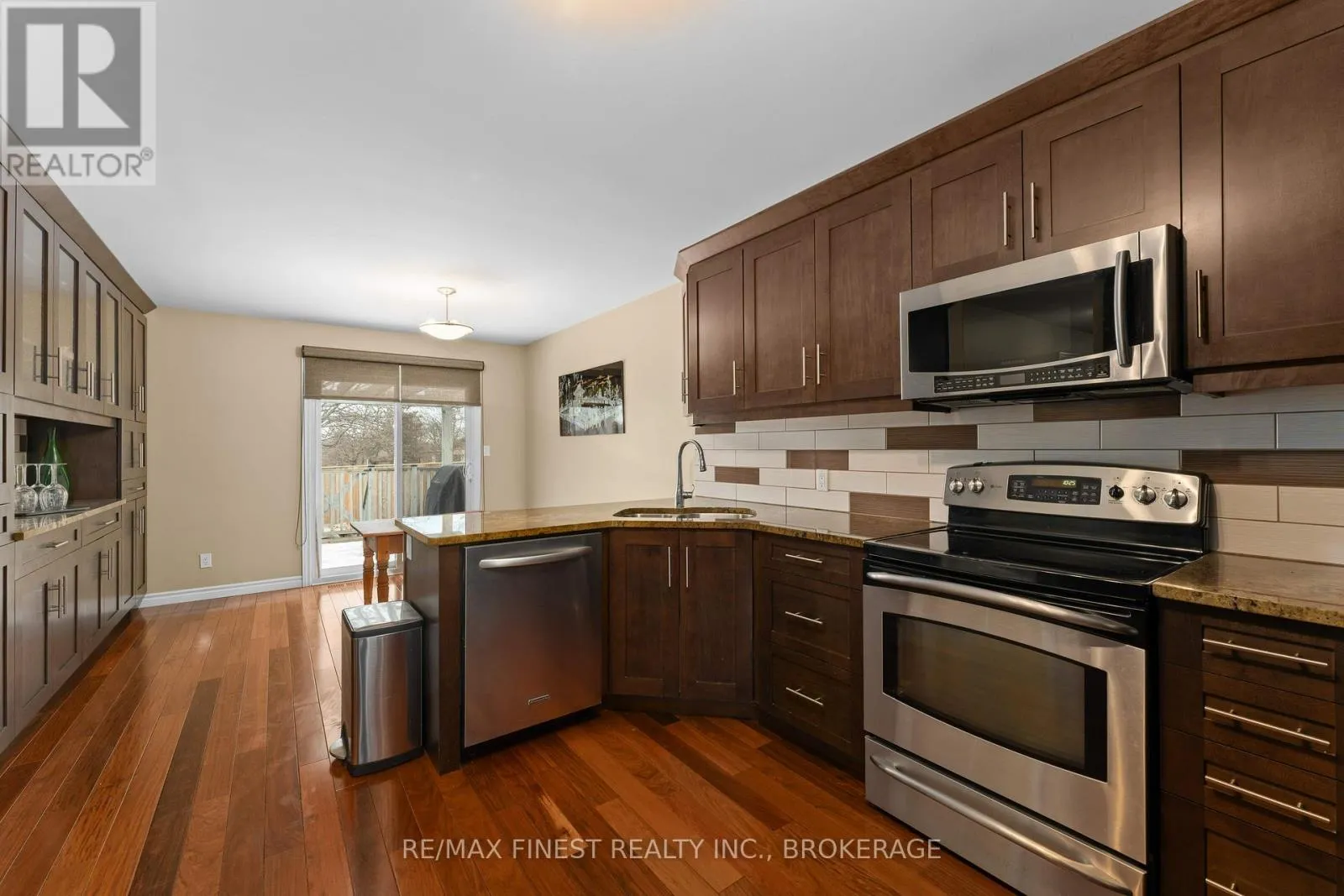 Cross Streets: Highway 15. ** Directions: Highway 15 to point st mark dr, to barker dr. Stunning East End Family Home with Premium Upgrades! Welcome to this exceptional 3-bedroom, 3full bath, East End family home. Perfectly situated on a desirable pie-shaped lot and offering a rare combination of luxury upgrades, thoughtful design, and impeccable craftsmanship. Step inside to discover a beautifully updated interior featuring pristine Brazilian hardwood flooring throughout the upper level, staircase, and trim, complemented by matching hardwood floor registers that showcase the meticulous attention to detail found throughout the home. Custom precision-fit built-in bookshelves add both elegance and functionality across multiple living spaces. At the heart of the home is a custom-designed kitchen featuring granite countertops throughout, blending timeless style with durability for everyday living and entertaining. Upstairs, the spa-inspired main bathroom is highlighted by a stunning cast iron clawfoot bathtub, creating the perfect retreat for relaxation. The lower level is designed for entertaining, featuring a custom wet bar and a fully sound proofed entertainment room complete with a built-in Bowers & Wilkins surround sound system, delivering a true home theatre experience. With a Beautifully maintained interior, the exterior boasts beautifully maintained gardens throughout the property. A wood veranda and deck with a gas barbecue and gas fire pit are perfect for summer entertaining. This home has been meticulously maintained with no detail overlooked, showcasing superior craftsmanship and pride of ownership throughout. A rare opportunity to own a move-in-ready, fully upgraded East End home designed for comfortable family living and effortless entertaining. (id:27476)