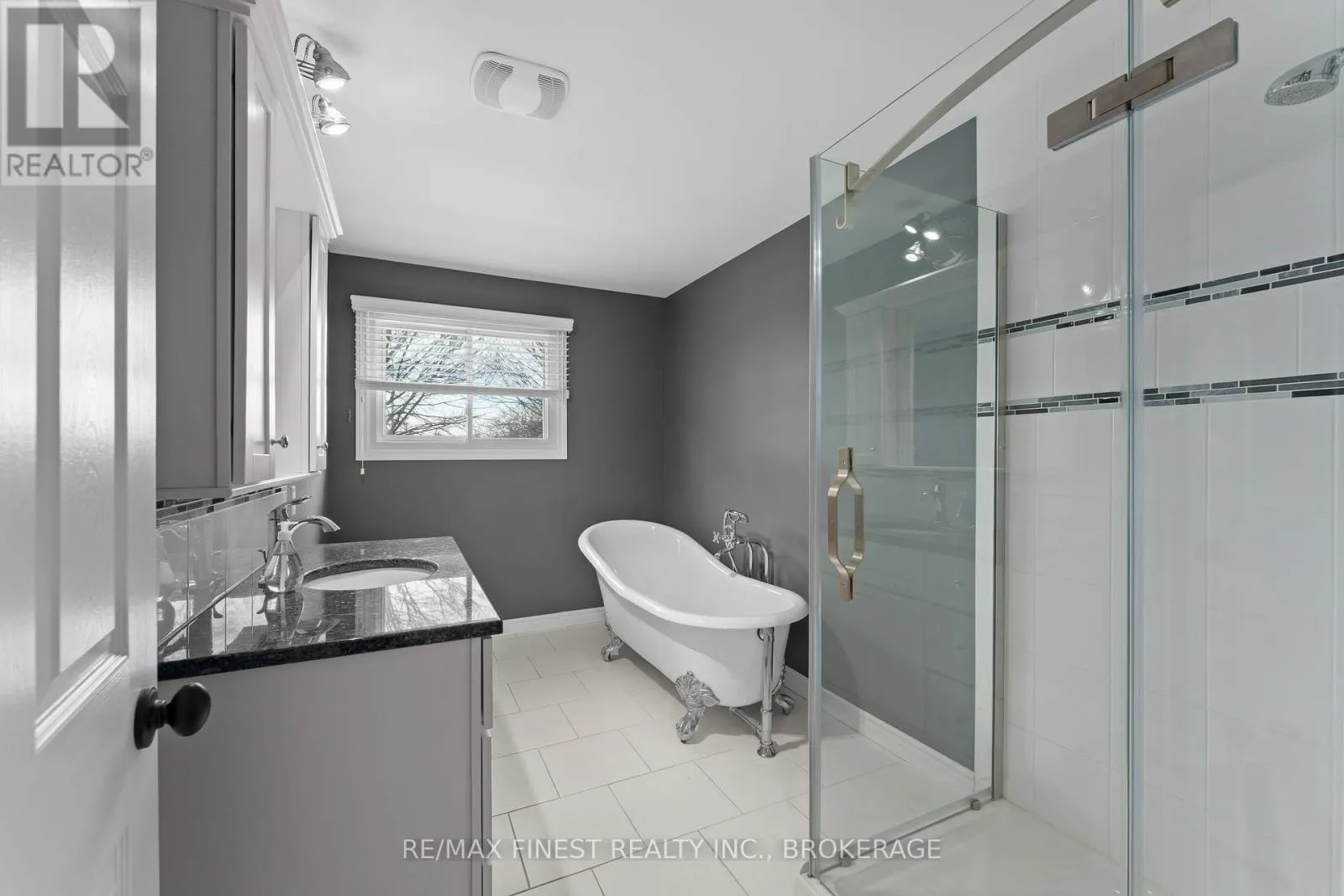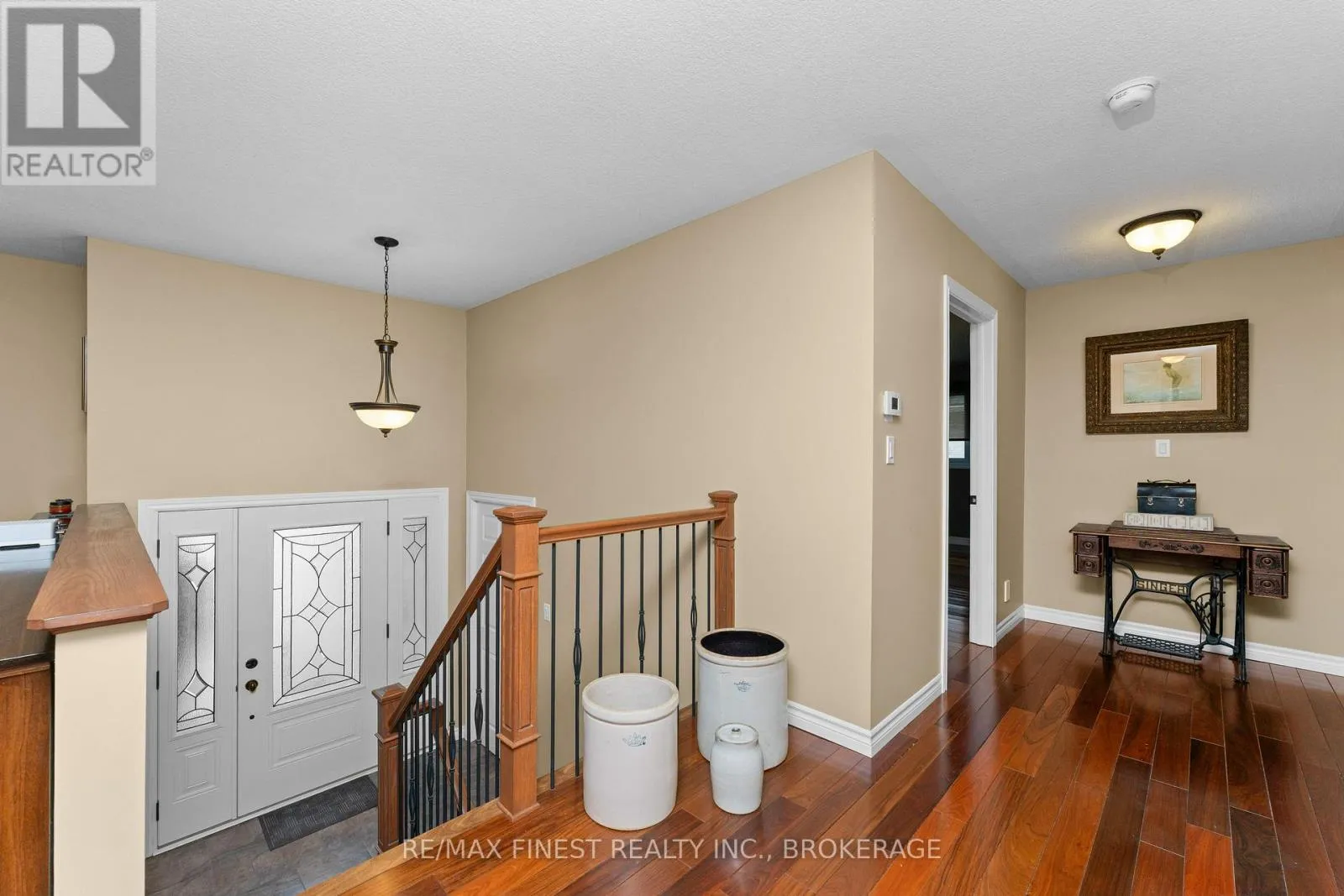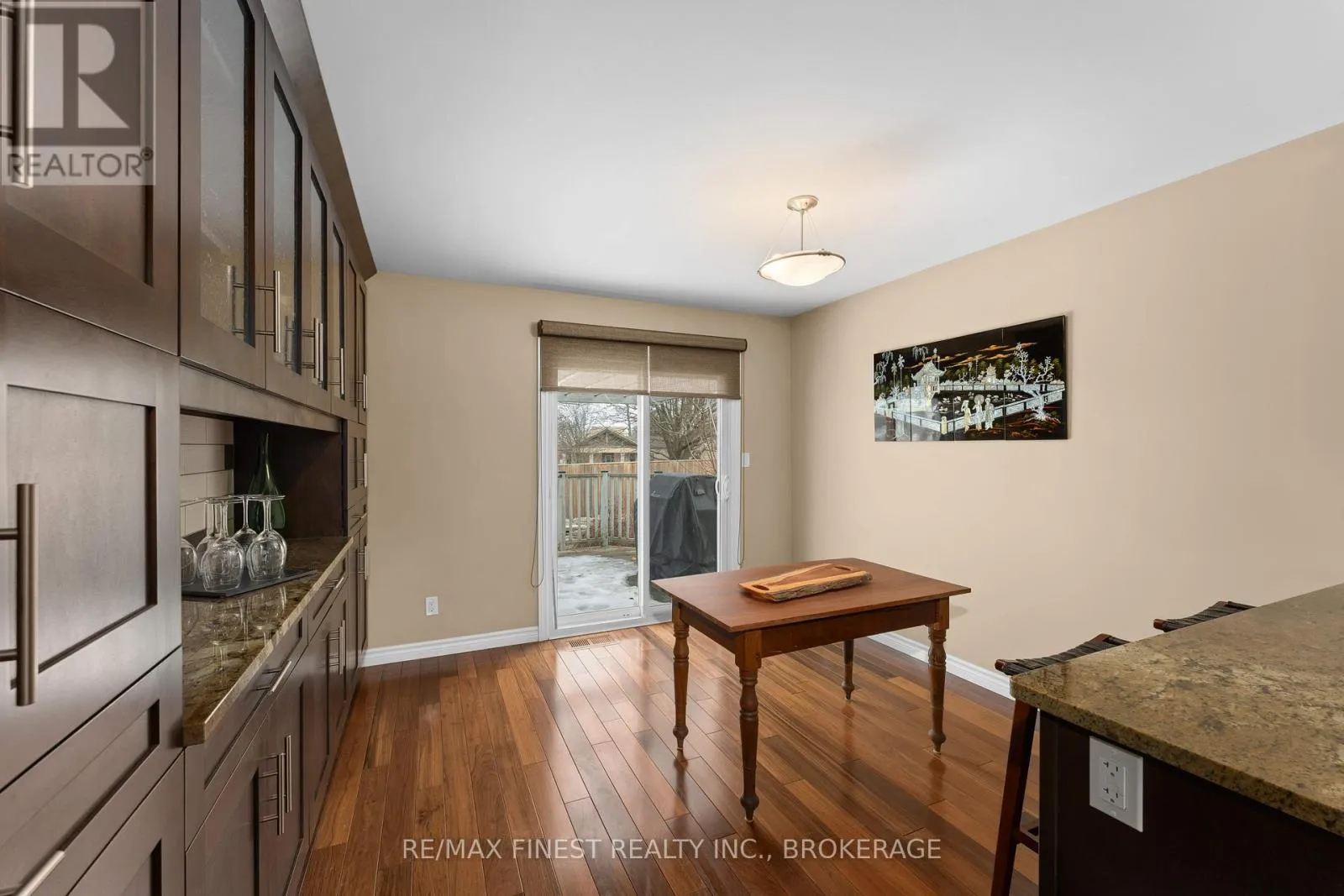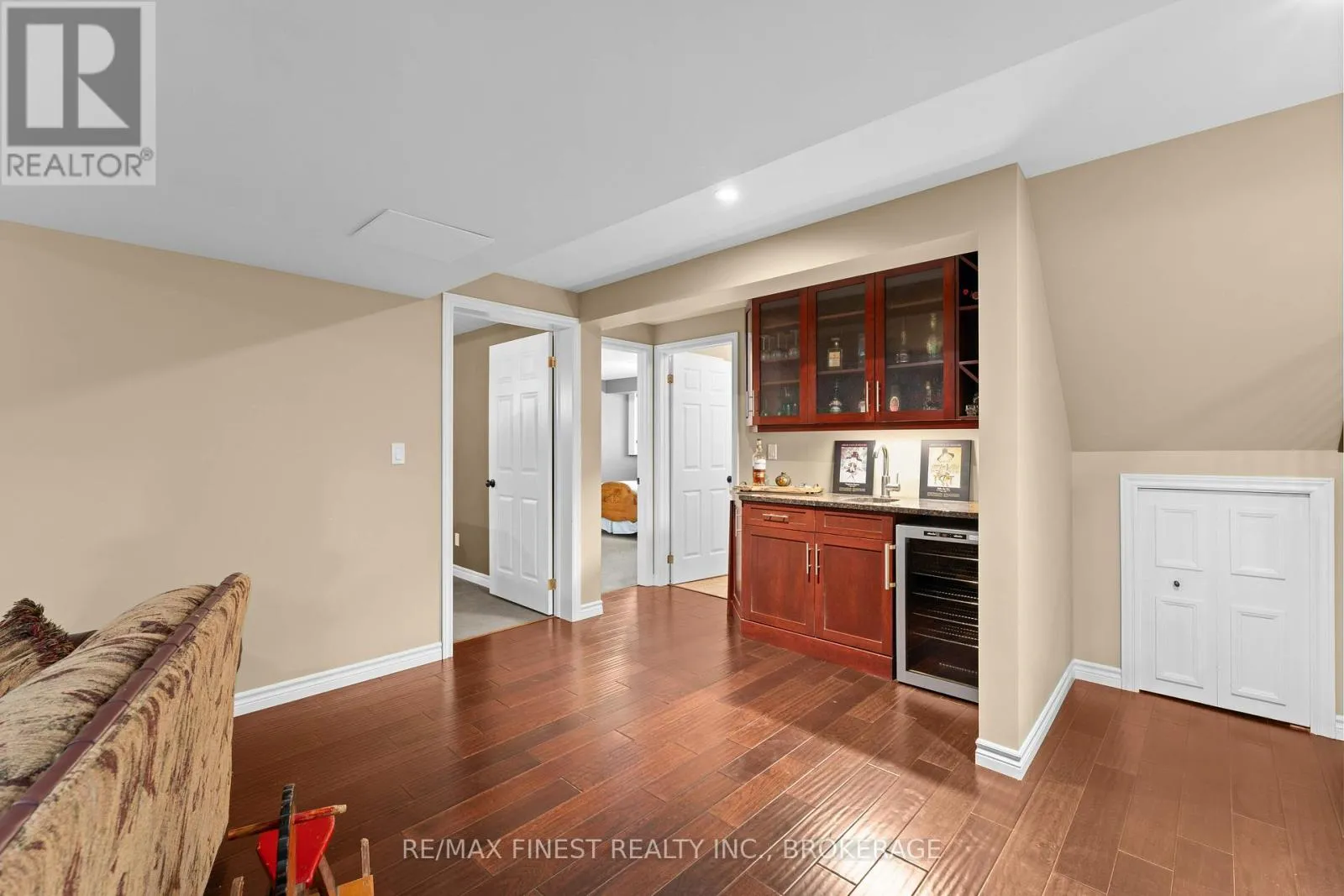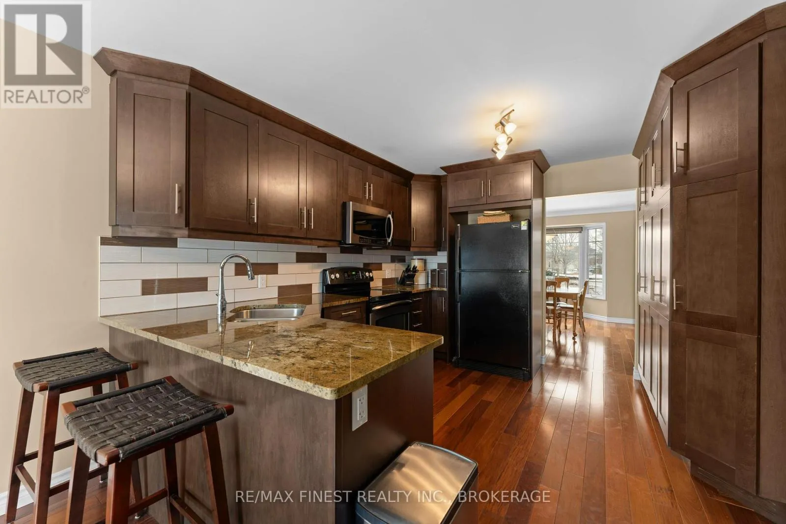 Cross Streets: Highway 15. ** Directions: Highway 15 to point st mark dr, to barker dr. Stunning East End Family Home with Premium Upgrades! Welcome to this exceptional 3-bedroom, 3full bath, East End family home. Perfectly situated on a desirable pie-shaped lot and offering a rare combination of luxury upgrades, thoughtful design, and impeccable craftsmanship. Step inside to discover a beautifully updated interior featuring pristine Brazilian hardwood flooring throughout the upper level, staircase, and trim, complemented by matching hardwood floor registers that showcase the meticulous attention to detail found throughout the home. Custom precision-fit built-in bookshelves add both elegance and functionality across multiple living spaces. At the heart of the home is a custom-designed kitchen featuring granite countertops throughout, blending timeless style with durability for everyday living and entertaining. Upstairs, the spa-inspired main bathroom is highlighted by a stunning cast iron clawfoot bathtub, creating the perfect retreat for relaxation. The lower level is designed for entertaining, featuring a custom wet bar and a fully sound proofed entertainment room complete with a built-in Bowers & Wilkins surround sound system, delivering a true home theatre experience. With a Beautifully maintained interior, the exterior boasts beautifully maintained gardens throughout the property. A wood veranda and deck with a gas barbecue and gas fire pit are perfect for summer entertaining. This home has been meticulously maintained with no detail overlooked, showcasing superior craftsmanship and pride of ownership throughout. A rare opportunity to own a move-in-ready, fully upgraded East End home designed for comfortable family living and effortless entertaining. (id:27476)