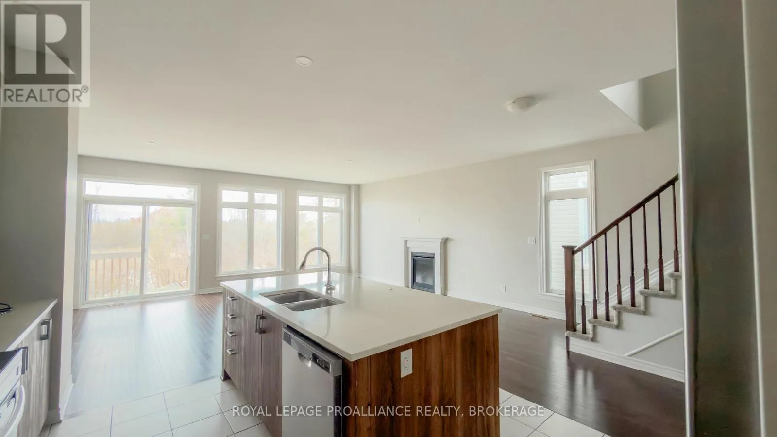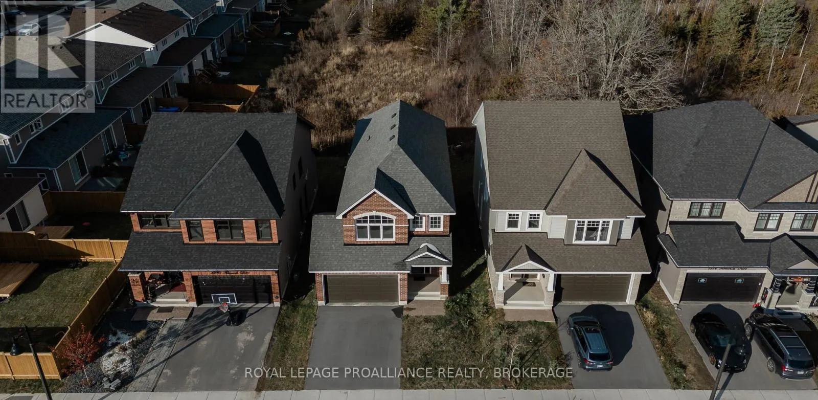 Cross Streets: West on Cataraqui Drive, North on Holden, West on Monarch. ** Directions: West on Cataraqui Drive, North on Holden, Weston Monarch. Welcome to 1388 Monarch Drive - A Beautiful Tamarack Home Built in 2022 for Today's Modern Family. Tucked away on a peaceful street in Kingston's desirable Woodhaven community, this nearly new Tamarack home offers 1,989 sq. ft. of thoughtfully upgraded above ground living space, perfectly combining comfort, functionality, and contemporary style-ideal for growing families or multi-generational living. The main floor showcases an inviting open-concept layout with 9-foot ceilings, engineered hardwood floors, and expansive windows that fill the home with natural light. The chef-inspired kitchen stands out with quartz countertops,upgraded cabinetry, a large island with seating, extended work surfaces, and ample lighting for a warm, modern ambiance. The adjoining living and dining areas flow effortlessly together,centered around a cozy gas fireplace-perfect for entertaining or relaxing evenings at home.Upstairs, discover four spacious bedrooms, including a luxurious primary suite with a walk-in closet and spa-like ensuite featuring quartz counters. A second full bath and laundry room on the same level add exceptional practicality for busy households. The basement is fully finished with a family room, office and a 3 piece bath. Situated close to schools, parks, and scenic walking trails, and just minutes from Highway 401, west-end shopping, and dining, this home offers an unbeatable blend of location, lifestyle, and design. Move-in ready and crafted with quality in every detail, 1388 Monarch Drive is where modern living truly feels like home. (id:27476)
