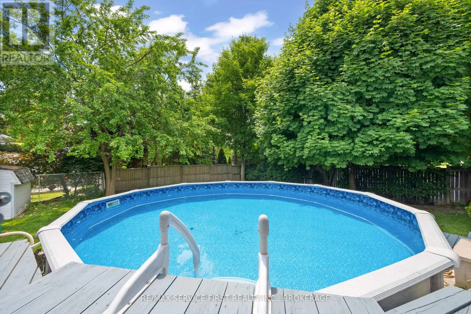 Cross Streets: Kingsdale Avenue and Splinter Court. ** Directions: Kingsdale Ave to Splinter Court. Positioned on an oversized corner lot in the highly desirable Meadowbrook neighbourhood, this updated 3-bedroom, 2.5-bath home offers exceptional value and true move-in-ready convenience. Just steps from Meadowbrook Park, the location is ideal for families and outdoor enthusiasts alike. The main level features a bright, spacious living area that flows effortlessly to a large, partially covered deck-perfect for entertaining or everyday outdoor dining. The fully fenced, treed backyard creates a private setting, complete with an above-ground pool for summer enjoyment. Upstairs, you'll find three well-proportioned bedrooms, including a primary retreat with its own 3-piece ensuite, along with a full 4-piece main bath. The finished lower level adds versatile living space with a generous rec room and a cold room for additional storage. Key updates include a furnace (2021), air conditioner (2017), and significant electrical improvements, offering added confidence for buyers. A strong opportunity in a central, family-oriented neighbourhood-ready for its next owners. (id:27476)