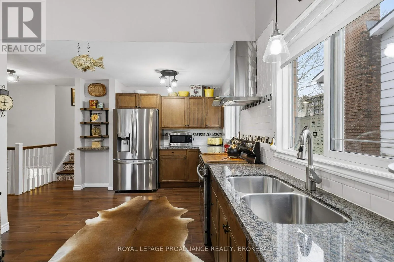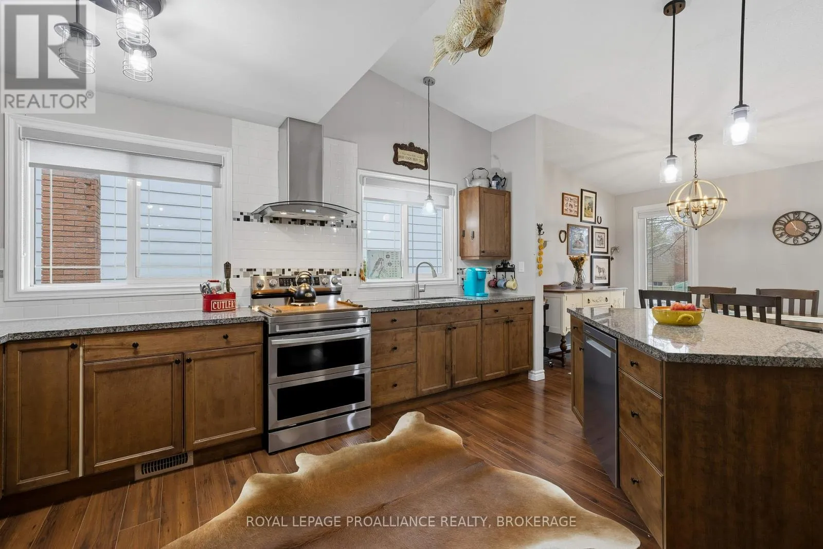 Cross Streets: Carmil Blvd & Mona Drive. ** Directions: Taylor Kidd Blvd West, left Mona Drive, right on High Gate Park Drive, property on right. As realtor's there is nothing more satisfying than showing your client a home that stands out from the competition. Welcome to 774 High Gate Park Drive. From the moment you step through the front door into the spacious foyer you can't help but say "wow, this could be the one!" The natural light is immediately evident and your eyes are drawn not only down the hallway towards the modern kitchen with mocha kitchen cabinets, stainless steel appliances and granite counter tops, but also into the wide open living, dining room with 11 foot vaulted ceilings blending seamlessly back into the kitchen area separated by the kitchen Island with eating bar. The cupboard and counter space will put a smile on any cooking aficionado's face. There are 3 bedrooms; the Primary offering a private walkthrough to the main upgraded bathroom. Downstairs offers a finished recreation room with a floor to ceiling brick, wood burning fireplace, and a 3 piece bathroom with shower stall finished in tile. The laundry are is bright with a window and the 5' high crawl space is ideal for storing life's collectables. The rear yard offers an on ground deck, new high end shed, and is completely fenced for the family pet. The concrete drive is wide enough for two cars to park side by side. Updated furnace, AC, Windows and Roof shingles (2017). 6 appliances 2021 -2023. Is this your new home? Only you can decide. Upgrade sheet available. (id:27476)