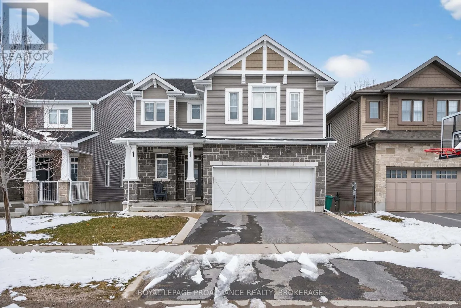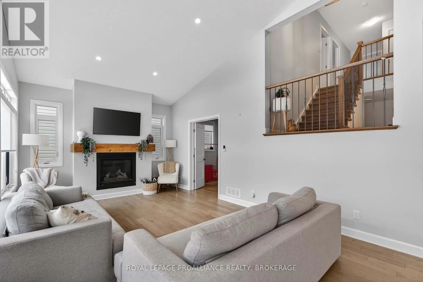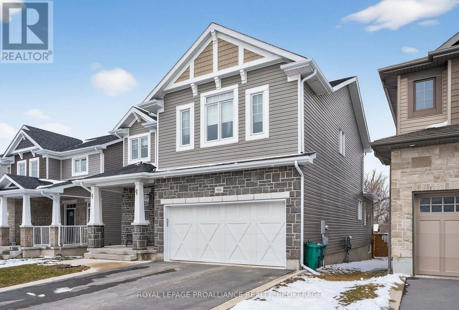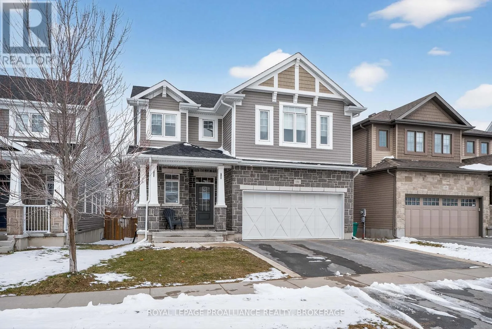 Cross Streets: Stonewalk Drive and Halloway Drive. ** Directions: Highway 15 to Waterside Way, right onto Stonewalk Drive to Halloway Drive. Welcome to 680 Halloway Drive! This custom designed Caraco built 2 storey executive offers 2,234 sq/ft with 4 bedrooms, 2.5 baths and is located in Kingston's "East end" popular Riverview subdivision. This home shows like new and loaded with upgrades including hardwood, ceramic tile and 9ft ceilings throughout the main floor. Large kitchen with quartz countertops, center island with extended breakfast bar, pot lighting, stainless canopy range hood and built-in pantry. There are dramatic vaulted ceilings over the dining and living, with pot lighting, large bright wall of windows, gas fireplace and double doors to the private den/office/bedroom/flex room. The main floor laundry/mudroom lead to the 2 car garage with opener. Heading to the upper level, you will find 4 spacious bedrooms including the huge primary bedroom with an eye catching accent wall, walk-in closet and a spa inspired 5-piece ensuite with a 5ft tiled shower. The basement is ready for your finishing touches and offers a layout designed for easy finishing. There is also rough-in for a future bathroom, on demand hot water, HRV and high efficient hating system. Stepping out from the dining area patio door onto a spectacular 2 tier deck that has a trellis with lighting on the upper level. The extra deep and fully fenced rear yard backs onto a large treed property that gives you Summer privacy and a "no rear neighbour" feel. All this plus central air, 5 appliances included as well as custom lighting and blinds. Ideally located just steps to Riverview Shopping Centre, a quick drive to downtown Kingston and a stones throw to the 401. (id:27476)