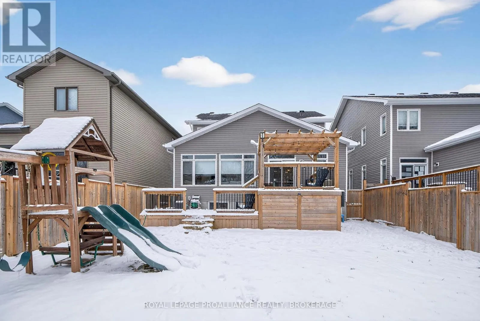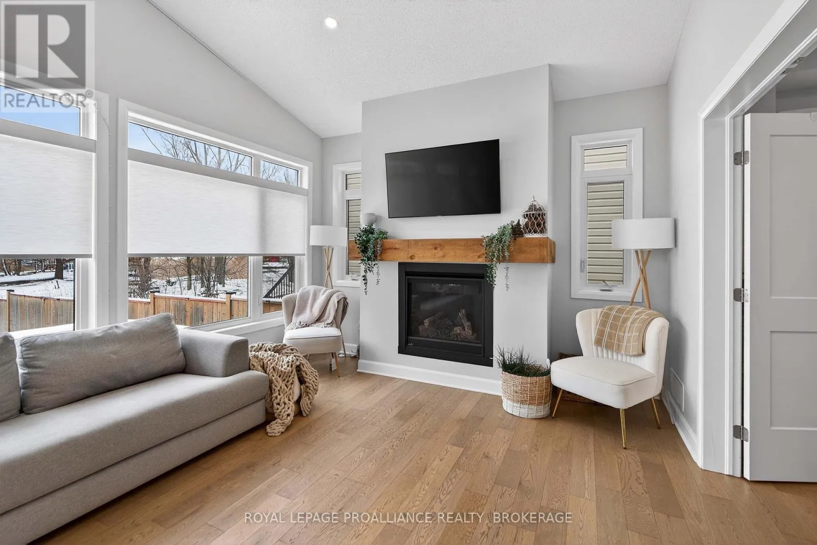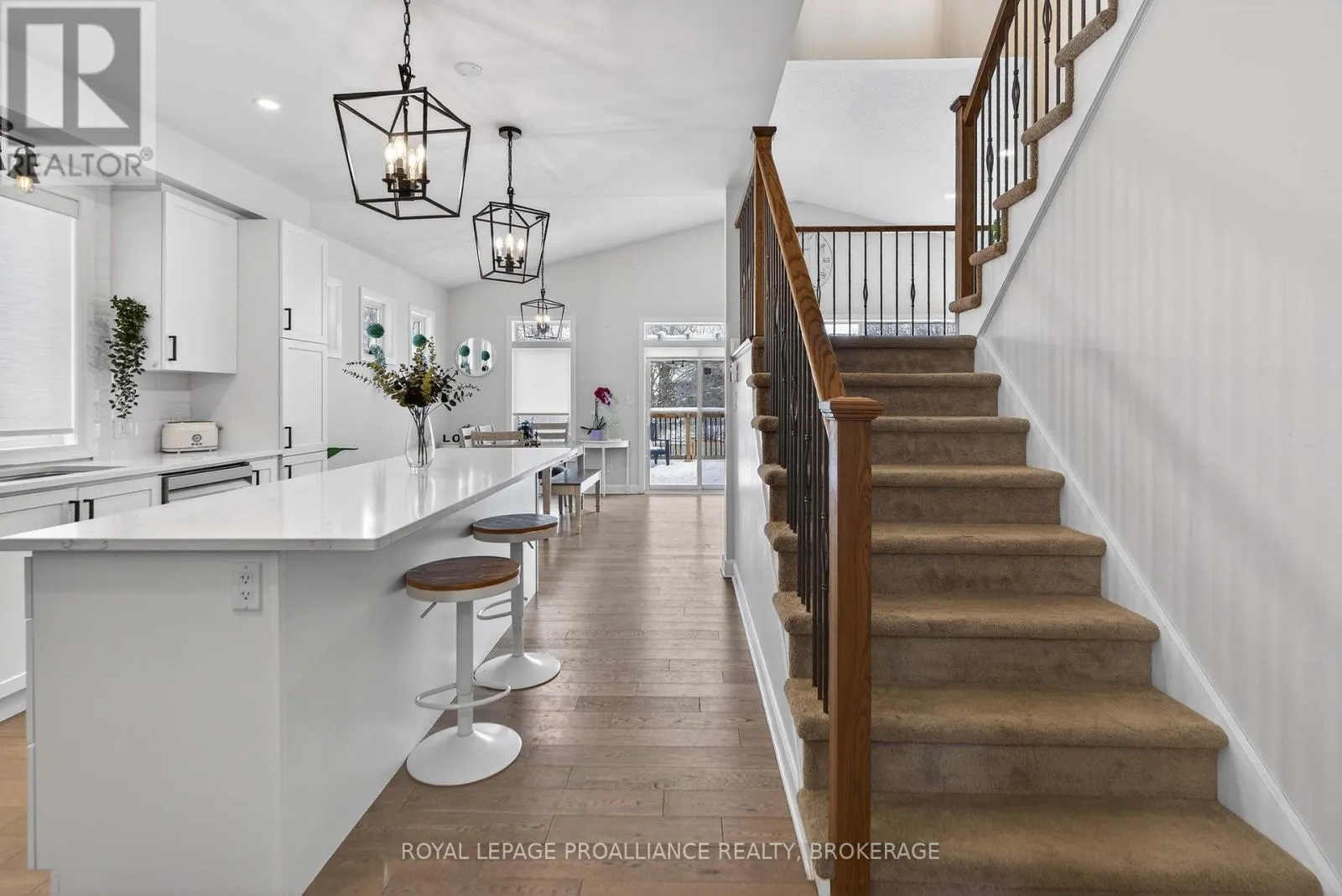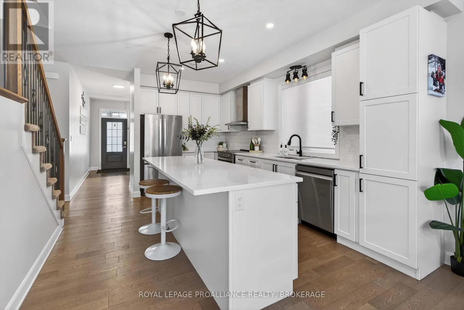 Cross Streets: Stonewalk Drive and Halloway Drive. ** Directions: Highway 15 to Waterside Way, right onto Stonewalk Drive to Halloway Drive. Welcome to 680 Halloway Drive! This custom designed Caraco built 2 storey executive offers 2,234 sq/ft with 4 bedrooms, 2.5 baths and is located in Kingston's "East end" popular Riverview subdivision. This home shows like new and loaded with upgrades including hardwood, ceramic tile and 9ft ceilings throughout the main floor. Large kitchen with quartz countertops, center island with extended breakfast bar, pot lighting, stainless canopy range hood and built-in pantry. There are dramatic vaulted ceilings over the dining and living, with pot lighting, large bright wall of windows, gas fireplace and double doors to the private den/office/bedroom/flex room. The main floor laundry/mudroom lead to the 2 car garage with opener. Heading to the upper level, you will find 4 spacious bedrooms including the huge primary bedroom with an eye catching accent wall, walk-in closet and a spa inspired 5-piece ensuite with a 5ft tiled shower. The basement is ready for your finishing touches and offers a layout designed for easy finishing. There is also rough-in for a future bathroom, on demand hot water, HRV and high efficient hating system. Stepping out from the dining area patio door onto a spectacular 2 tier deck that has a trellis with lighting on the upper level. The extra deep and fully fenced rear yard backs onto a large treed property that gives you Summer privacy and a "no rear neighbour" feel. All this plus central air, 5 appliances included as well as custom lighting and blinds. Ideally located just steps to Riverview Shopping Centre, a quick drive to downtown Kingston and a stones throw to the 401. (id:27476)