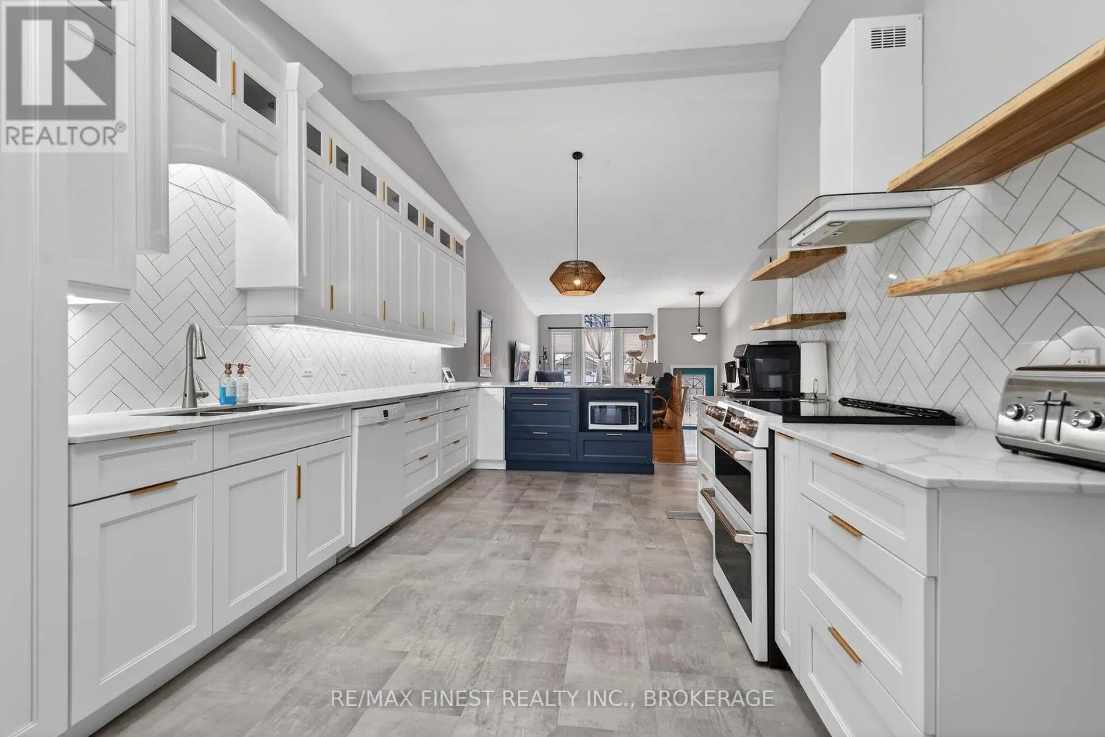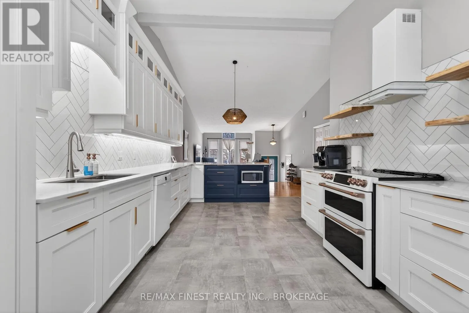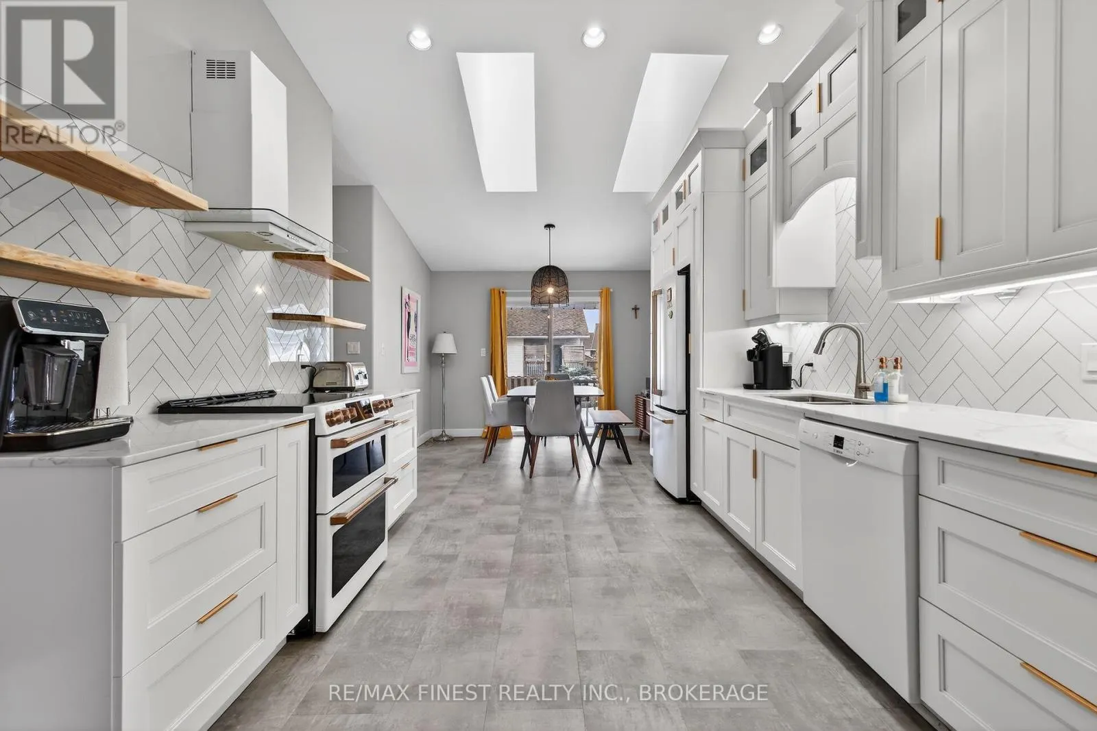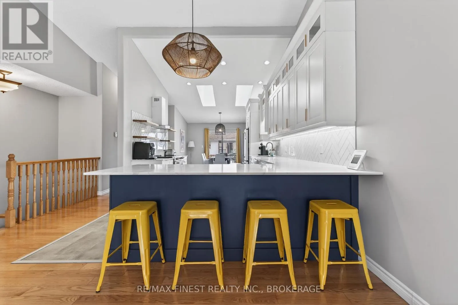 Cross Streets: Greenwood Park to Freeman Cr. ** Directions: Greenwood Park and Freeman Cr. Welcome to this beautifully maintained elevated bungalow in Kingston's sought-after east end, offering exceptional space, thoughtful updates, and pride of ownership throughout. Situated on a fully fenced, landscaped lot, this property features a large concrete patio - ideal for entertaining, relaxing, or enjoying summer evenings in your private backyard retreat. Inside, the carpet-free main level offers a bright and functional layout. The welcoming front living and dining room is filled with natural light, while the outstanding newer kitchen is sure to impress with skylights, a large pantry, newer appliances, updated light fixtures, and patio doors leading to the covered porch and rear yard. The spacious eat-in design makes it perfect for both everyday living and hosting guests. The primary bedroom includes a walk-in closet and private ensuite, complemented by two additional well-sized bedrooms and a full main bath. The fully finished lower level provides excellent additional living space, featuring a fourth bedroom, a third bathroom with a new shower, a large laundry room, abundant storage, and an oversized family room complete with new carpet and a bar area - the perfect spot for movie nights or entertaining family and friends. Completing this exceptional home is an insulated and heated attached double garage along with a double-wide driveway offering ample parking. A fantastic opportunity to own a move-in ready home in a desirable east end location - close to schools, parks, and all amenities. (id:27476)
