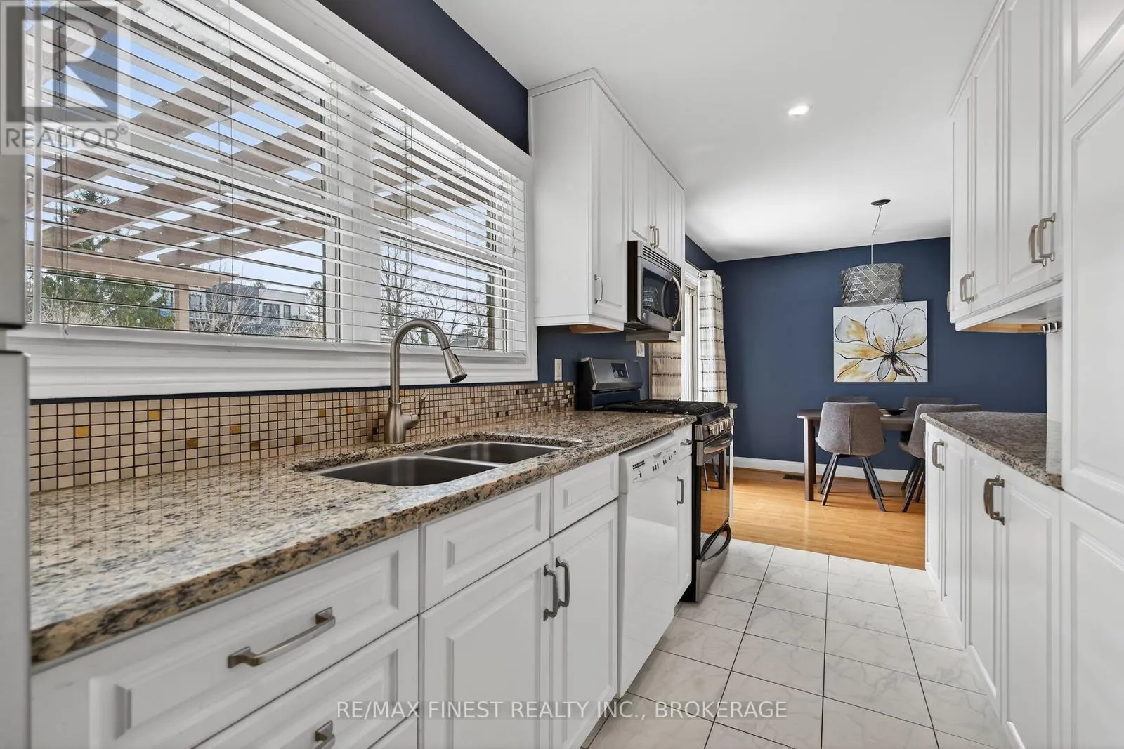 Westdale Ave and Park St. Charming all-brick bungalow with a single car garage in a prime central location, just a short walk from everyday amenities including groceries, banks, retail shops, and fitness centers. This well-maintained home offers a bright and inviting layout that welcomes you the moment you walk in. The living room features a large front window, electric fireplace and gleaming hardwood floors. The sun-filled kitchen features granite countertops, ample cabinetry with plenty of storage, flowing seamlessly into the dining area with patio doors that open onto an expansive deck-complete with a pergola. With a fully fenced yard this outdoor area is perfect for entertaining with plenty of space for family enjoyment. Completing the main level are 2 bright and airy bedrooms along with a main bathroom that features a relaxing air tub, perfect for unwinding after a long day. Downstairs you will find a fully finished lower level complete with its own entrance. This has excellent in-law suite potential, including a bedroom, updated bathroom(2022), living area, and kitchen. An additional highlight includes a natural gas fireplace in the lower-level bedroom-adding warmth and comfort. A fantastic opportunity for homeowners or investors seeking versatility, space, and convenience in a desirable location. (id:27476)
