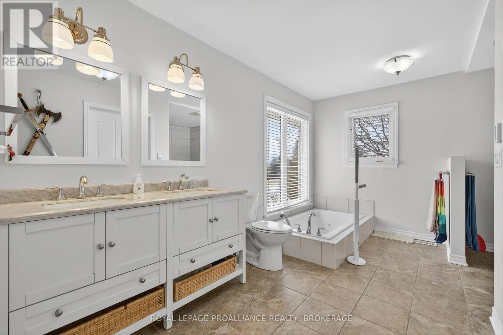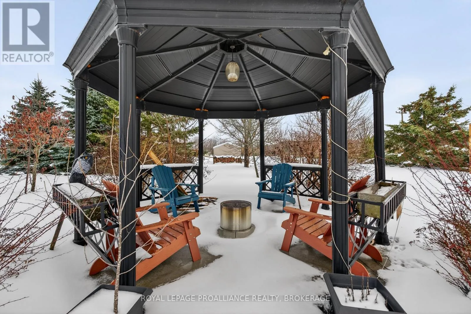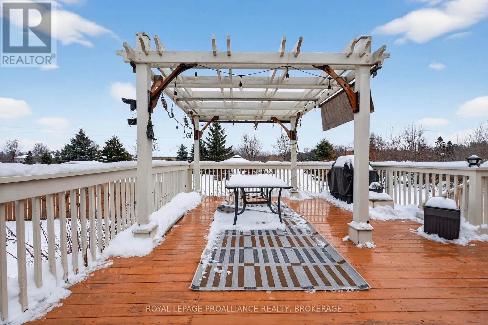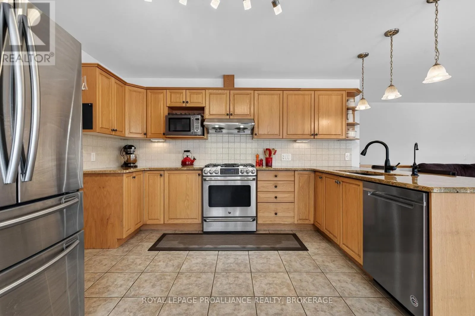 Cross Streets: Kingston Mills/Kingston 21 and Perradice Drive. ** Directions: 401 Battersea Road to Kingston Mills/Kingston 21. Set in Edenview Park, 1360 Perradice offers a peaceful retreat within walking distance of the Kingston Mills Locks and a short ten-minute drive to downtown Kingston. Nestled on just over an acre, the property is surrounded by mature trees, perennial gardens, and a wide, private backyard in a quiet, community-minded neighbourhood. Inside, the main living spaces are bright and open, with large windows that fill the home with natural light and frame views of the lush surroundings. The living room flows seamlessly into the spacious kitchen, making it ideal for both everyday living and entertaining. The kitchen features granite countertops, ample storage, stainless-steel appliances, and a gas range. A separate dining room with a bay window adds charm and space for family meals.Garden doors open onto a large deck overlooking the backyard, complete with a pergola, gazebo, storage shed, gas BBQ hookup, and a fenced section perfect for pets or an above ground pool. This outdoor space offers exceptional privacy and versatility for relaxing, entertaining, or simply enjoying nature. Additionally, on the main floor is a well designed in-law or nanny suite by Concord Homes, ideal for extended family or guests. It features a spacious bedroom with walk-out access to the deck, a walk-in closet, sitting area, and an accessible bathroom with roll-in shower. Three additional bedrooms and three bathrooms complete the level, including a primary suite with walk-in closet and updated ensuite featuring a glass shower, granite countertops, and a jetted tub. Main-floor laundry and an attached two-car garage add convenience.The lower level provides flexible space for a home office, guest room with Murphy bed, fitness area, or recreation room with a gas fireplace. A two-piece bath, shower rough-in, and generous storage add potential for further customization. Offering space, privacy, and versatility, 1360 Perradice is a property that combines comfort, functionality, and a quiet setting. (id:27476)